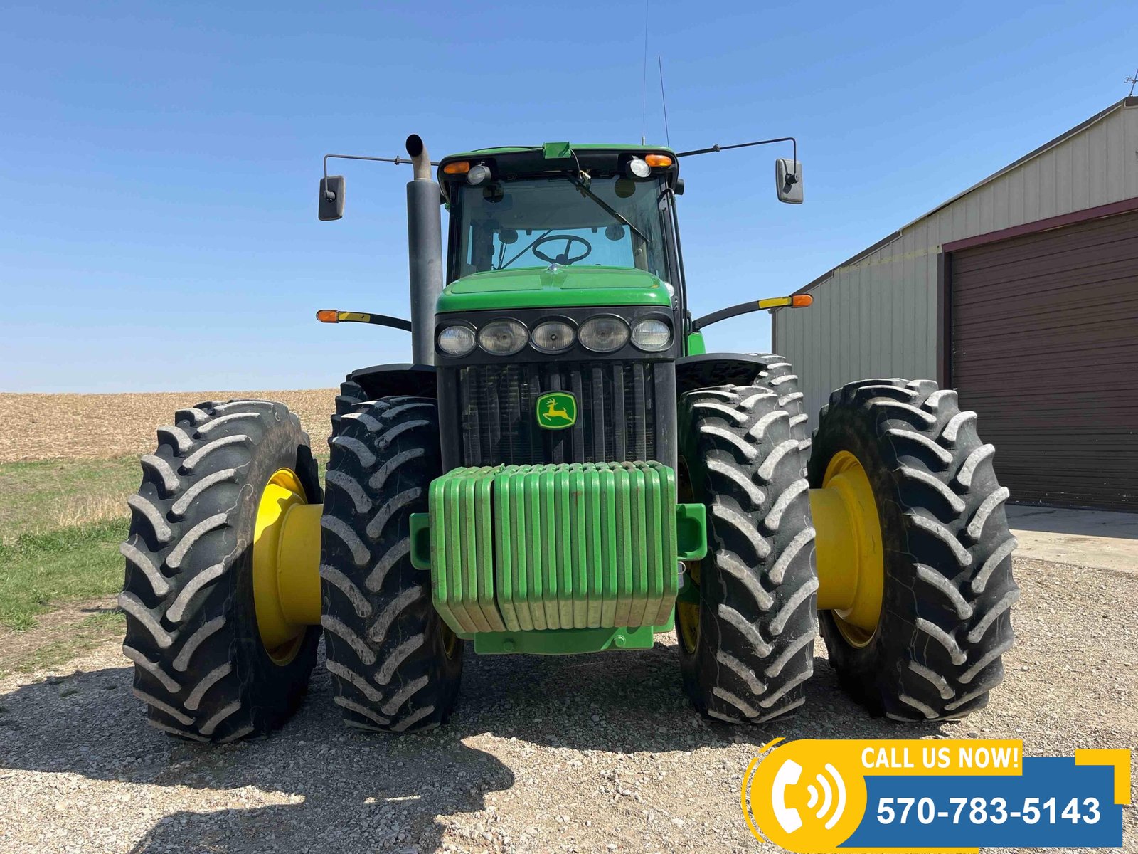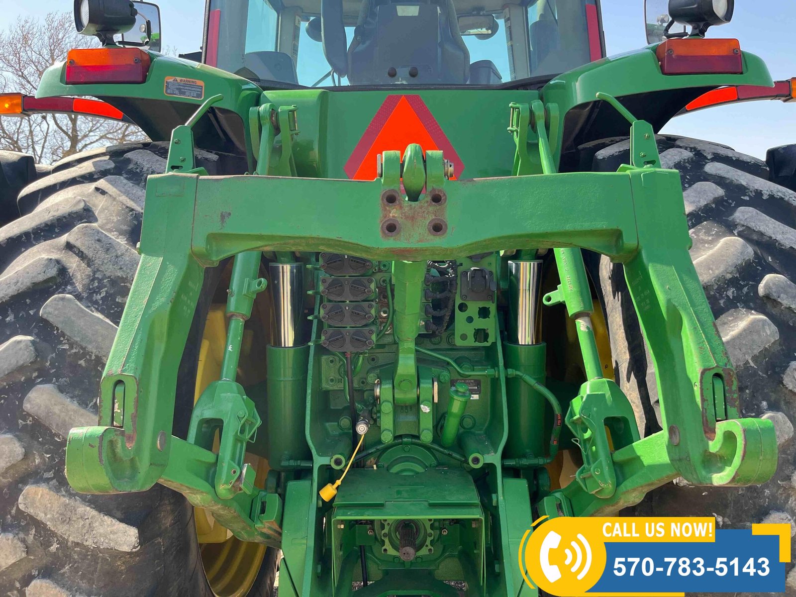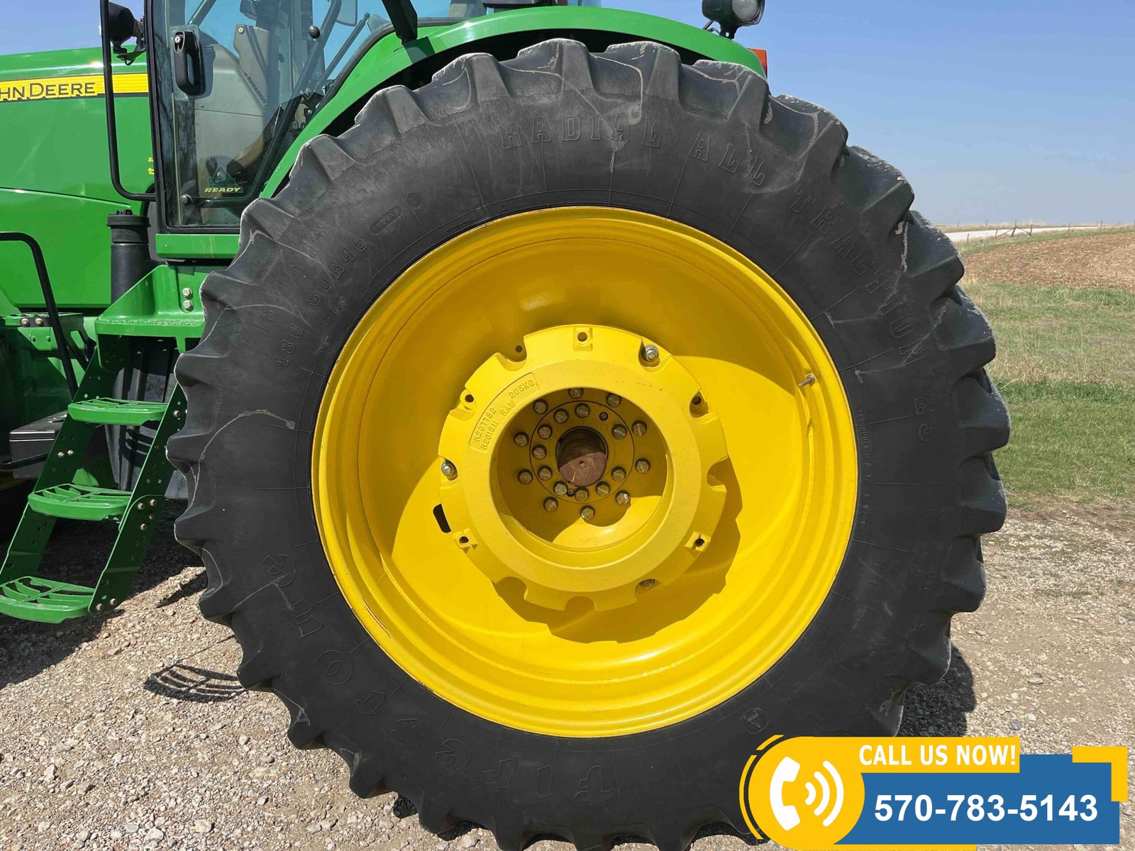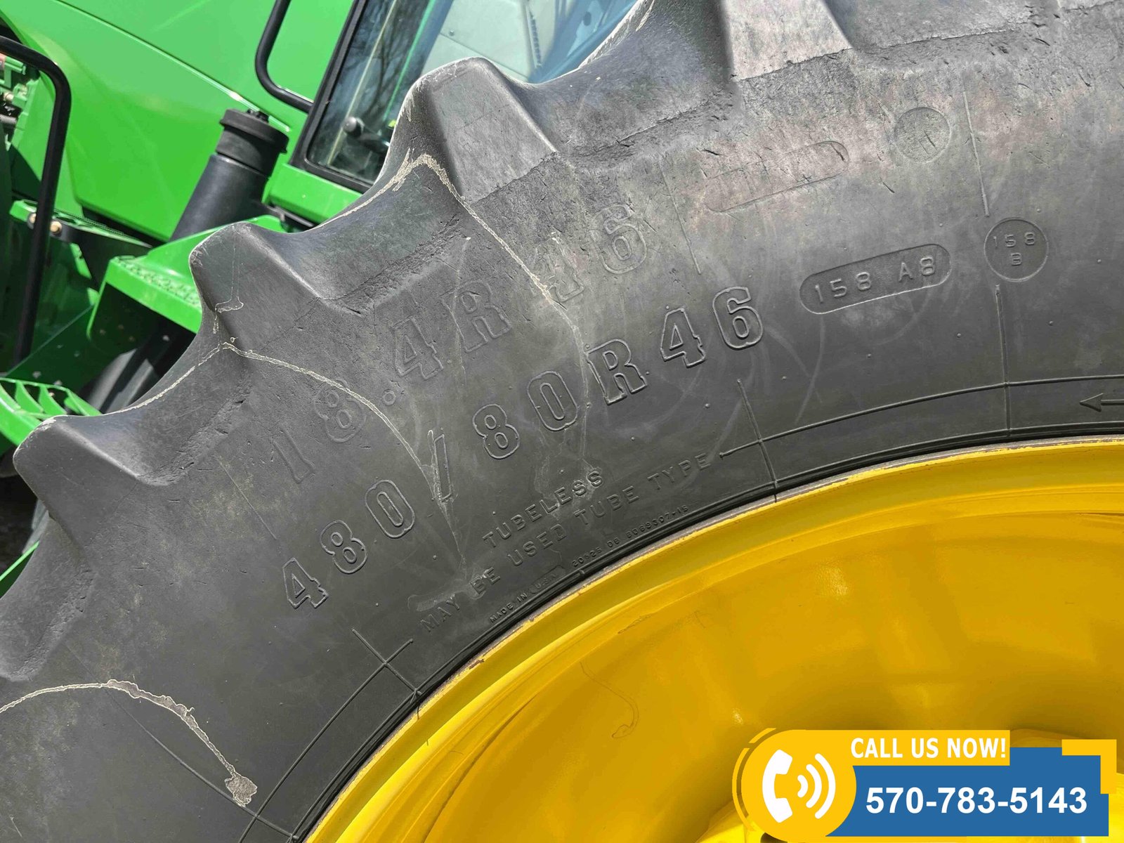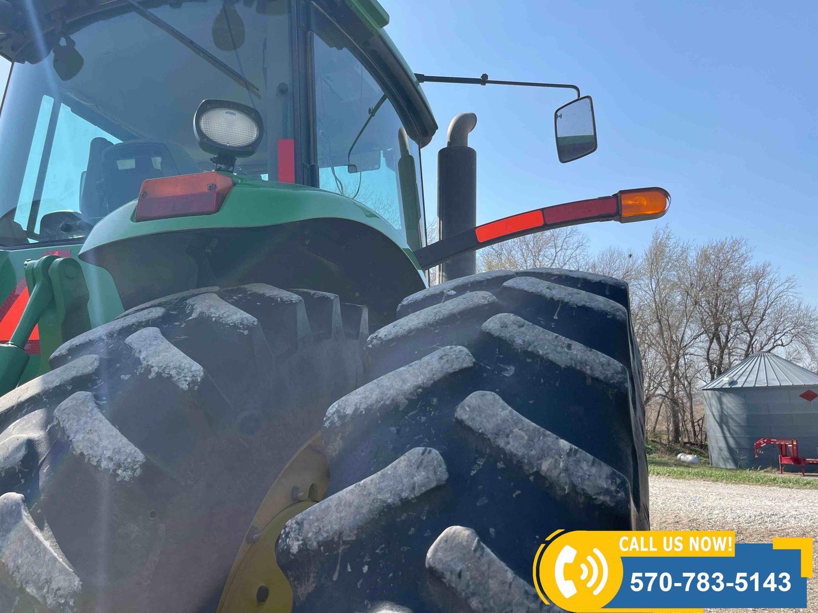 2009 John Deere 8130 MFWD Tractor – 5,789 hours showing, equipped with IVT transmission, ILS front suspension, and deluxe comfort package. Features 4 hydraulic outlets, 3-point hitch with quick hitch, 540/1000 PTO, front fenders, 16 front weights, and one pair of 450 lb rear axle weights. Rides on 420/85R34 front duals and 480/80R46 rear duals.