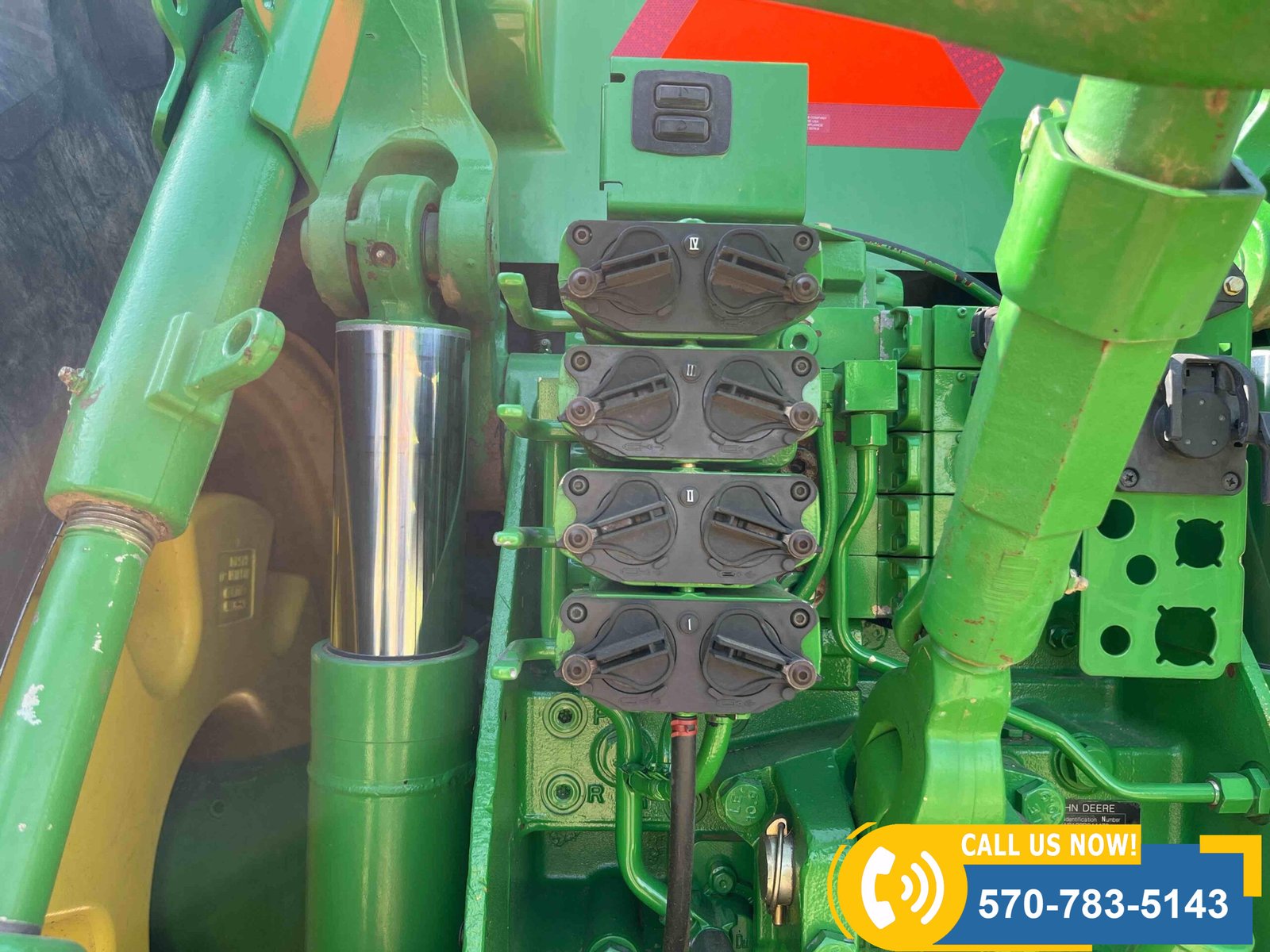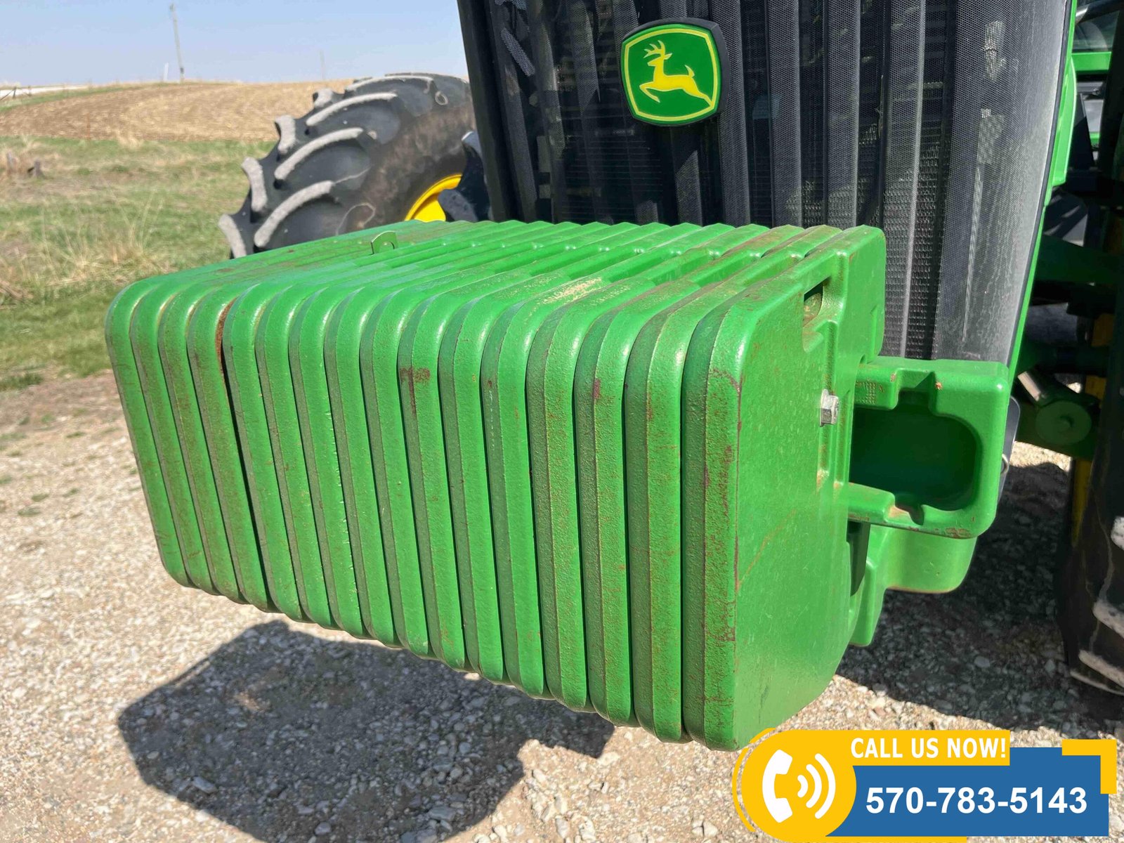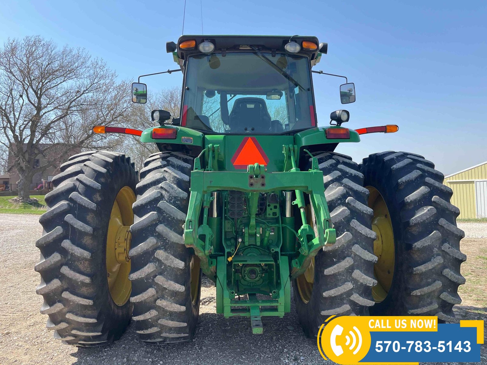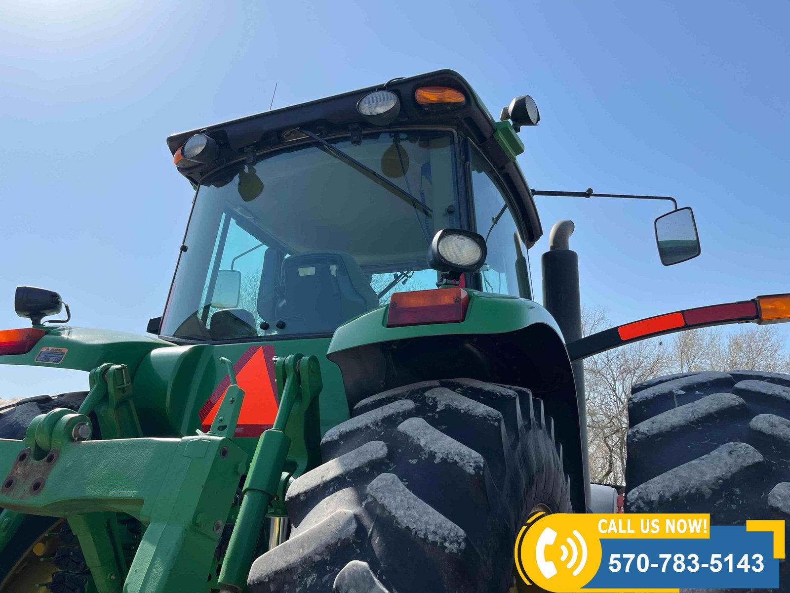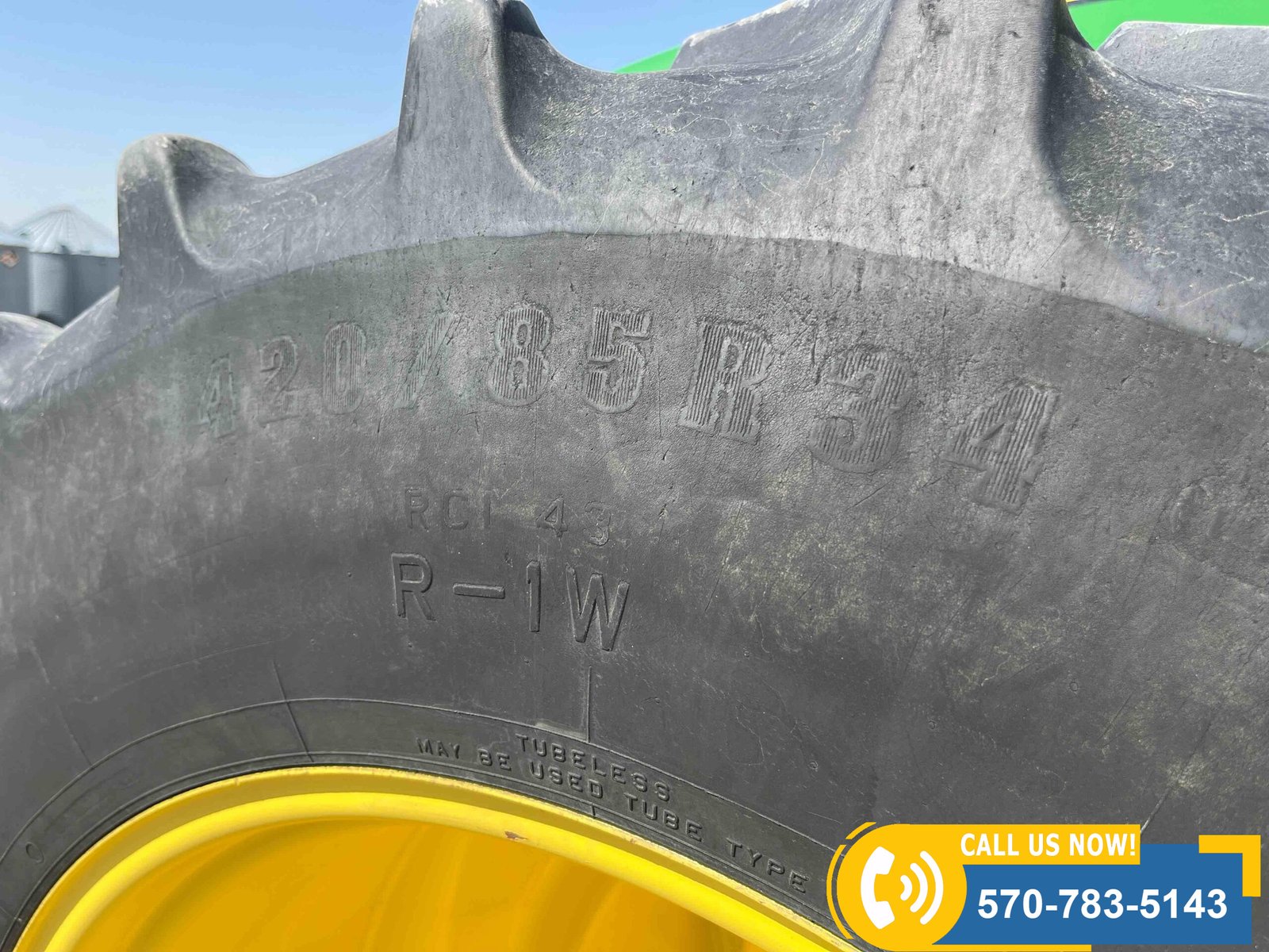 2009 John Deere 8130 MFWD Tractor – 5,789 hours showing, equipped with IVT transmission, ILS front suspension, and deluxe comfort package. Features 4 hydraulic outlets, 3-point hitch with quick hitch, 540/1000 PTO, front fenders, 16 front weights, and one pair of 450 lb rear axle weights. Rides on 420/85R34 front duals and 480/80R46 rear duals.