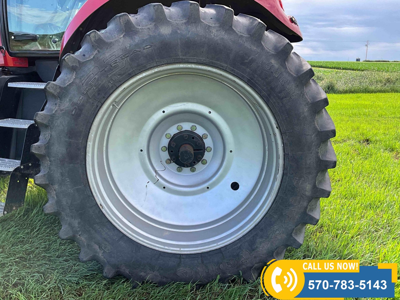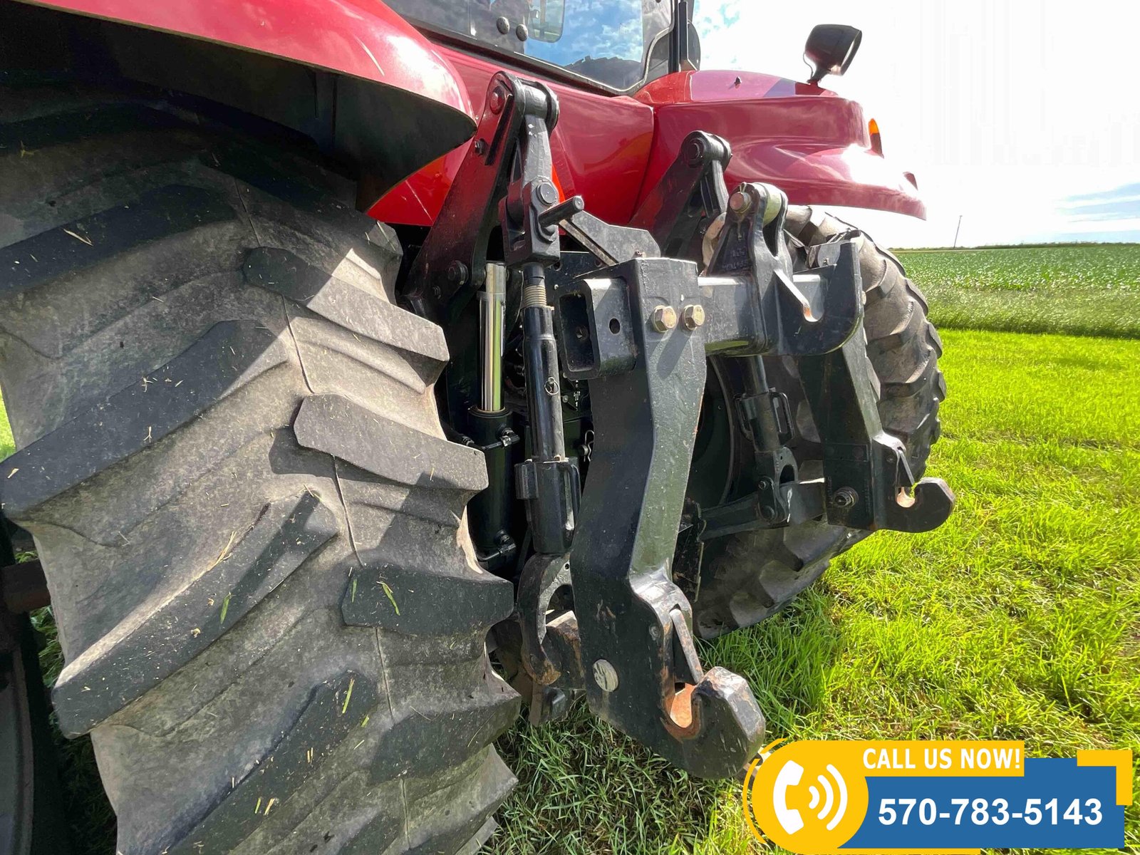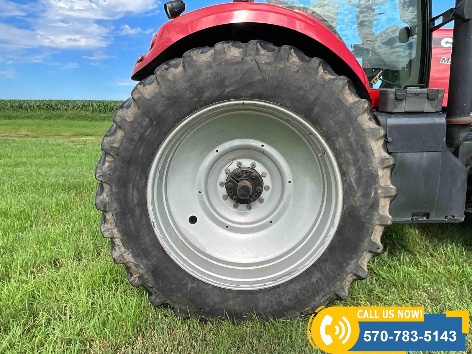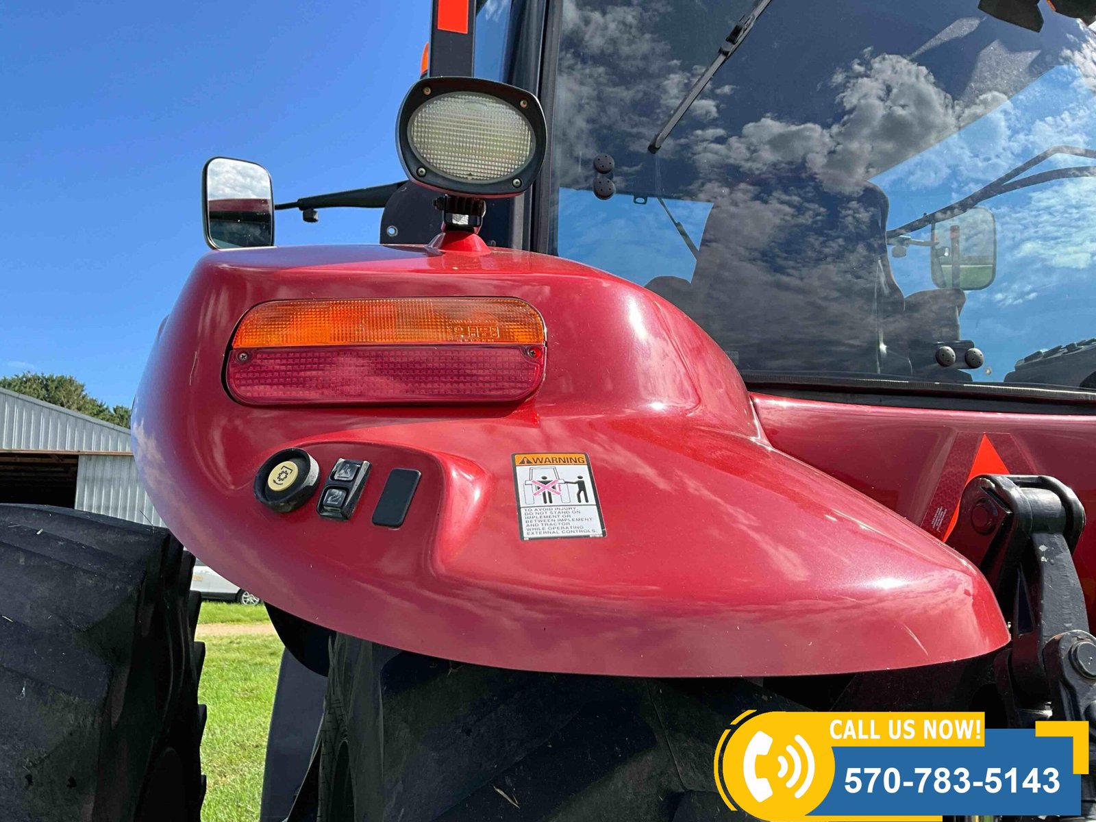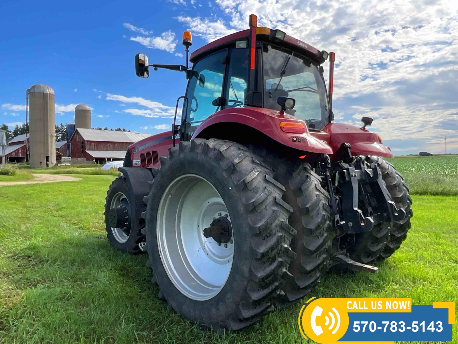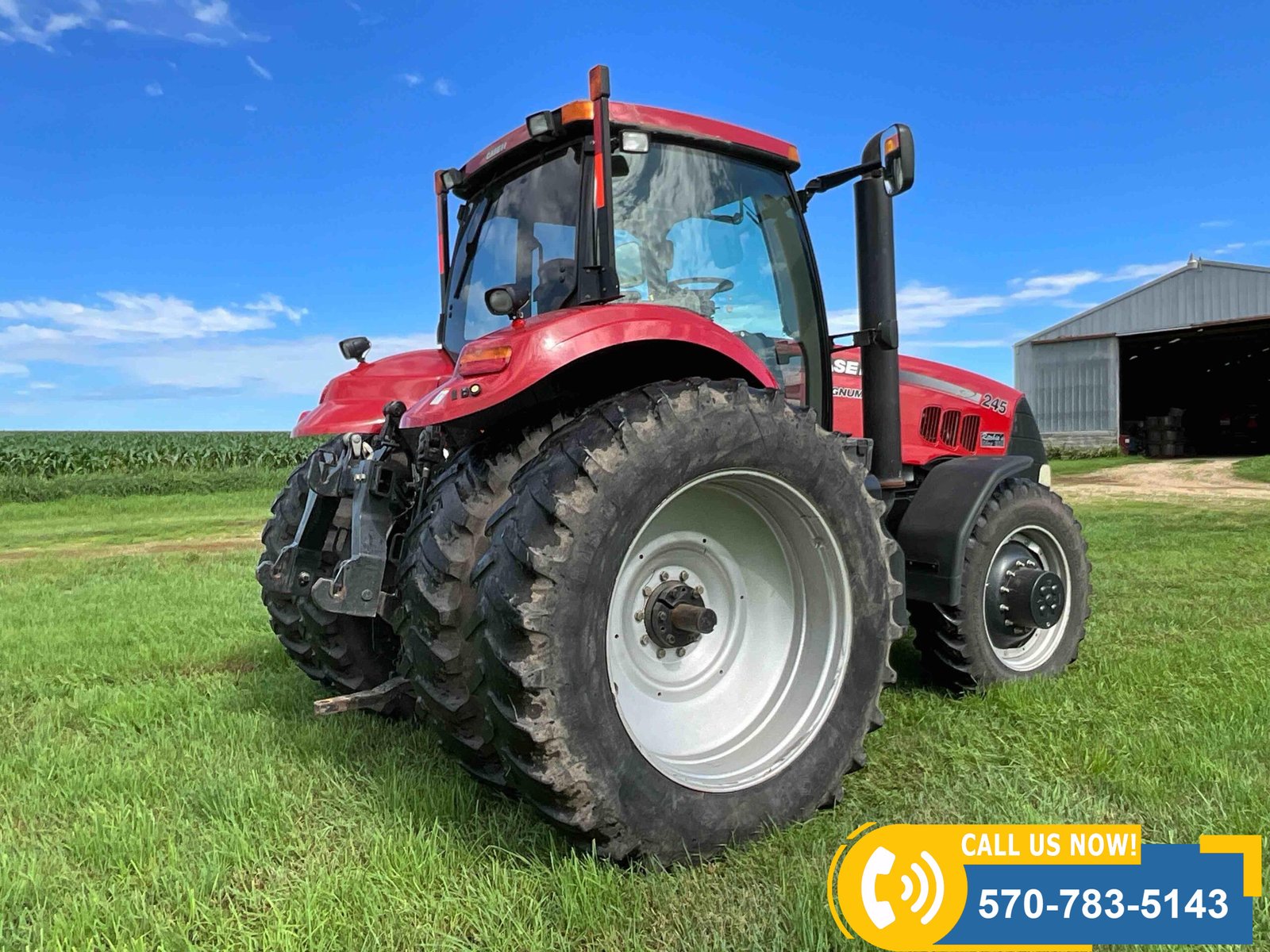 2010 Case IH Magnum 245 MFWD Tractor – 3,260 hours showing, 245 HP CNH 8.3L engine with block heater and 19-speed powershift (19F/4R). Equipped with large 1000 PTO, rear PTO with fender control, 4 hydraulic outlets, power beyond valve, and 3-point hitch with quick hitch. Features deluxe leather seat, ISOBUS compatibility, front fenders, and (6) 100 lb front weights. Rides on 380/85R34 front tires and 18.4R46 rear duals.