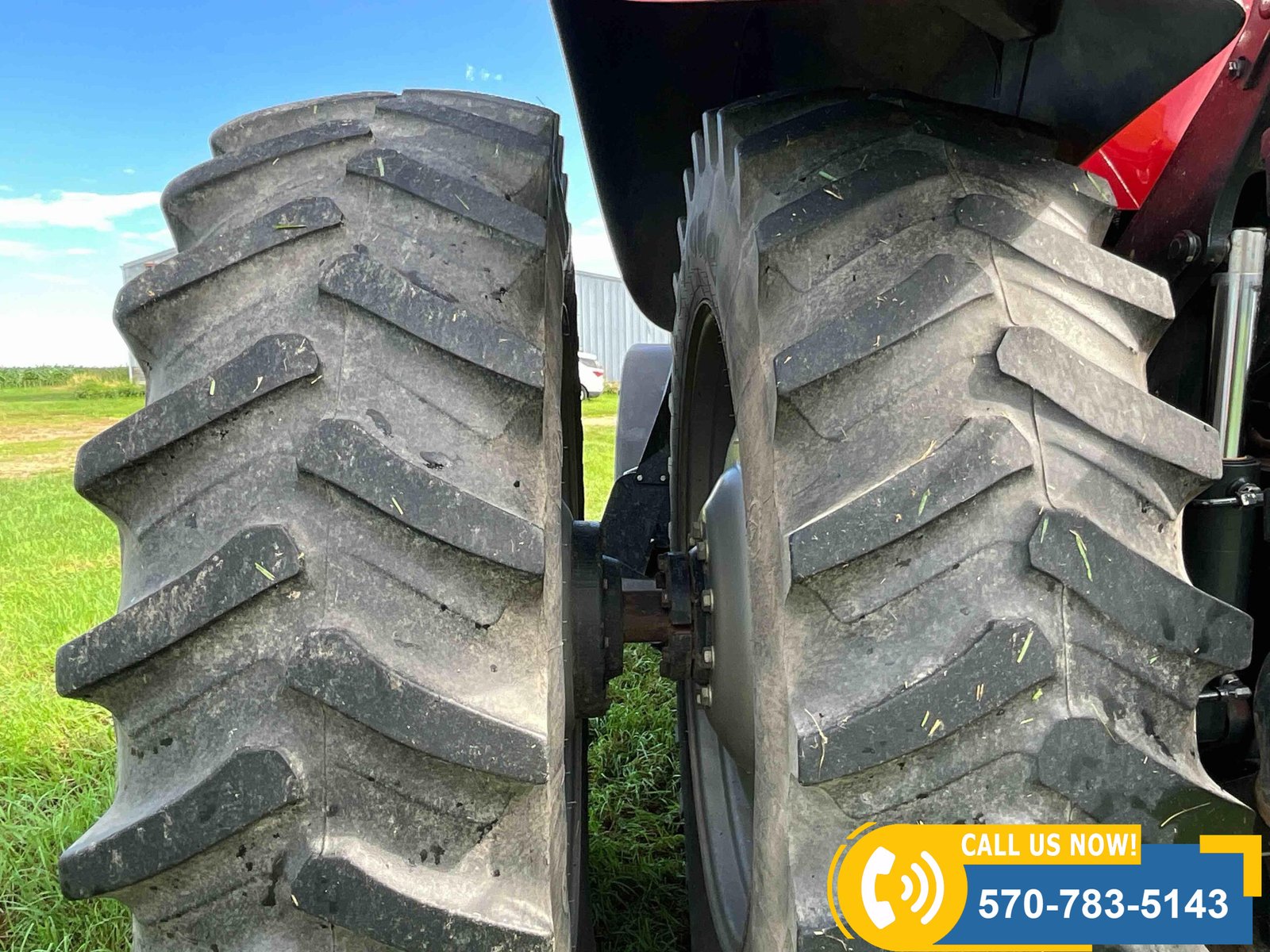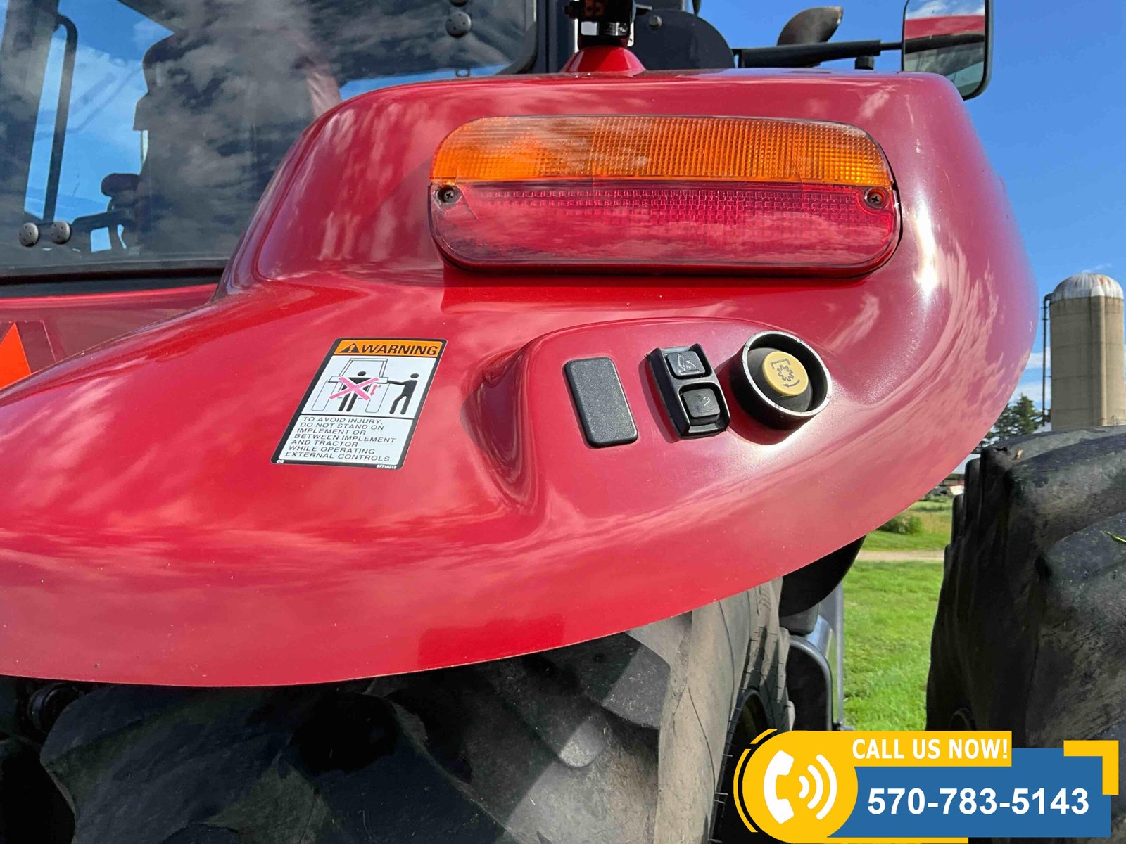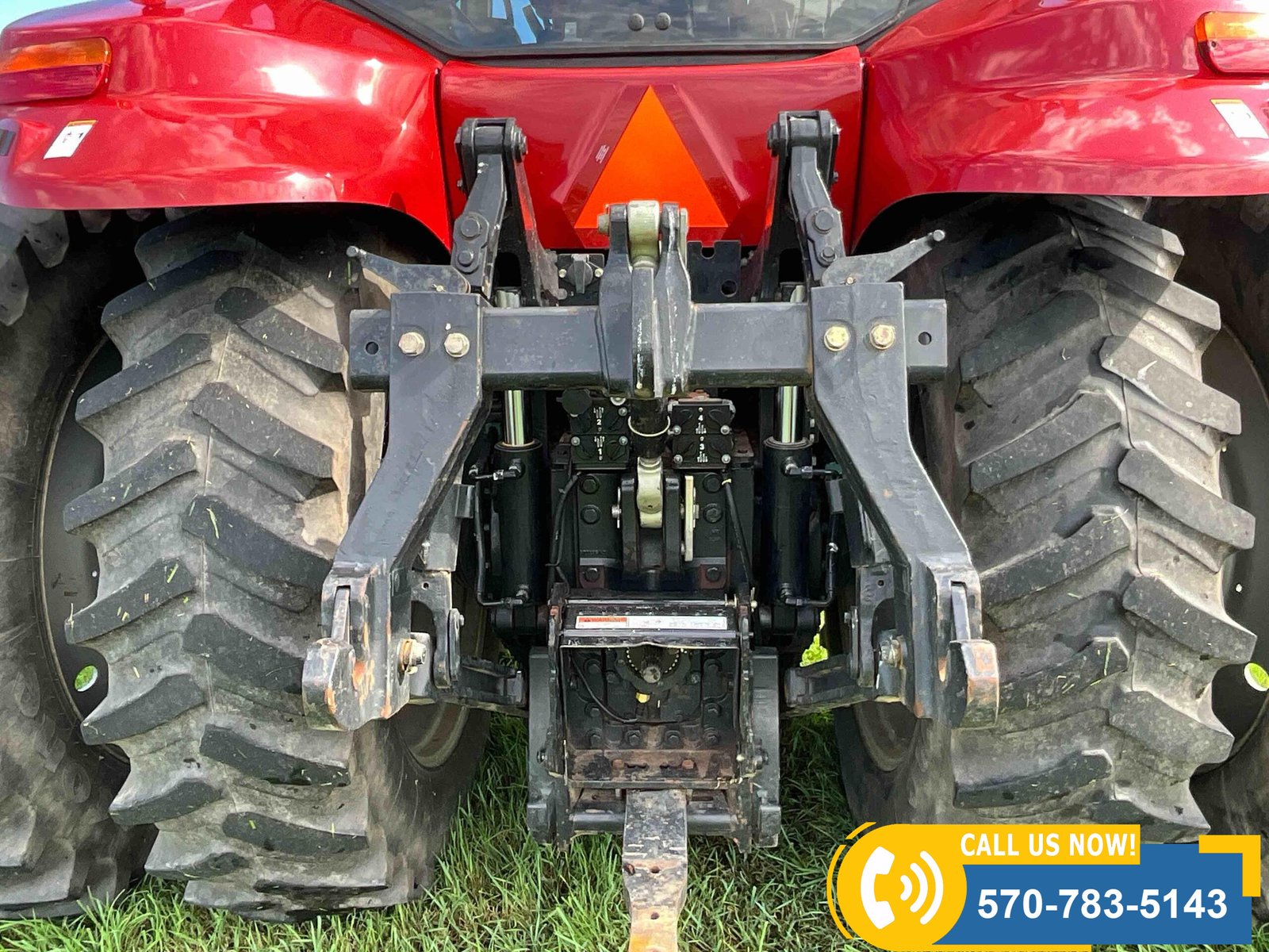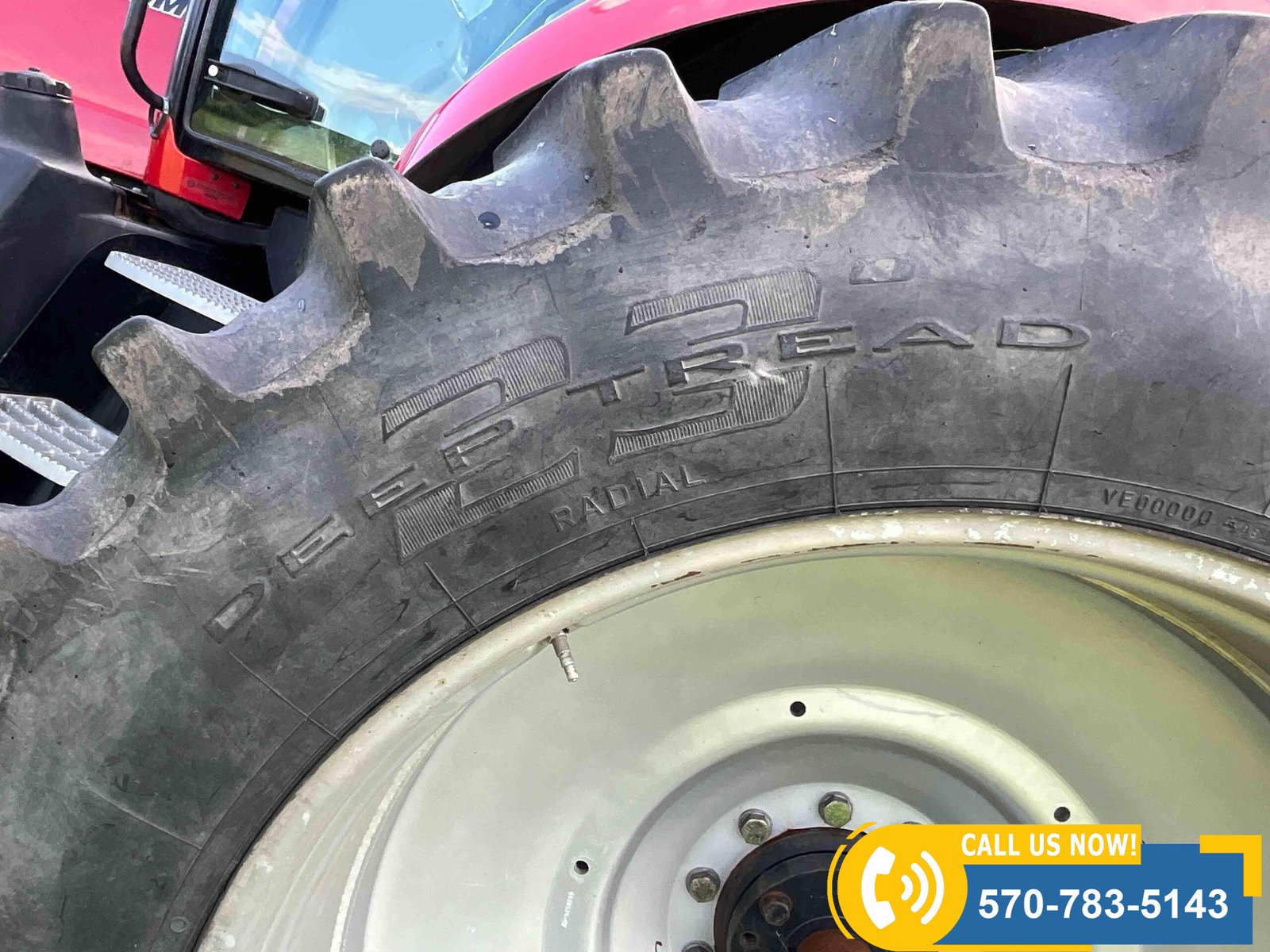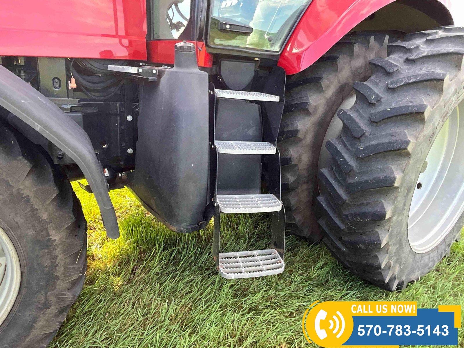 2010 Case IH Magnum 245 MFWD Tractor – 3,260 hours showing, 245 HP CNH 8.3L engine with block heater and 19-speed powershift (19F/4R). Equipped with large 1000 PTO, rear PTO with fender control, 4 hydraulic outlets, power beyond valve, and 3-point hitch with quick hitch. Features deluxe leather seat, ISOBUS compatibility, front fenders, and (6) 100 lb front weights. Rides on 380/85R34 front tires and 18.4R46 rear duals.