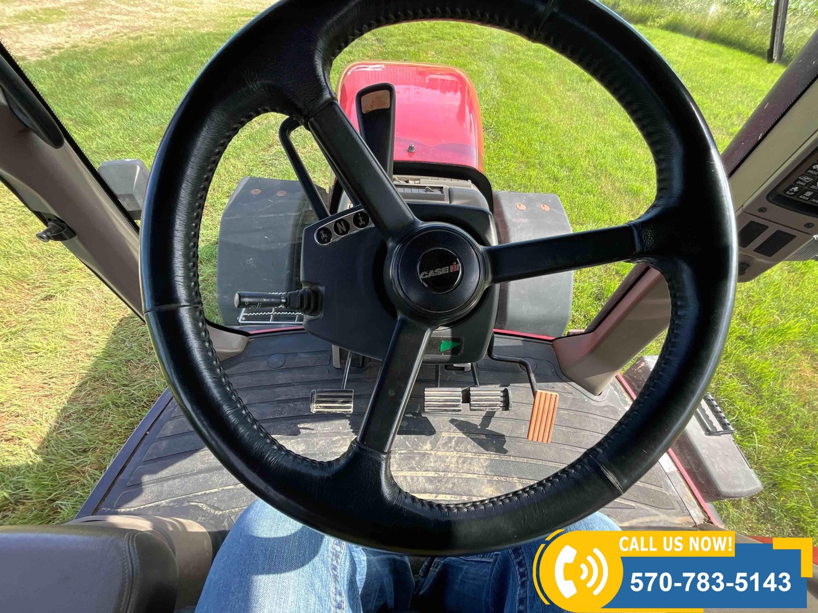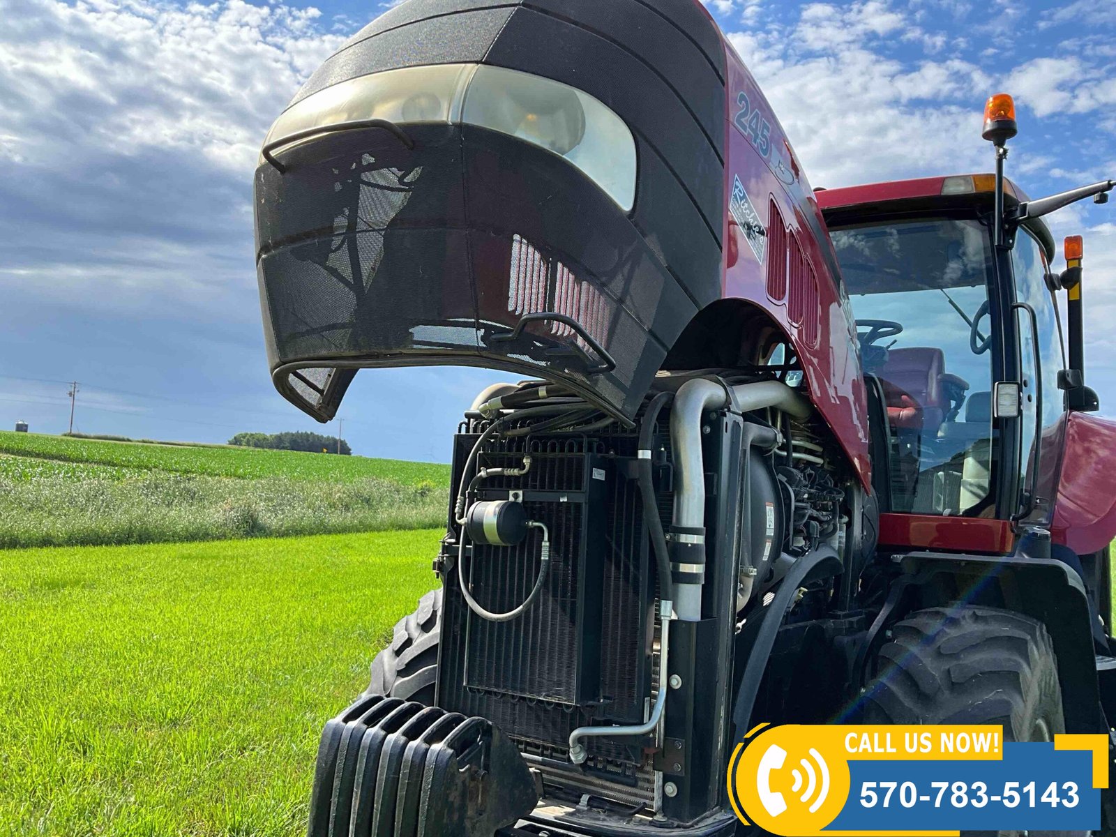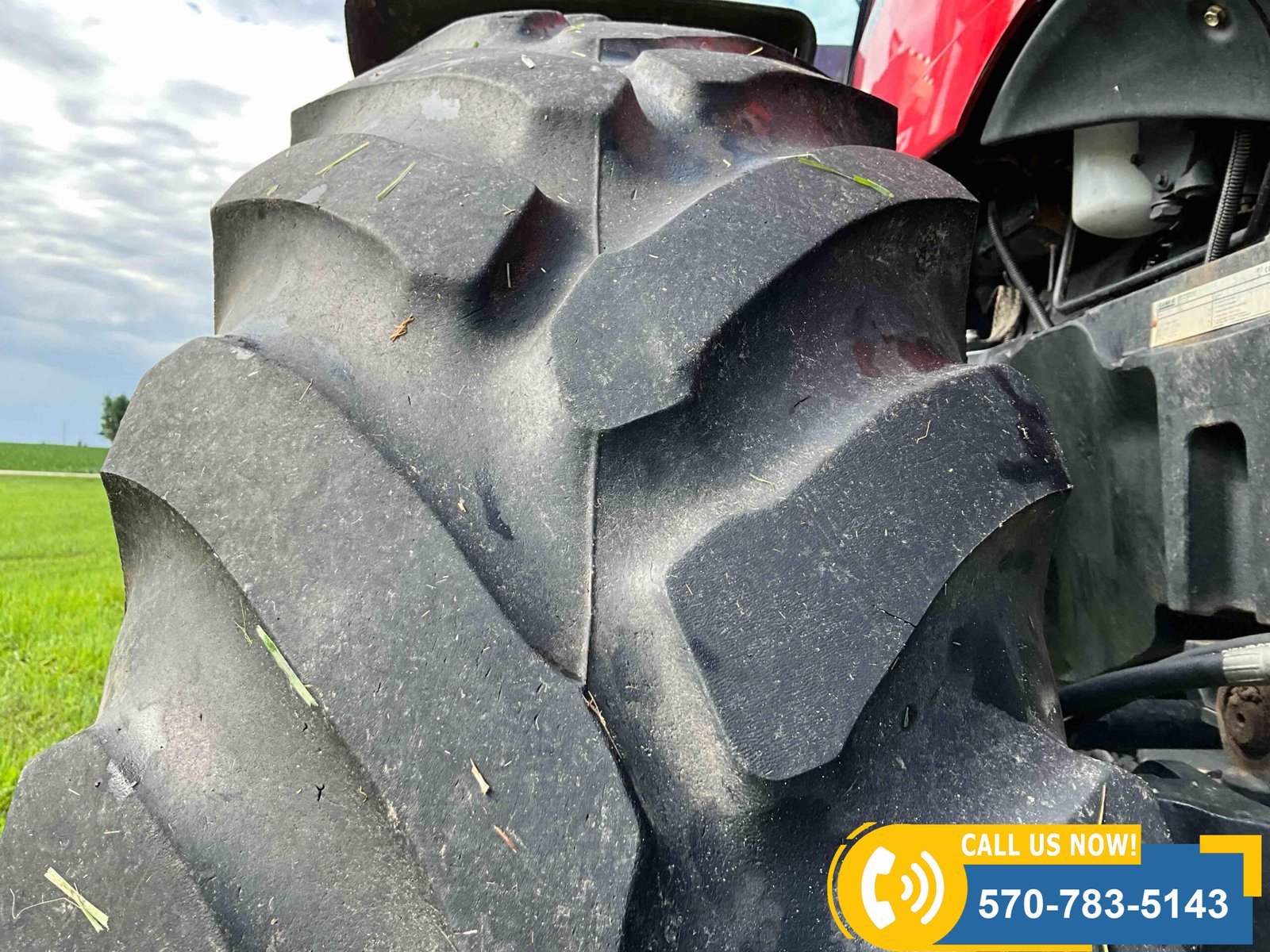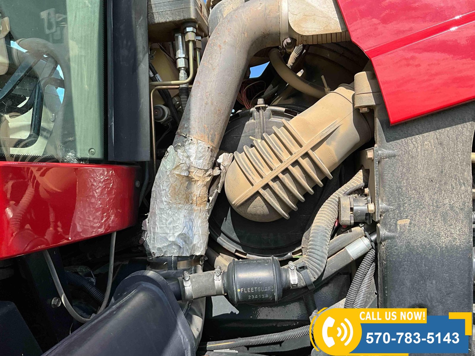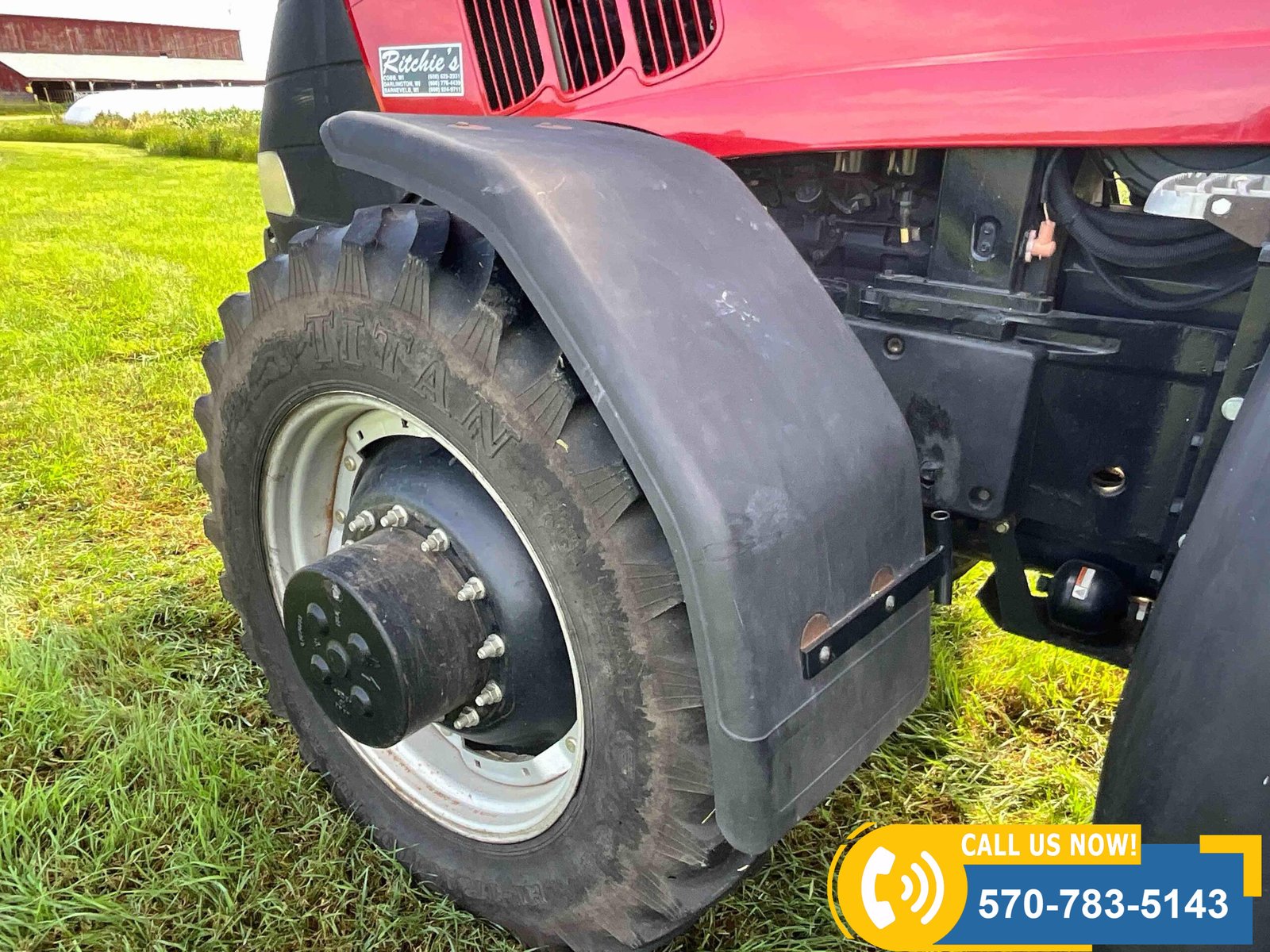 2010 Case IH Magnum 245 MFWD Tractor – 3,260 hours showing, 245 HP CNH 8.3L engine with block heater and 19-speed powershift (19F/4R). Equipped with large 1000 PTO, rear PTO with fender control, 4 hydraulic outlets, power beyond valve, and 3-point hitch with quick hitch. Features deluxe leather seat, ISOBUS compatibility, front fenders, and (6) 100 lb front weights. Rides on 380/85R34 front tires and 18.4R46 rear duals.