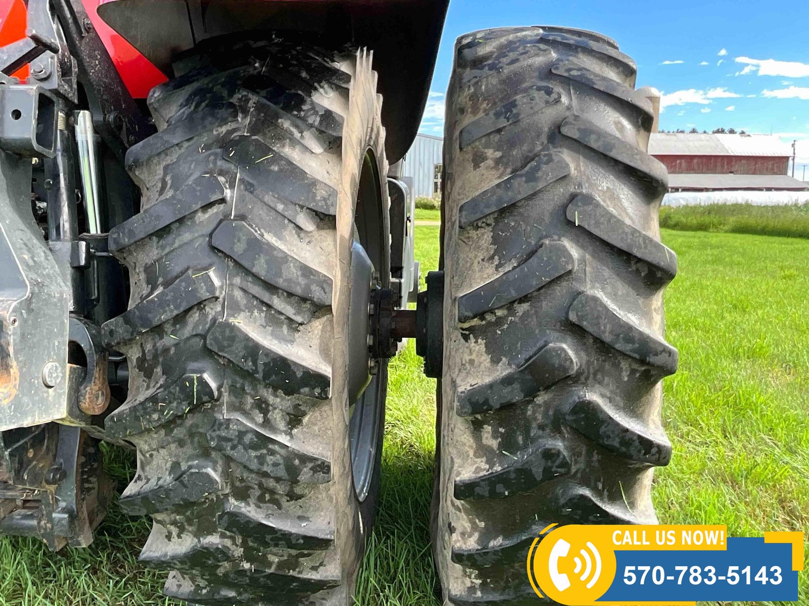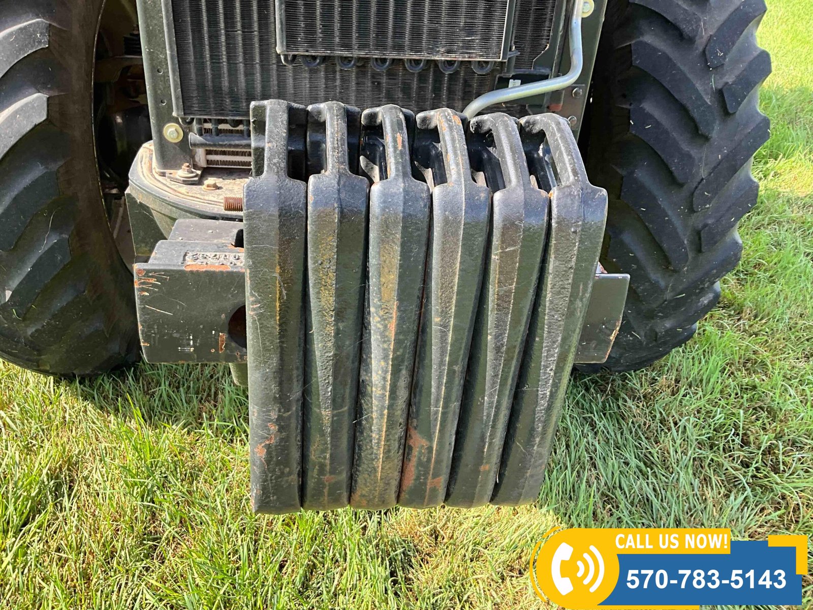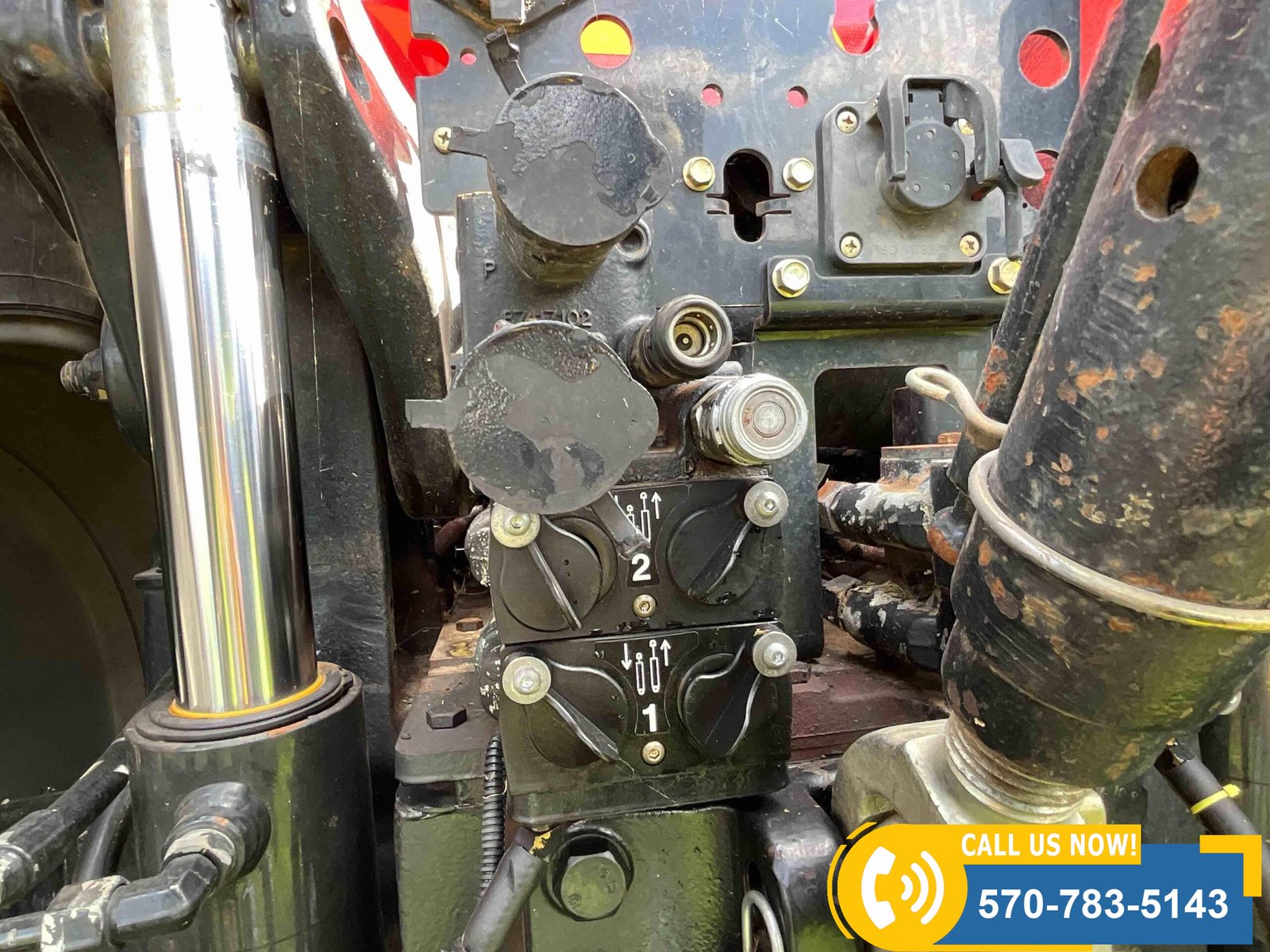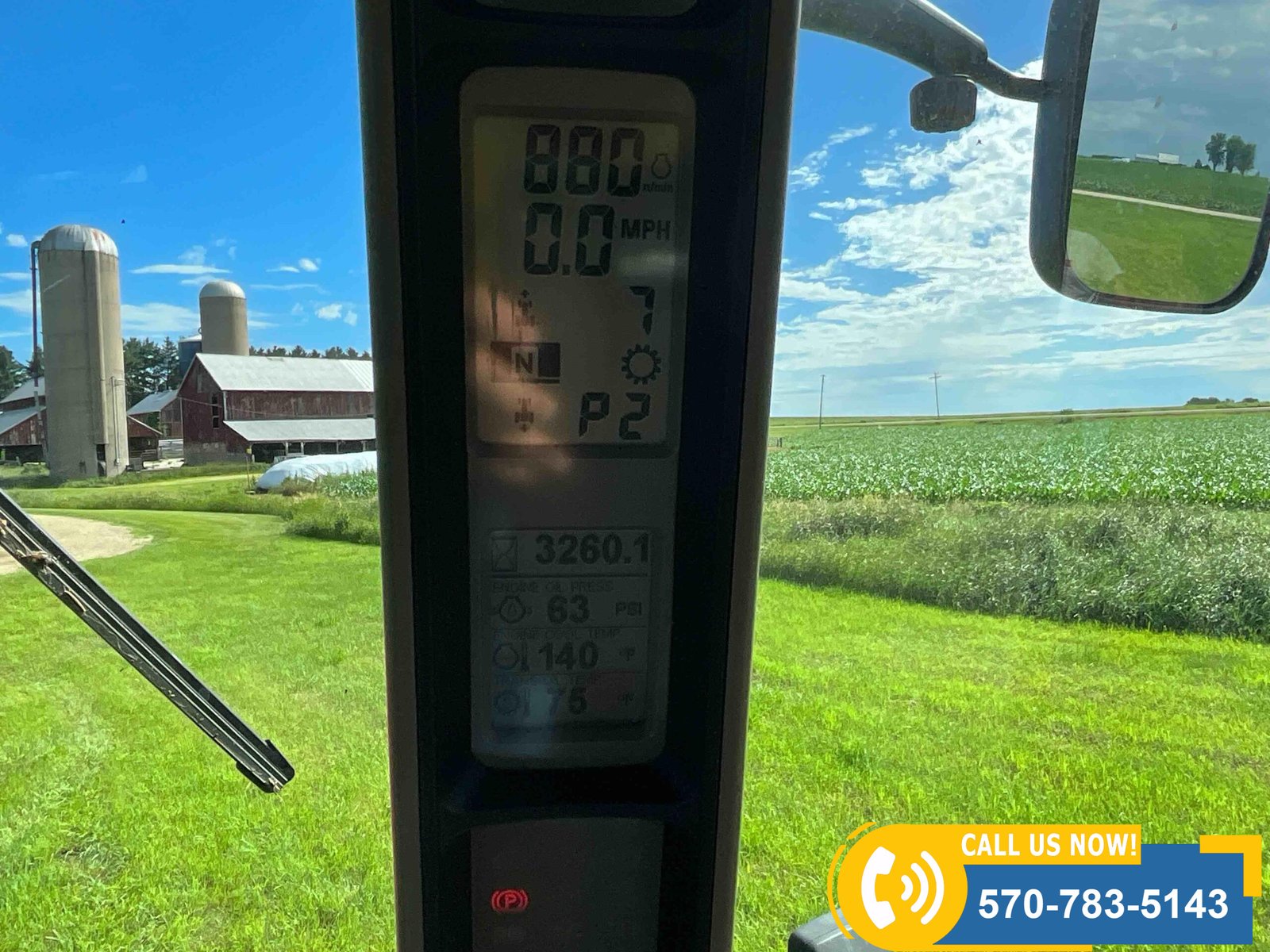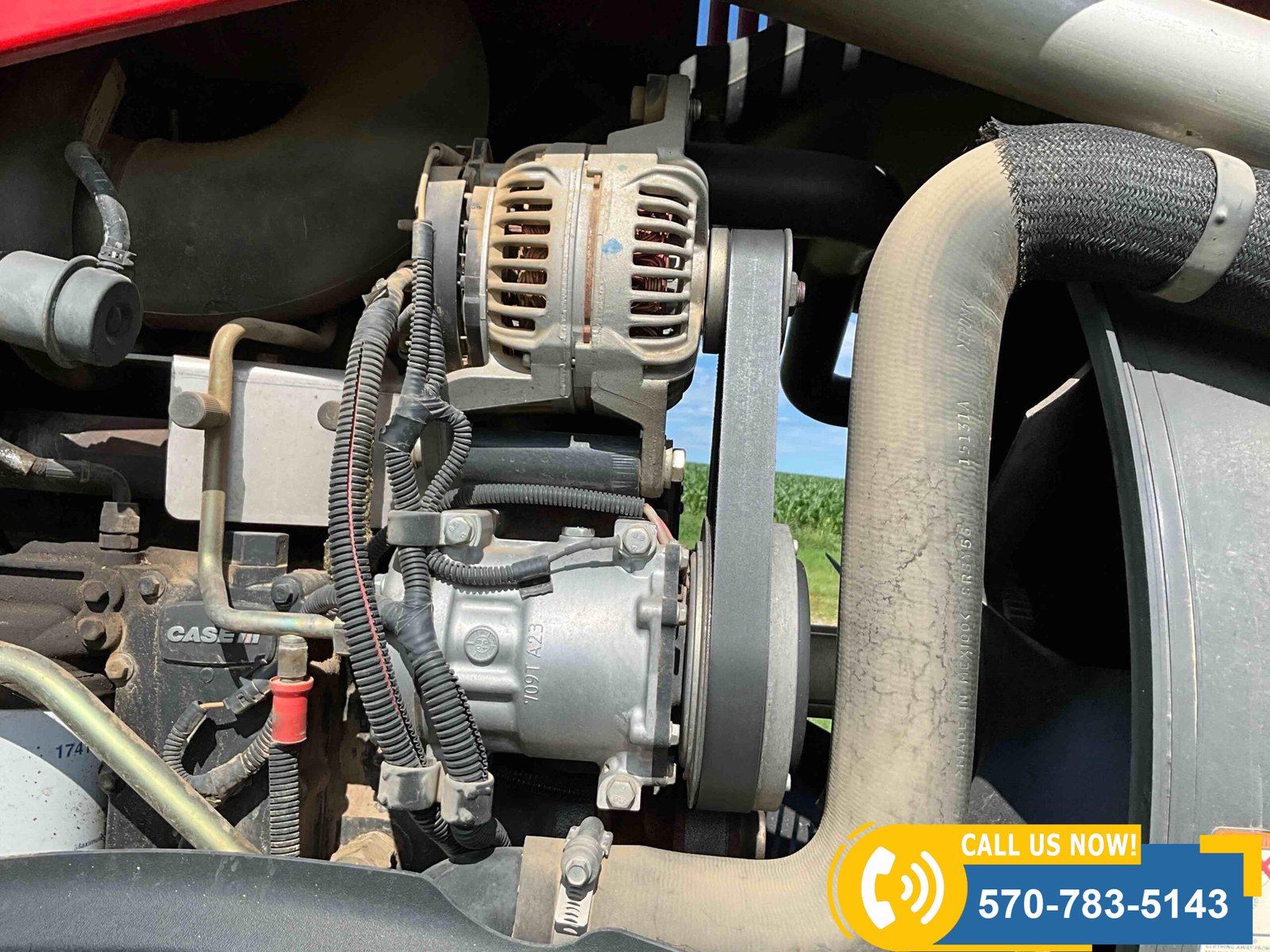 2010 Case IH Magnum 245 MFWD Tractor – 3,260 hours showing, 245 HP CNH 8.3L engine with block heater and 19-speed powershift (19F/4R). Equipped with large 1000 PTO, rear PTO with fender control, 4 hydraulic outlets, power beyond valve, and 3-point hitch with quick hitch. Features deluxe leather seat, ISOBUS compatibility, front fenders, and (6) 100 lb front weights. Rides on 380/85R34 front tires and 18.4R46 rear duals.