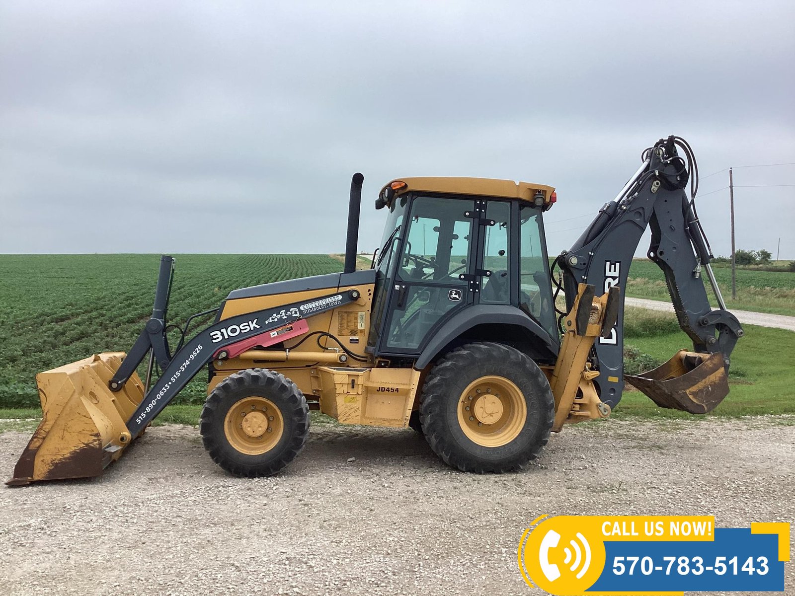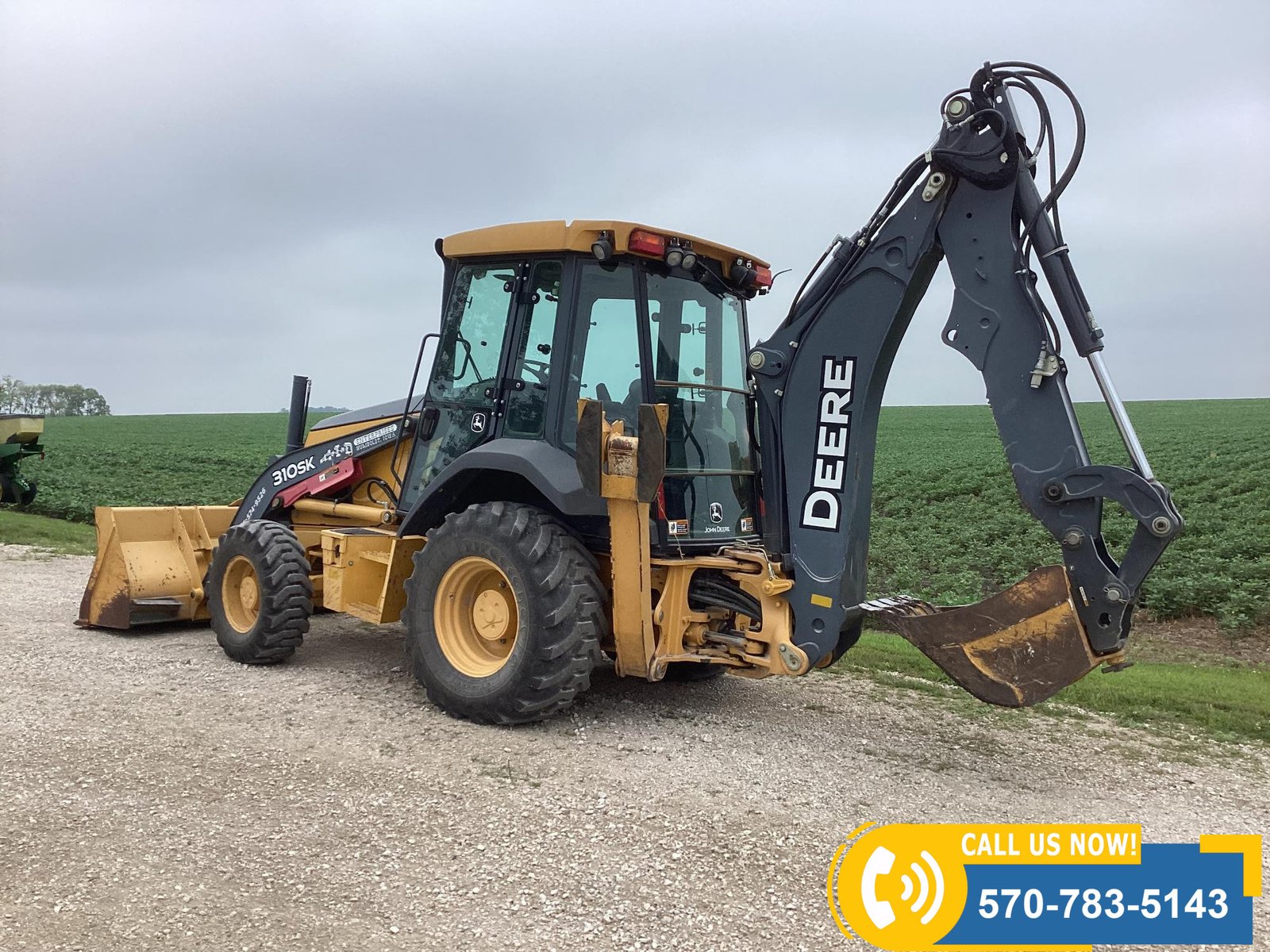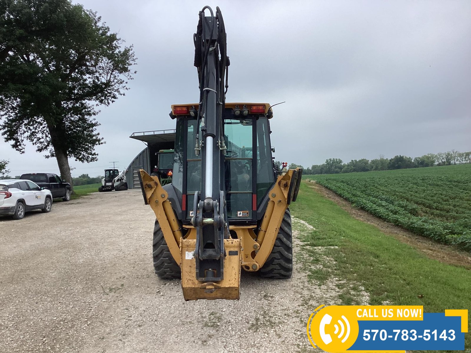 Low-hour machine with only 556 hours showing. Powered by a water-cooled diesel engine rated at 310 HP. Features include 4×4 drive, 94″ front loader bucket, 24″ backhoe bucket, extendahoe, 2 outriggers, and an enclosed cab with heat, A/C, and radio. Equipped with lights for visibility and rides on 12.5/80-18 front tires and 19.4L24 rear tires. Built for productivity and operator comfort.