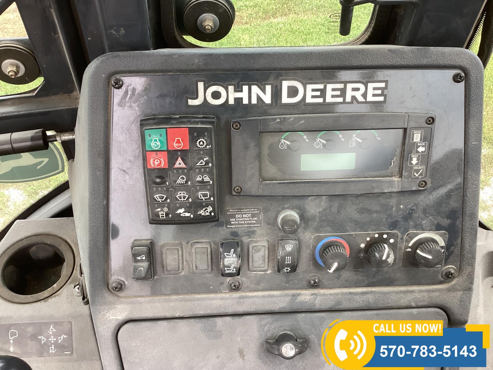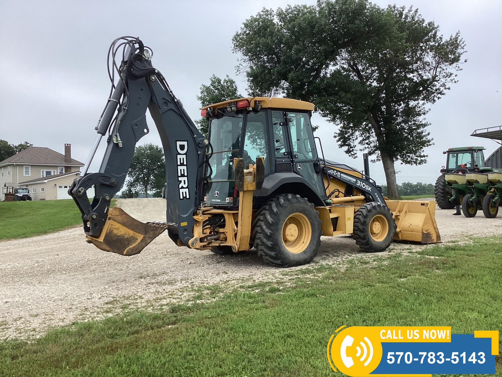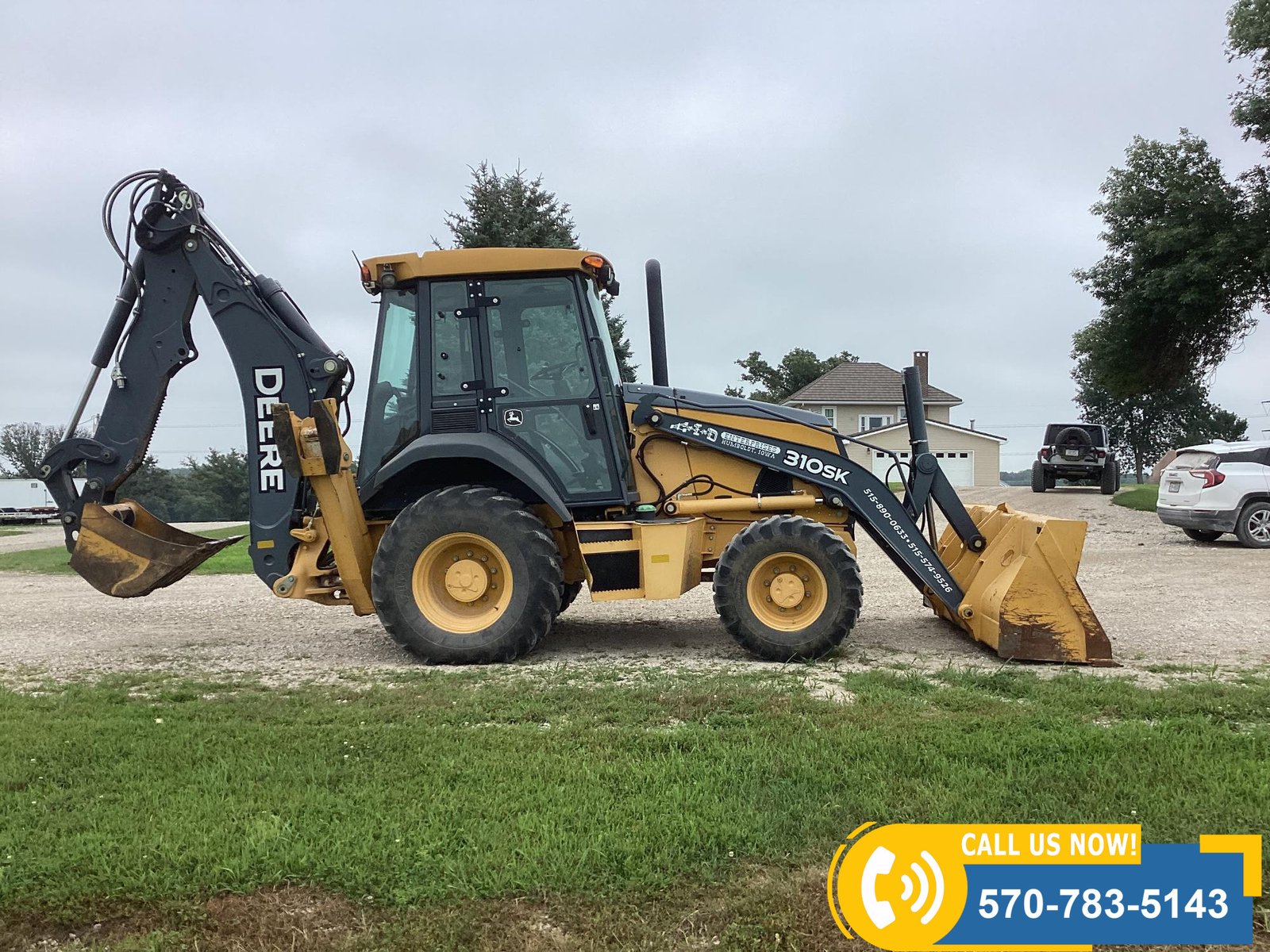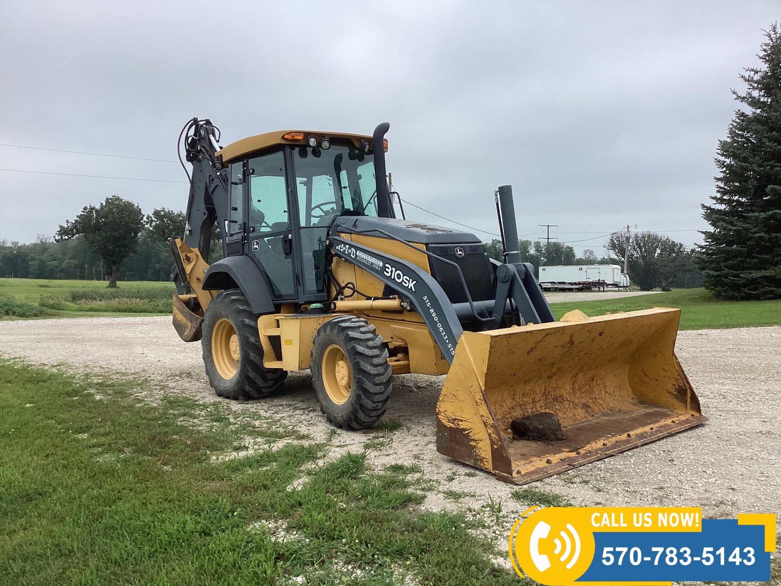 Low-hour machine with only 556 hours showing. Powered by a water-cooled diesel engine rated at 310 HP. Features include 4×4 drive, 94″ front loader bucket, 24″ backhoe bucket, extendahoe, 2 outriggers, and an enclosed cab with heat, A/C, and radio. Equipped with lights for visibility and rides on 12.5/80-18 front tires and 19.4L24 rear tires. Built for productivity and operator comfort.