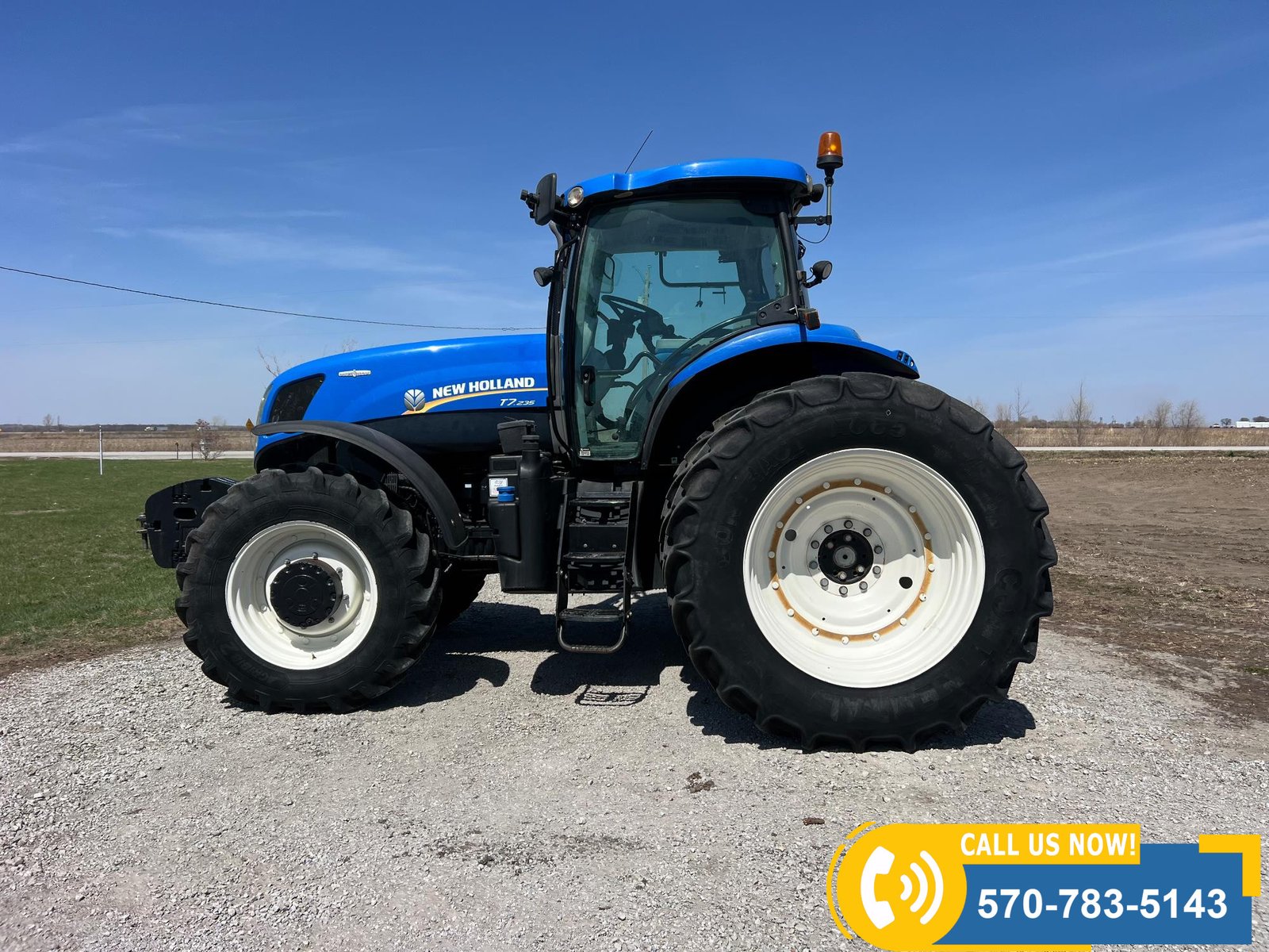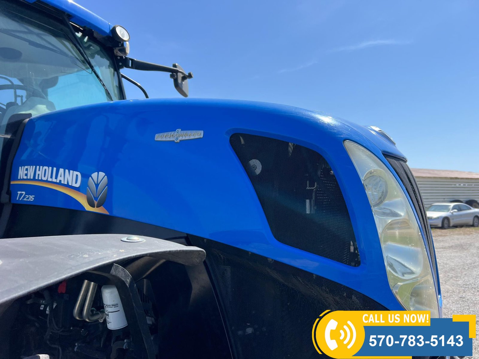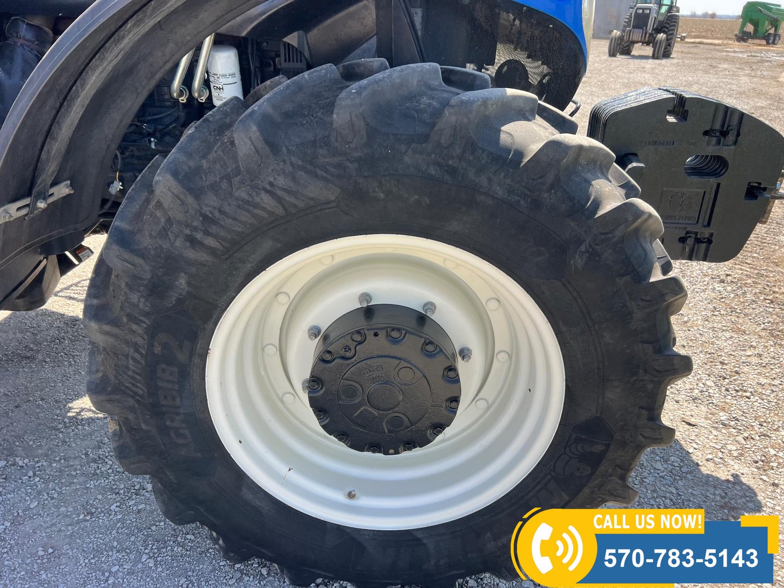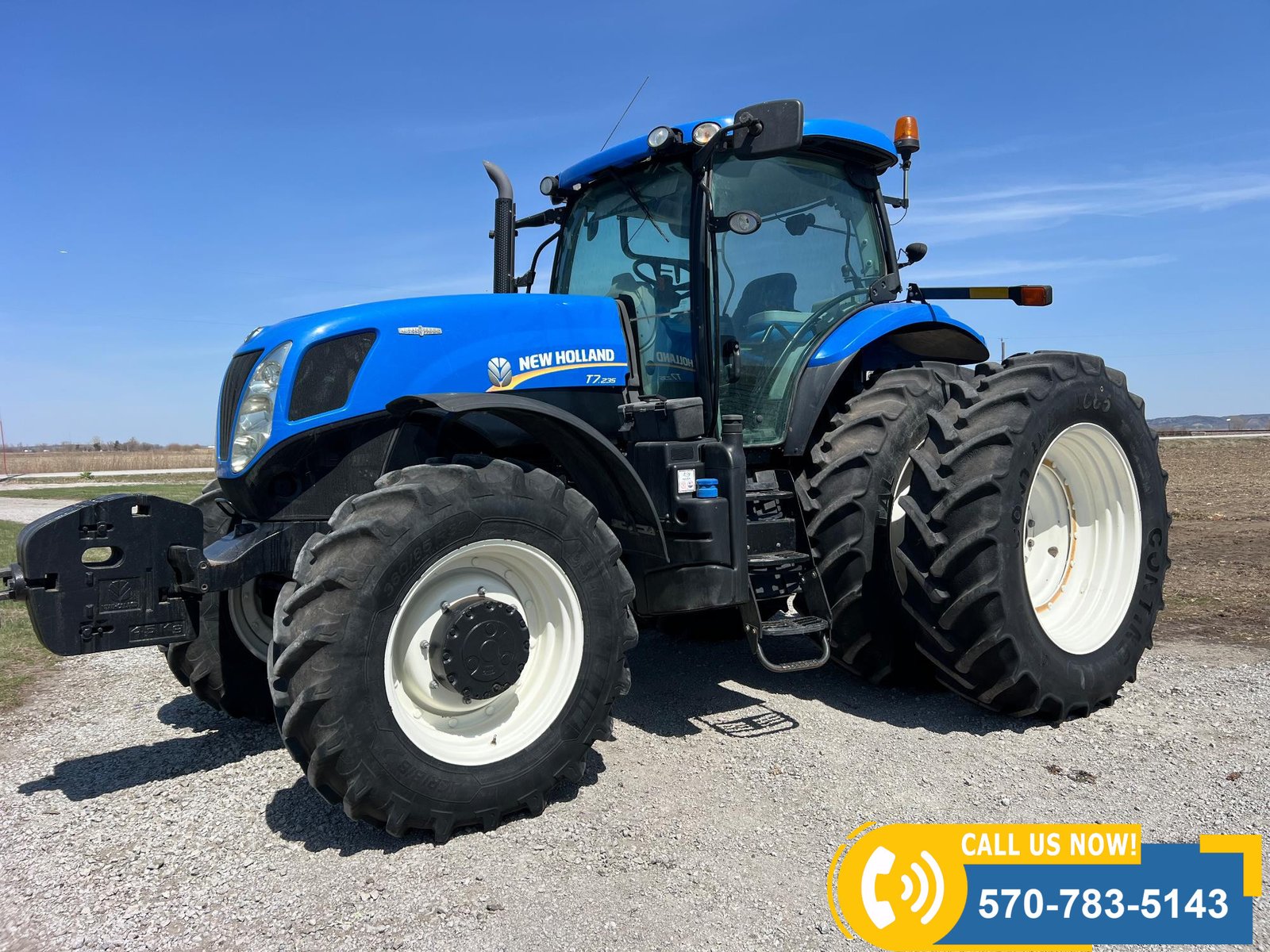 2013 New Holland T7.235 MFWD Tractor – 1,801 hours showing, powered by an FPT 6.7L 6-cylinder diesel engine with AutoCommand CVT transmission. Equipped with 3-point hitch, small 1000 PTO, monitor on armrest, 4 hydraulic outlets, and 10 front weights. Rides on 380/85R30 front tires and 480/80R42 rear duals.