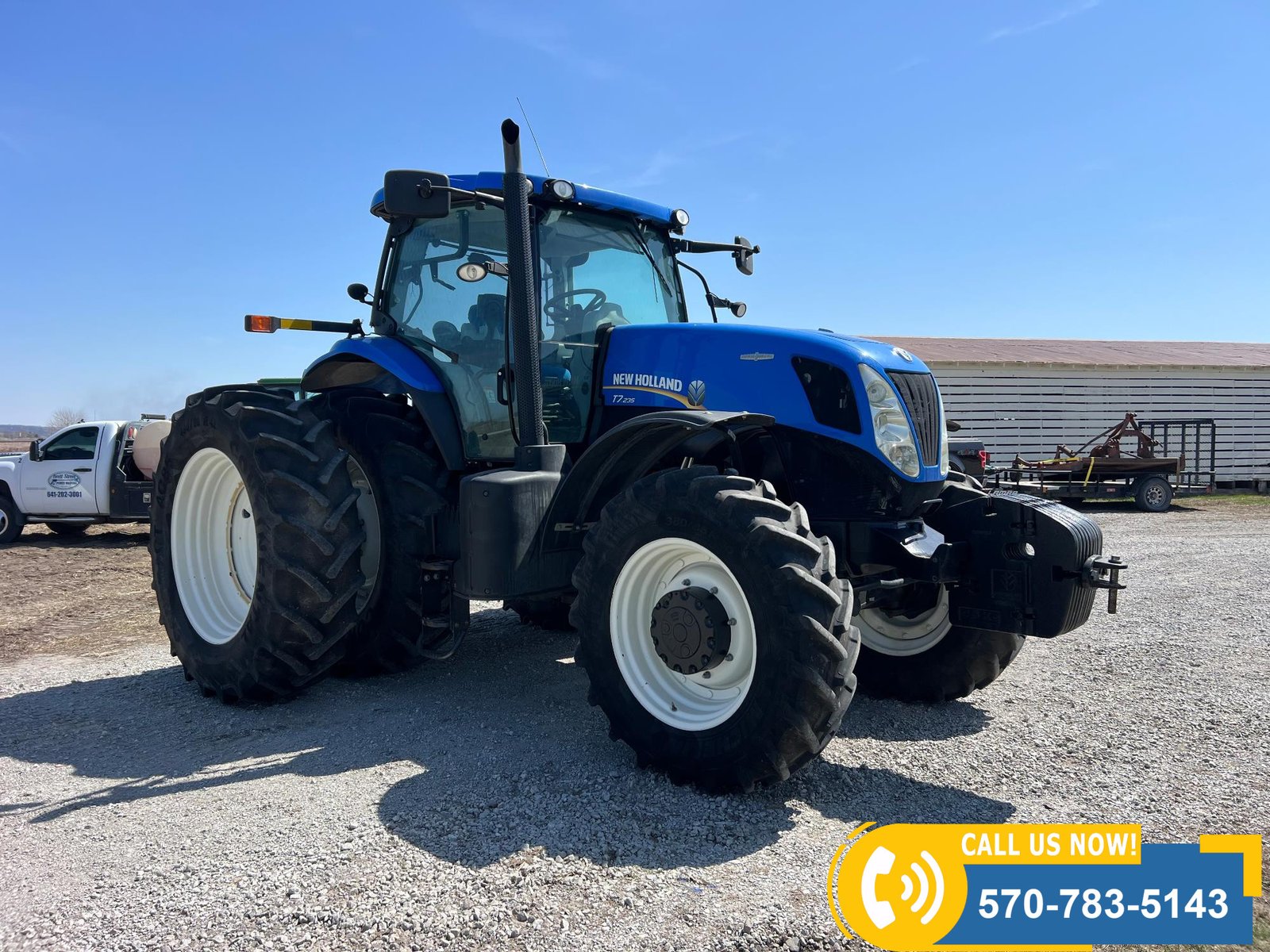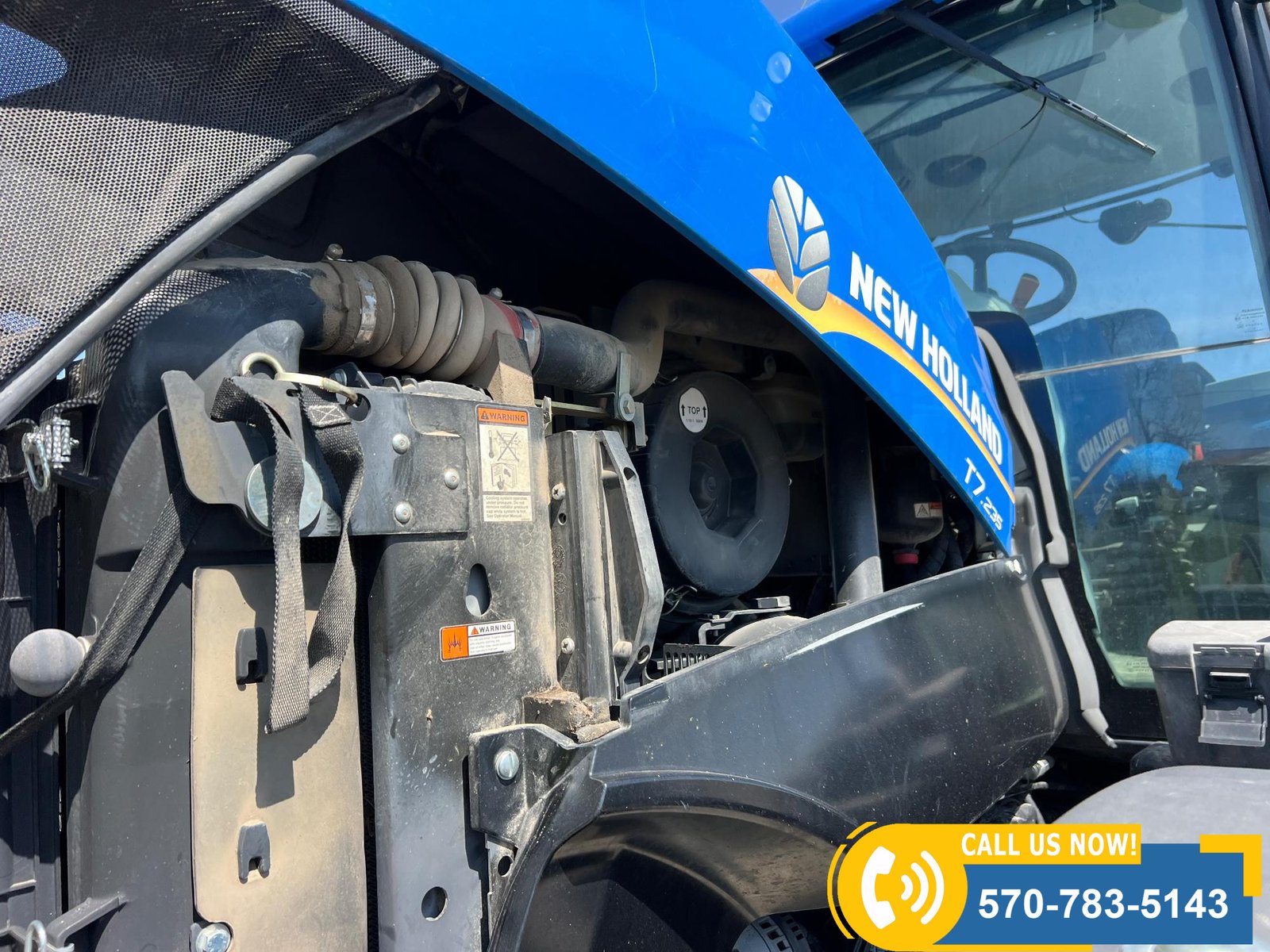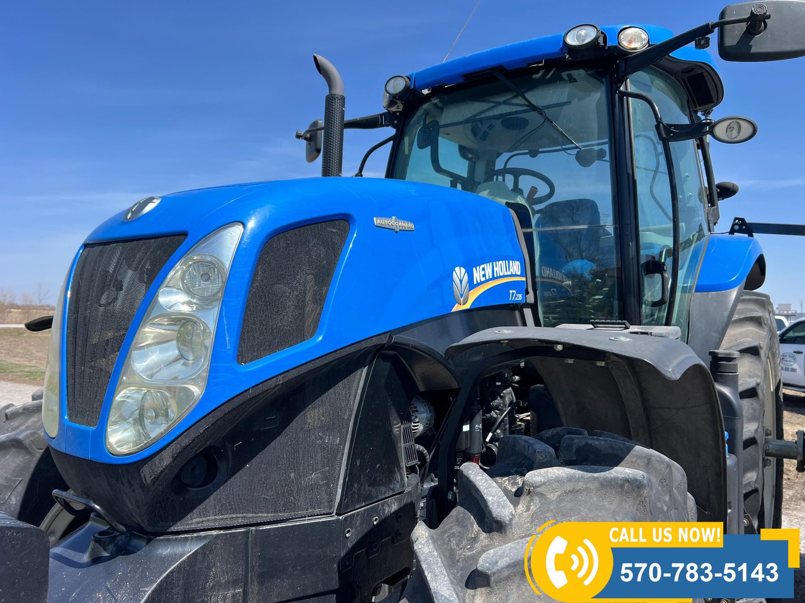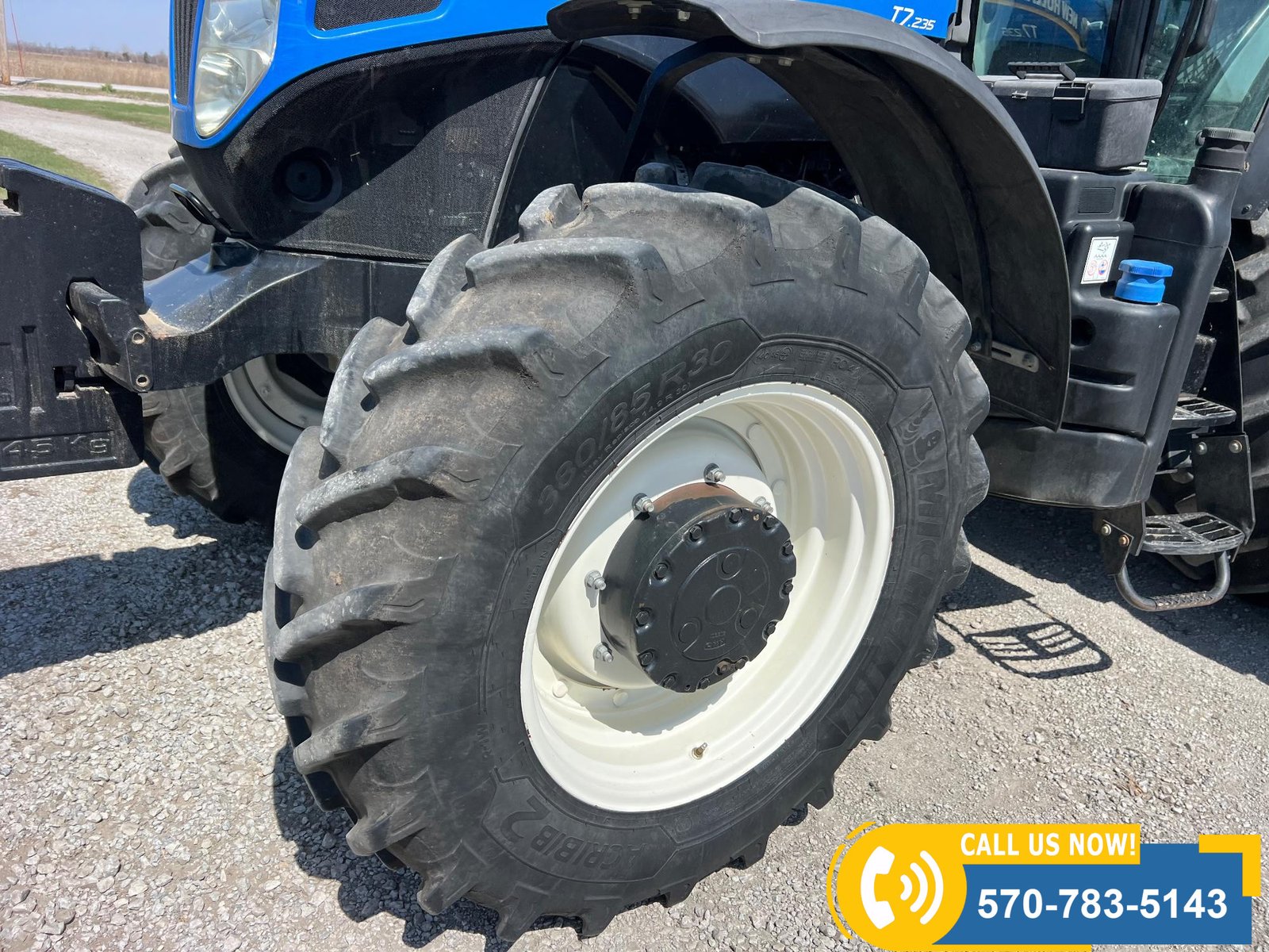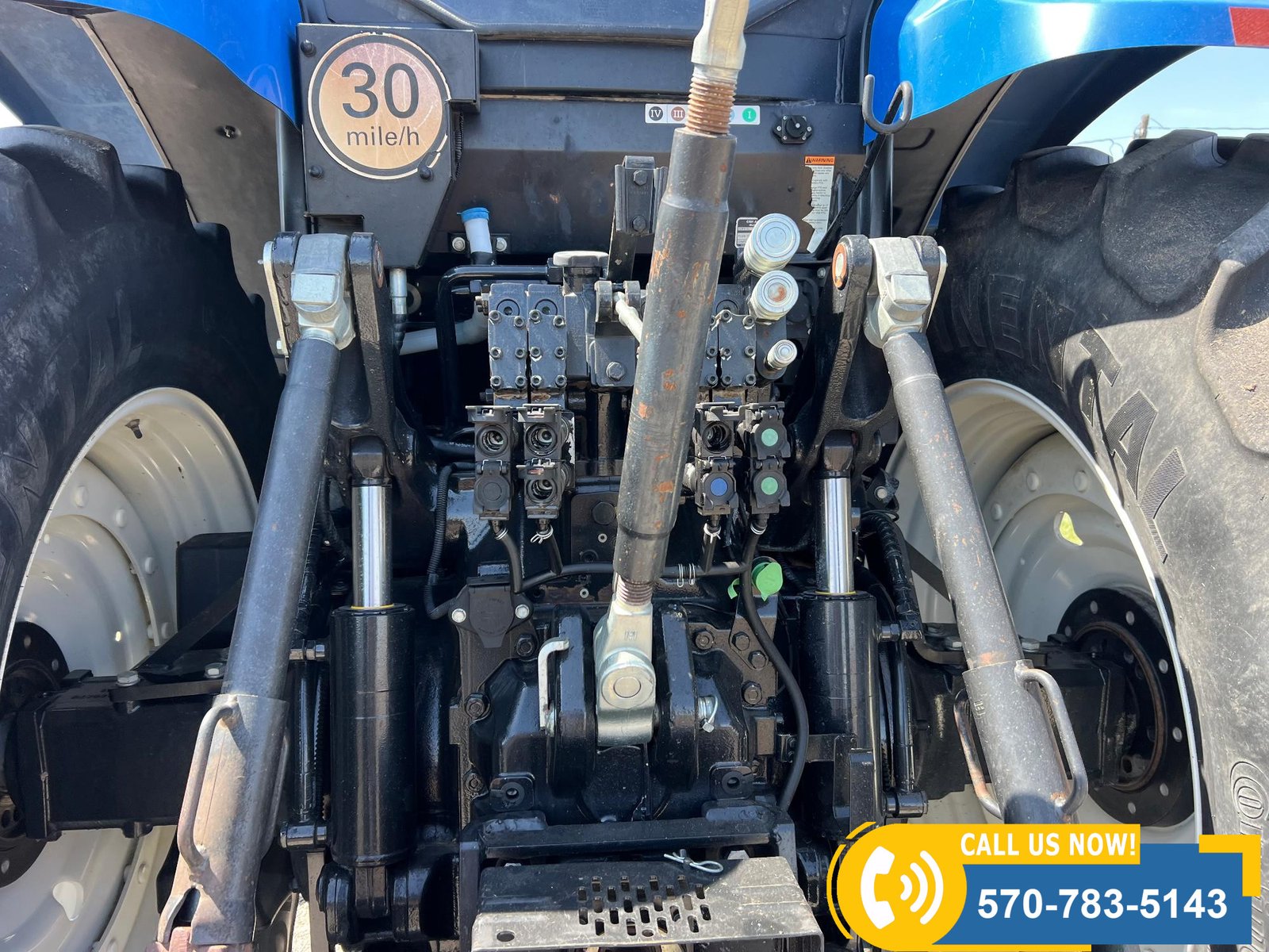 2013 New Holland T7.235 MFWD Tractor – 1,801 hours showing, powered by an FPT 6.7L 6-cylinder diesel engine with AutoCommand CVT transmission. Equipped with 3-point hitch, small 1000 PTO, monitor on armrest, 4 hydraulic outlets, and 10 front weights. Rides on 380/85R30 front tires and 480/80R42 rear duals.