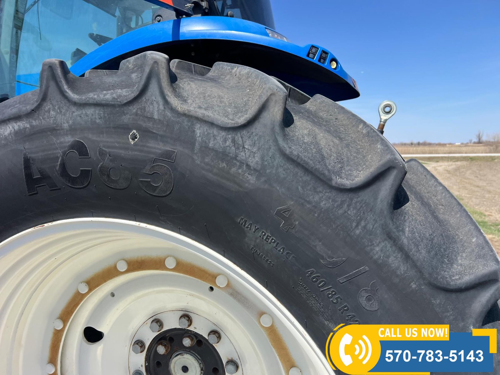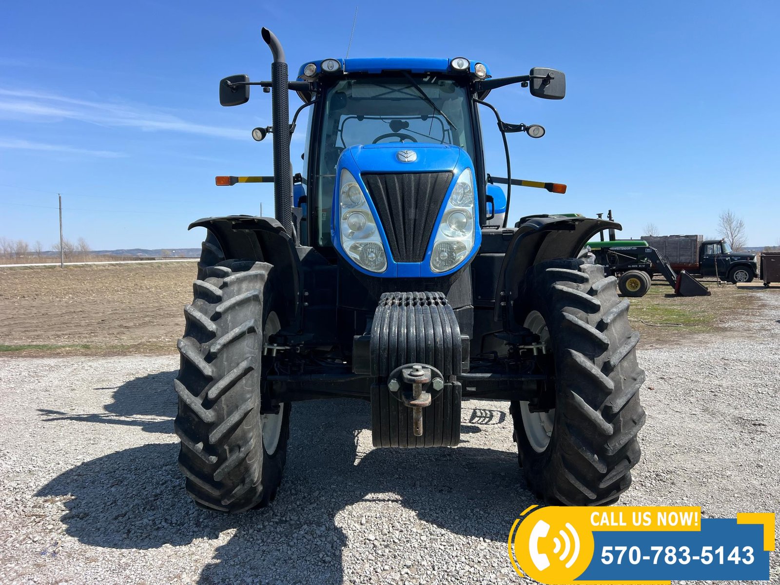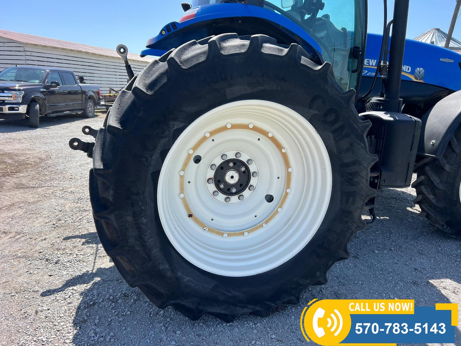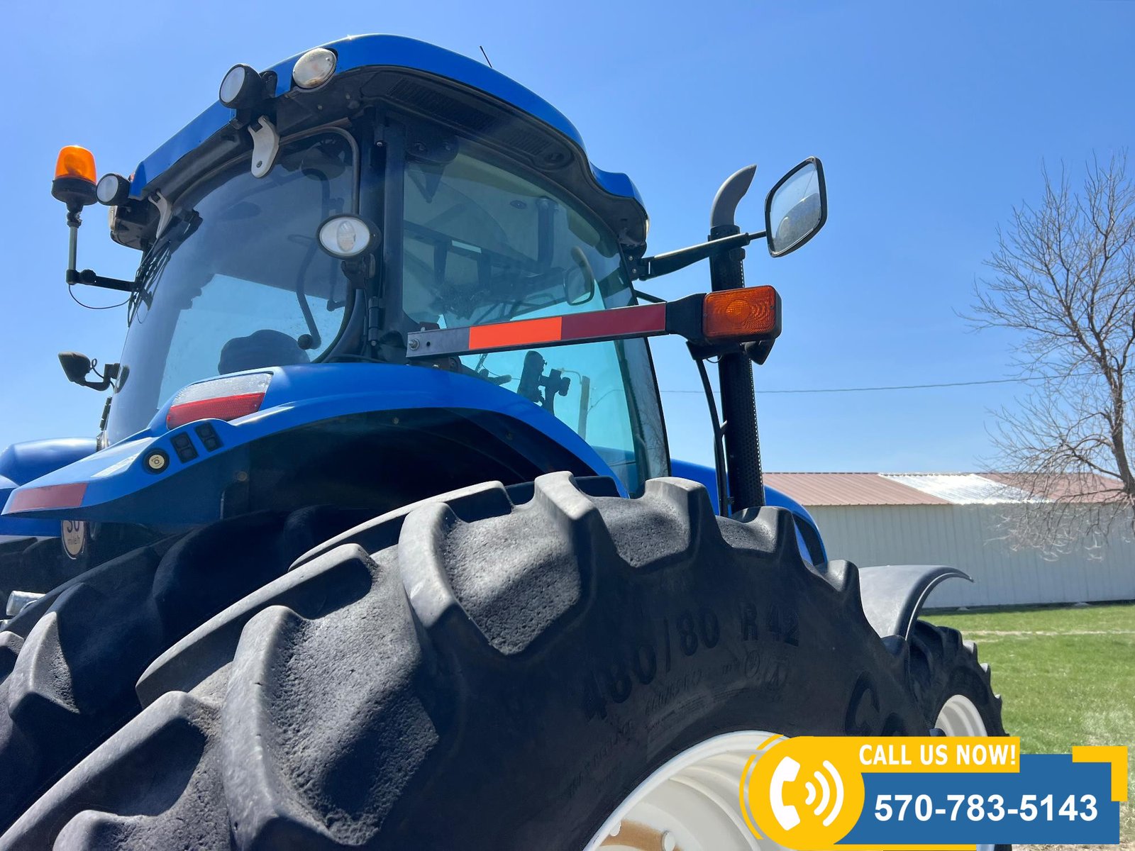 2013 New Holland T7.235 MFWD Tractor – 1,801 hours showing, powered by an FPT 6.7L 6-cylinder diesel engine with AutoCommand CVT transmission. Equipped with 3-point hitch, small 1000 PTO, monitor on armrest, 4 hydraulic outlets, and 10 front weights. Rides on 380/85R30 front tires and 480/80R42 rear duals.