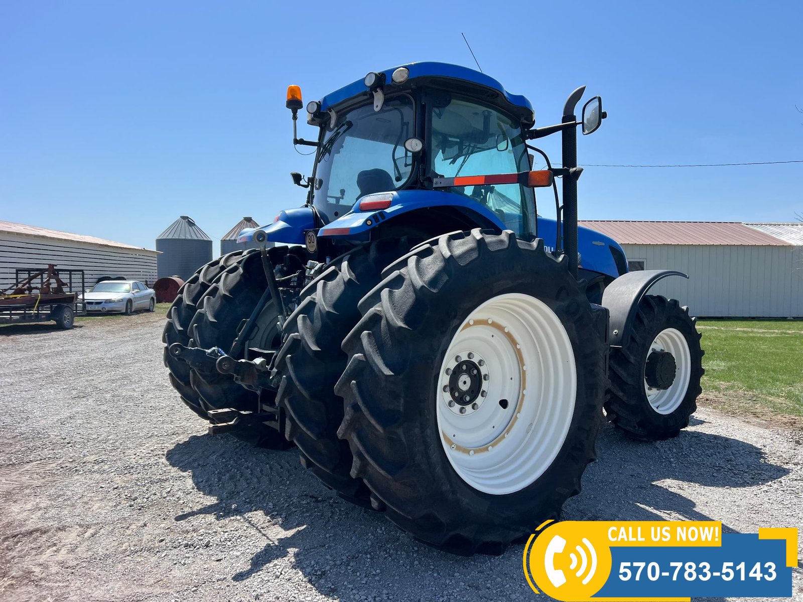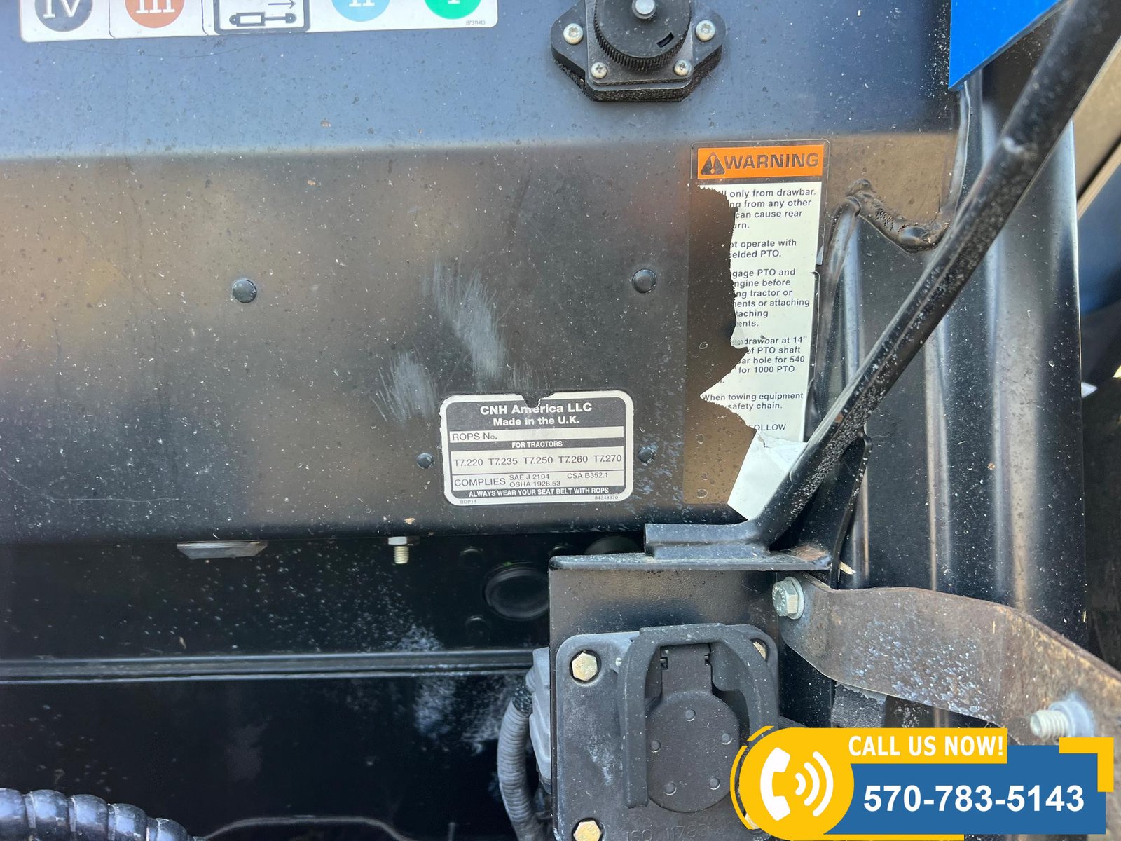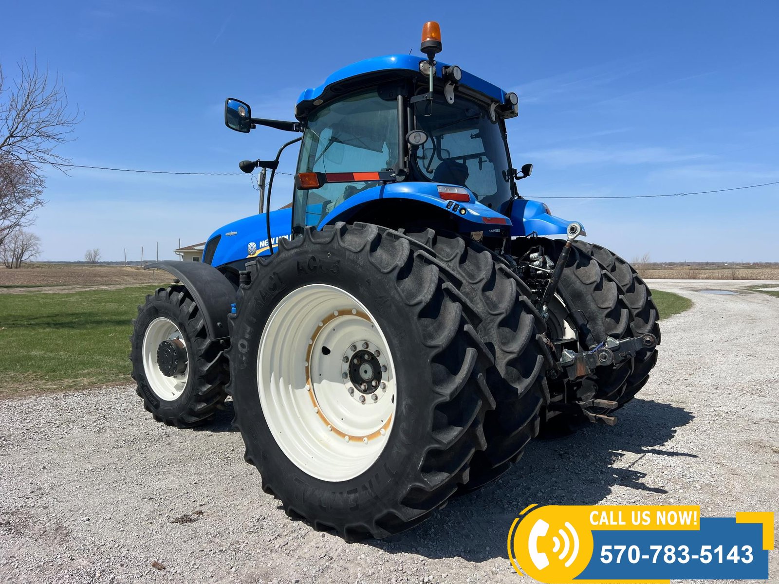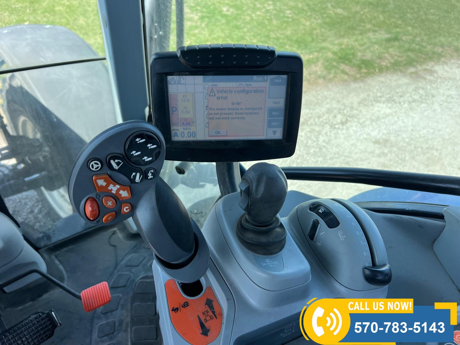 2013 New Holland T7.235 MFWD Tractor – 1,801 hours showing, powered by an FPT 6.7L 6-cylinder diesel engine with AutoCommand CVT transmission. Equipped with 3-point hitch, small 1000 PTO, monitor on armrest, 4 hydraulic outlets, and 10 front weights. Rides on 380/85R30 front tires and 480/80R42 rear duals.