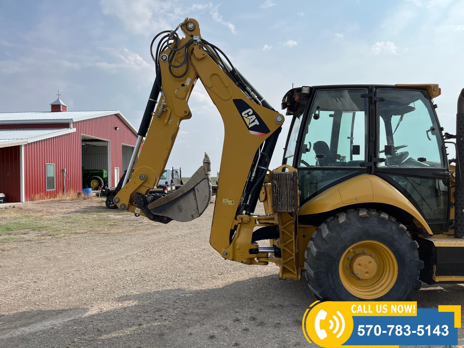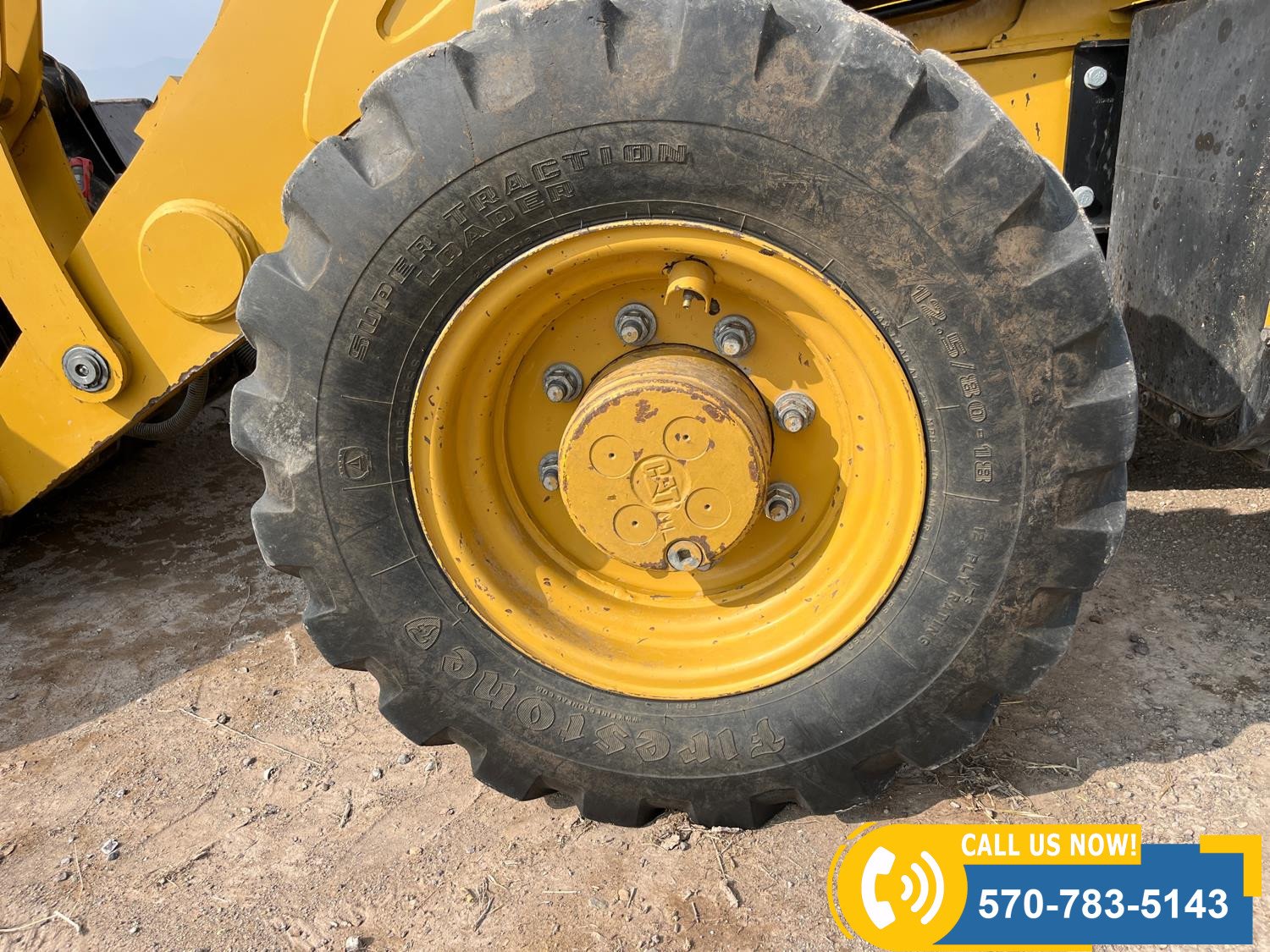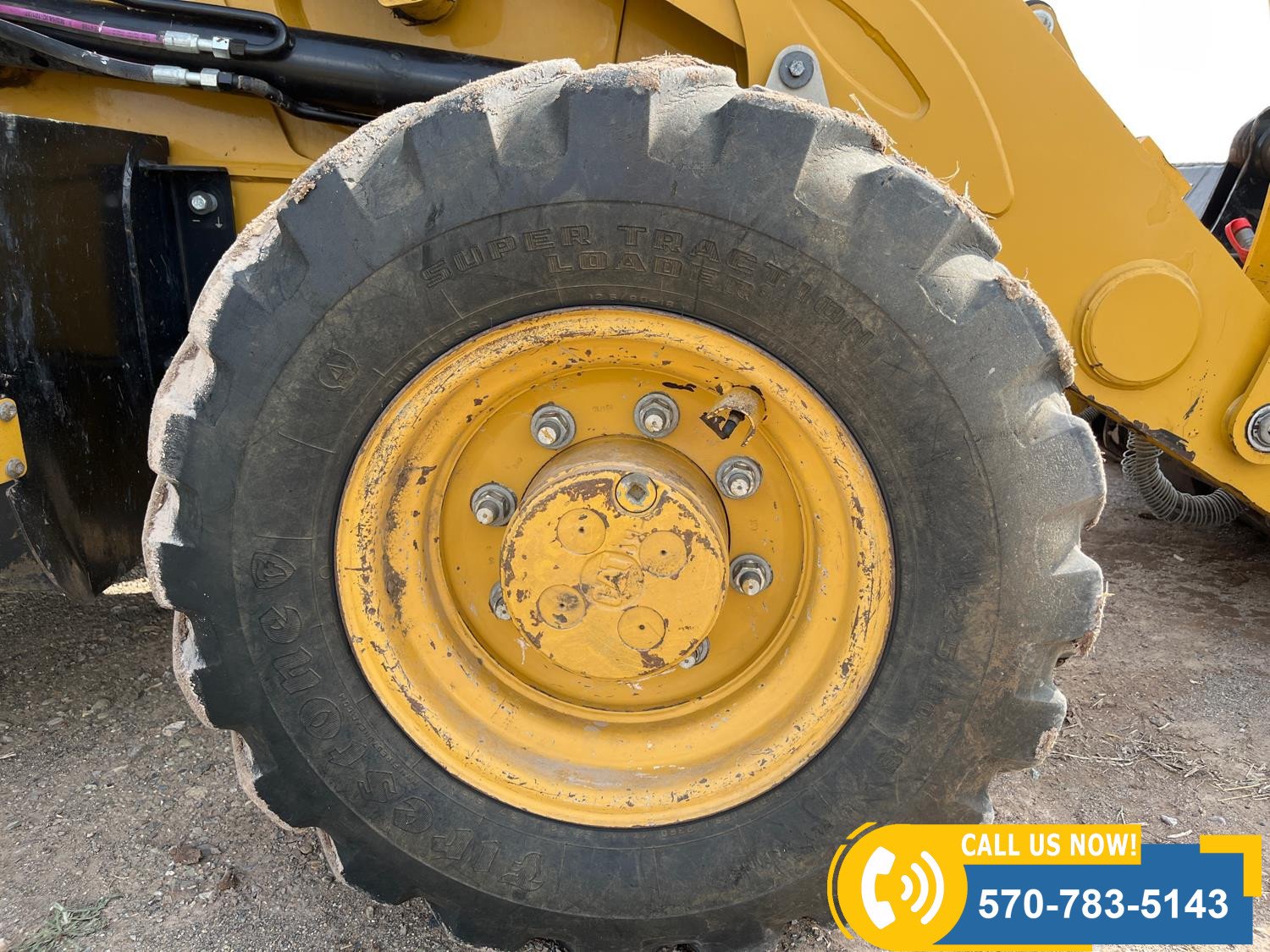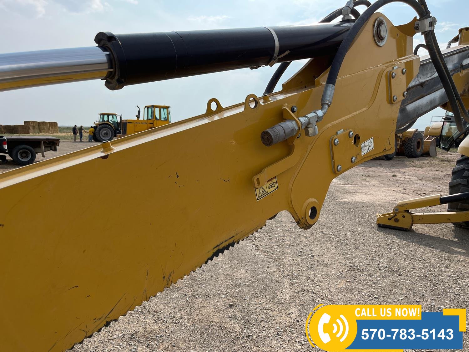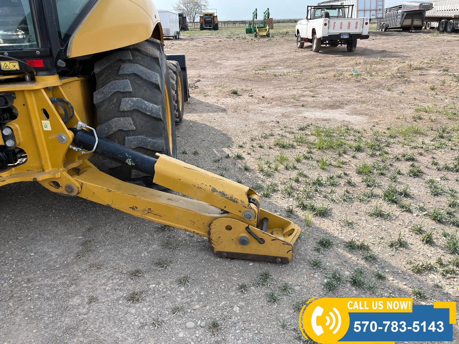 Well-equipped unit with 3,116.5 hours showing. Powered by a CAT 3054C water-cooled diesel engine and powershift transmission. Features include 4×4 drive, extendahoe with 19.5′ max digging depth, 1.3 cu. yd. loader bucket capacity, two auxiliary hydraulics, differential lock, and ride control. Enclosed cab with heat, A/C, radio, and dual doors for easy access. Rides on 12.5/80-18 front tires and 19.5L-24 rear tires. Weighs 24,251 lbs and includes lighting and outriggers for stability and visibility on the jobsite.