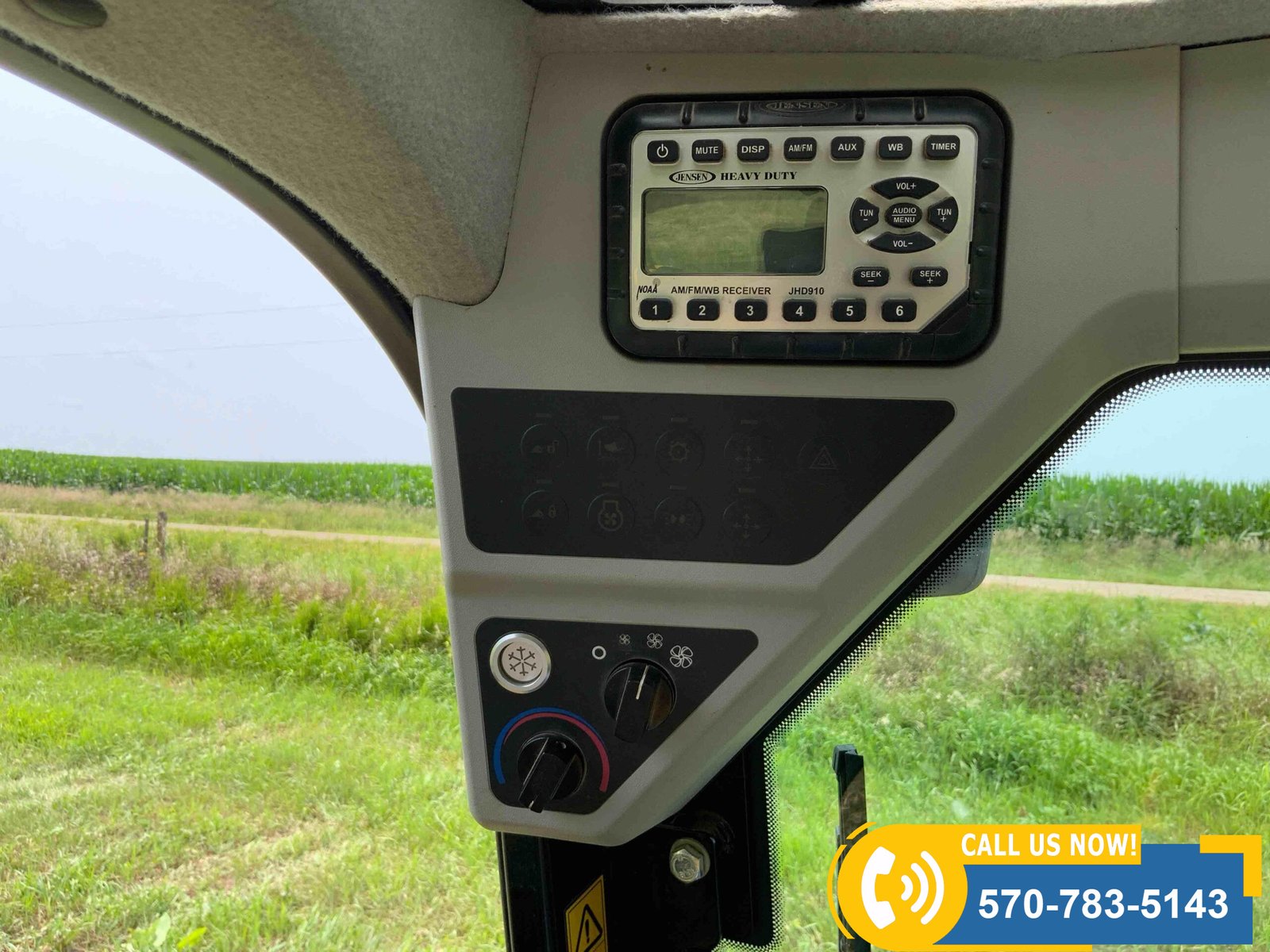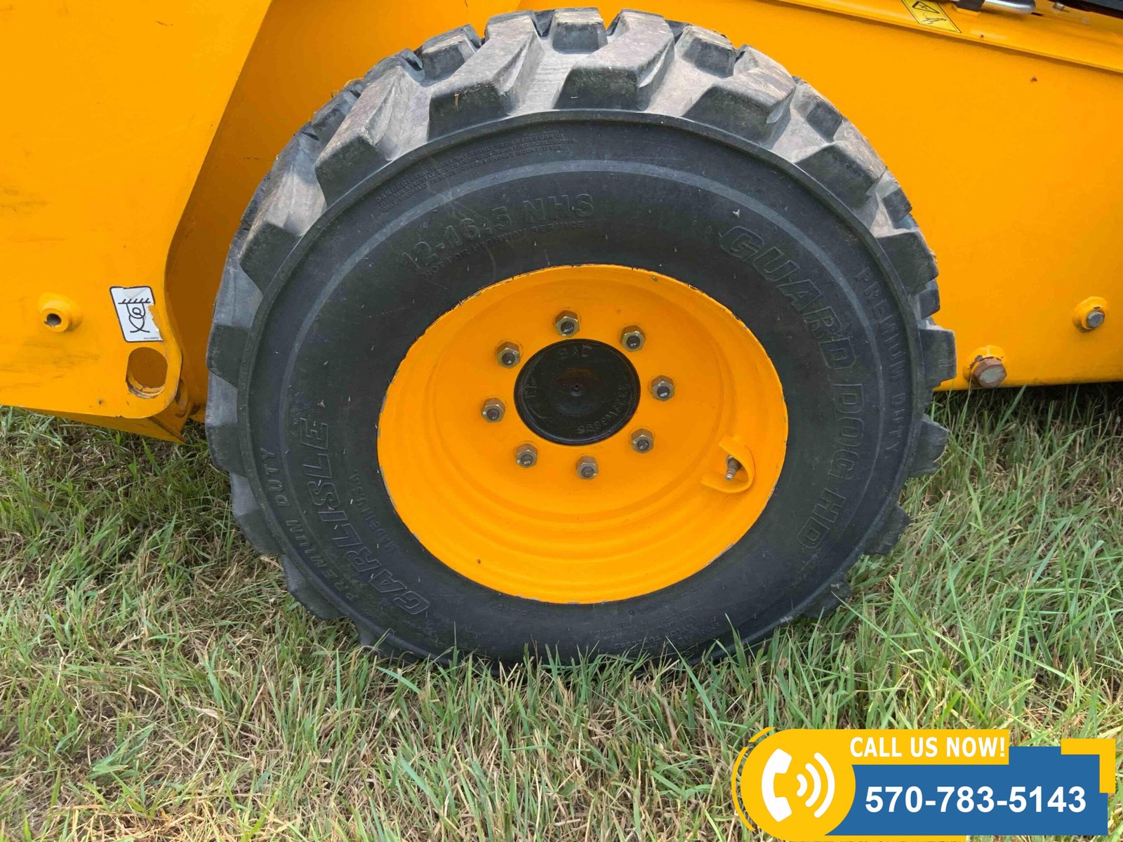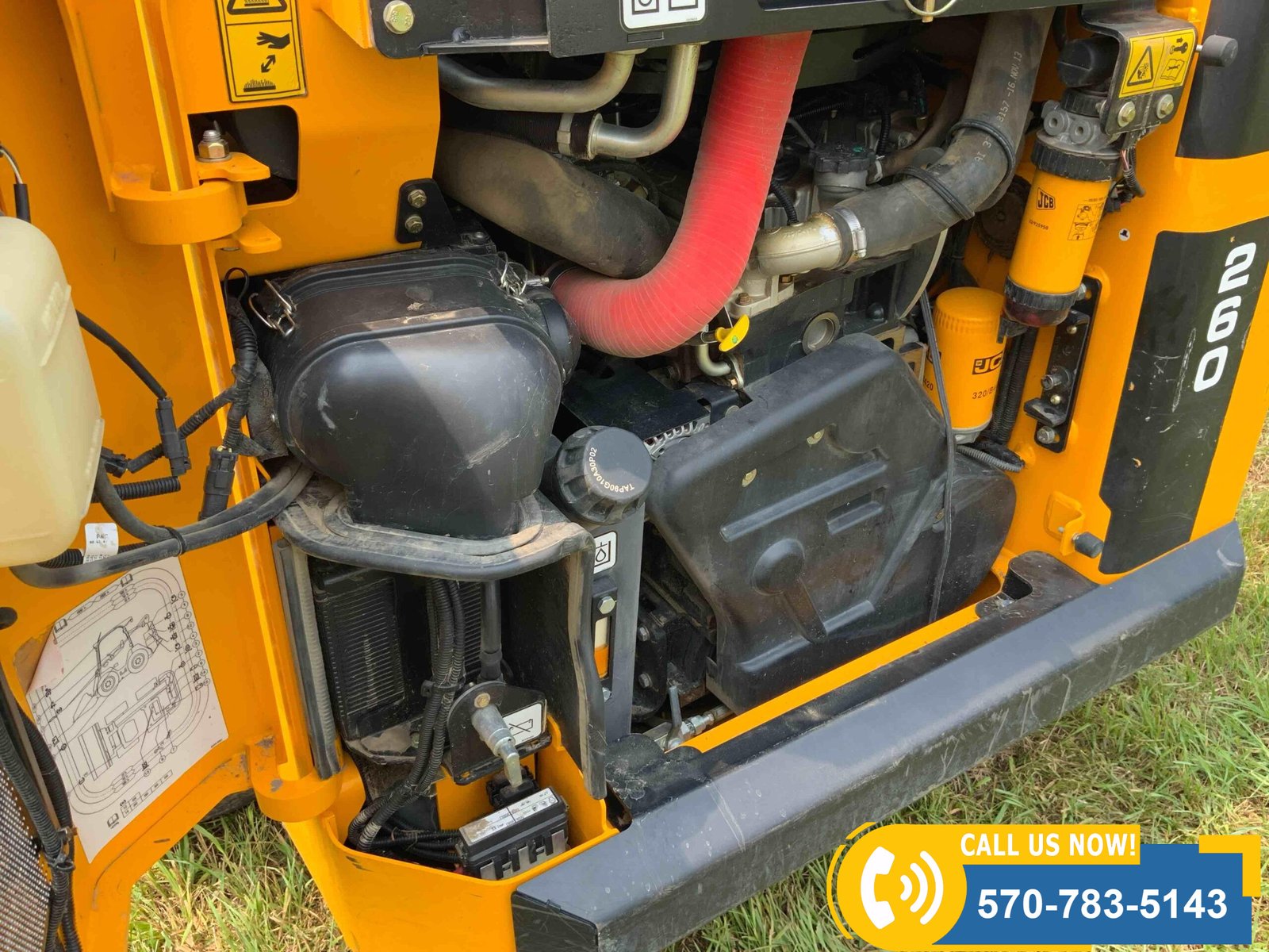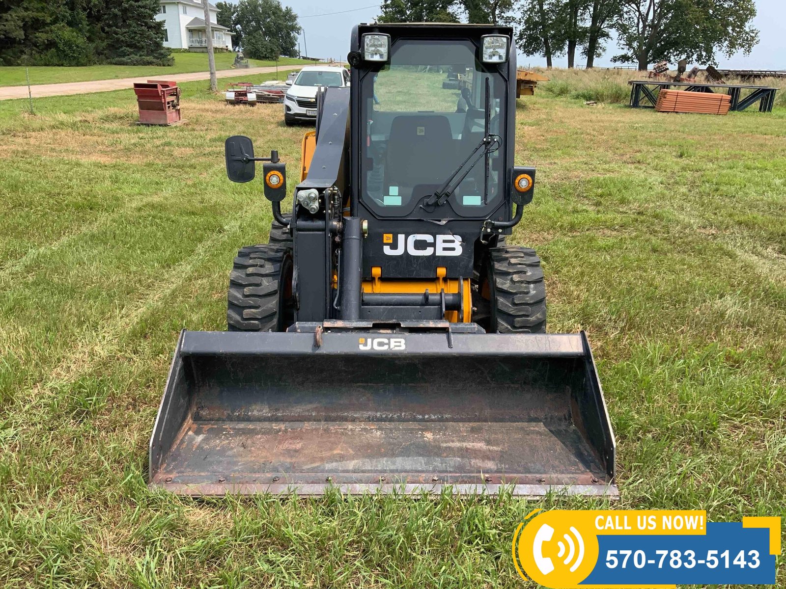 Clean machine with 938.5 hours showing. Powered by a 4-cylinder turbo diesel engine and hydrostatic transmission. Features include JCB 7-way controls (ISO & H pattern), high-flow hydraulics, 78” bucket with bolt-on cutting edge (BOCE), reversing fan, parallel lift, smooth ride, and 110V engine block heater. Comfortable enclosed cab with air suspension seat, A/C, heat, radio, and foot throttle. Rides on 12-16.5 tires.
