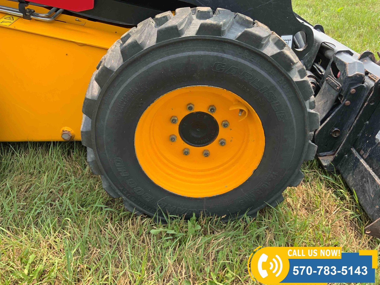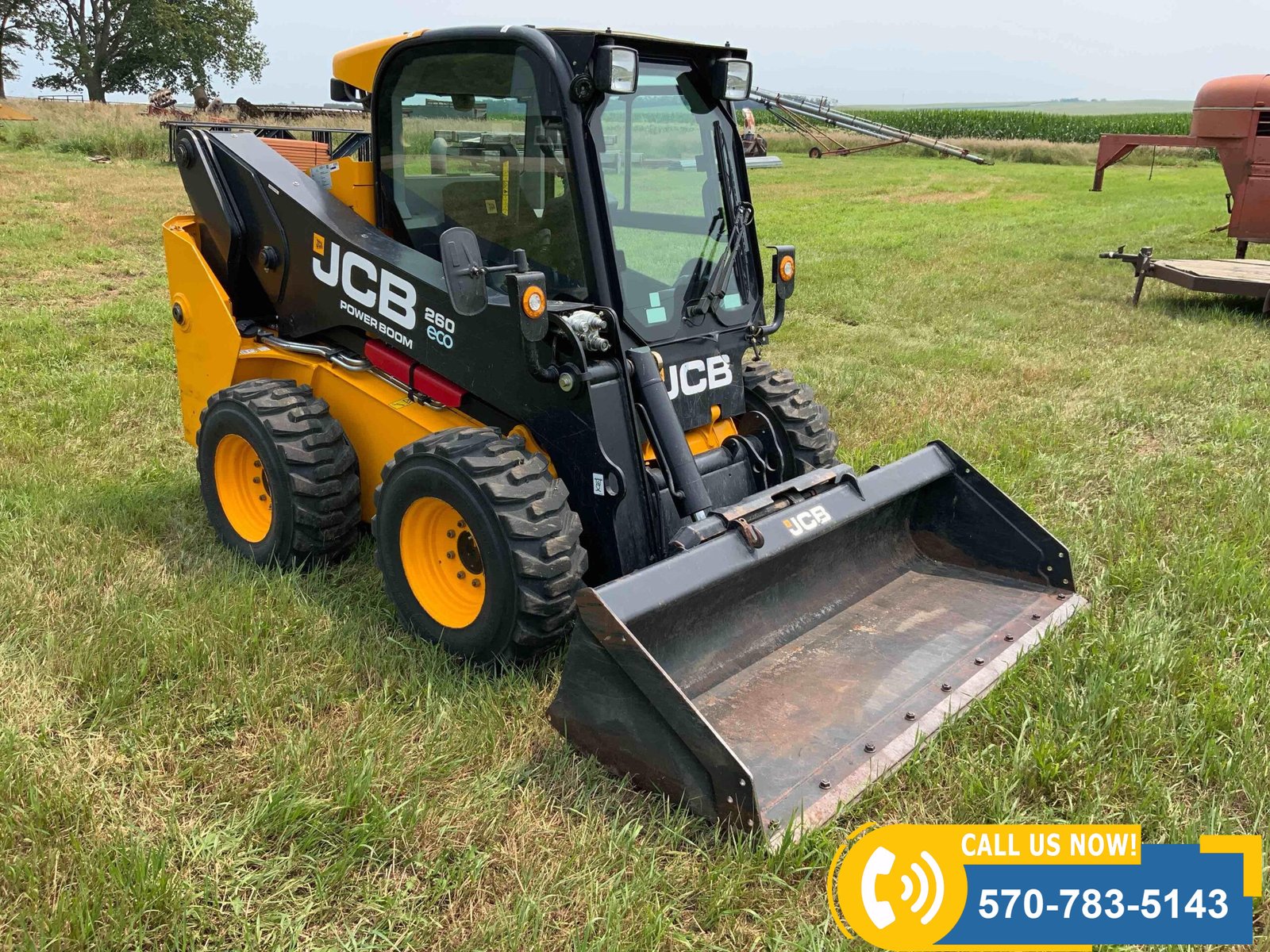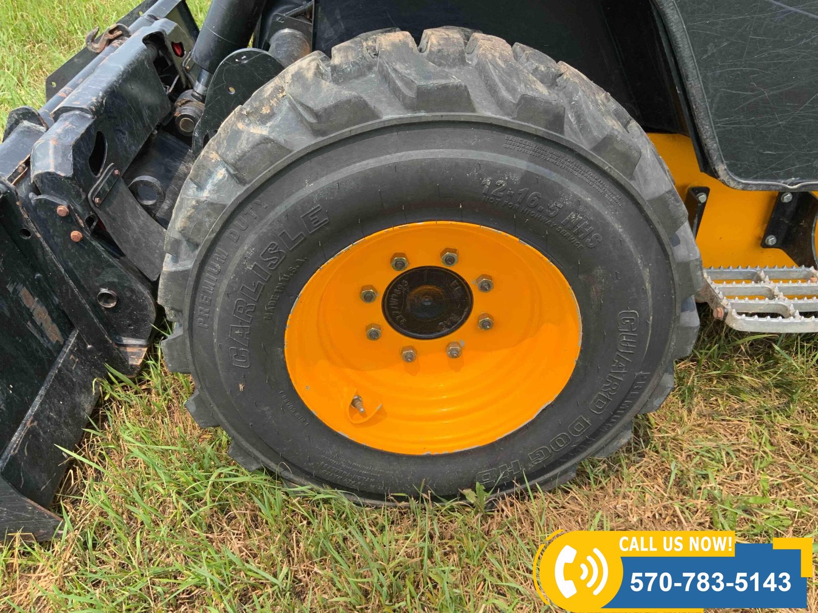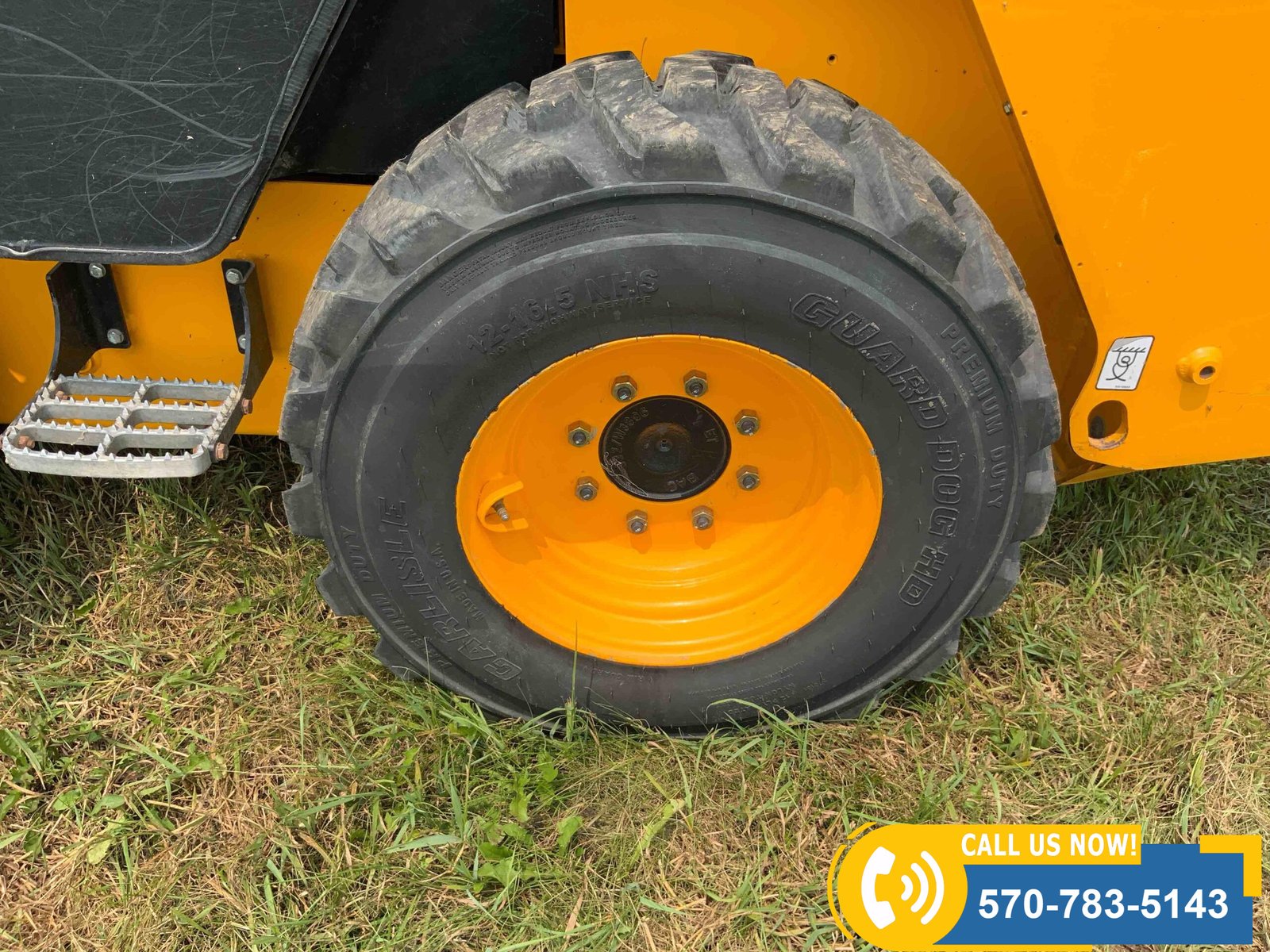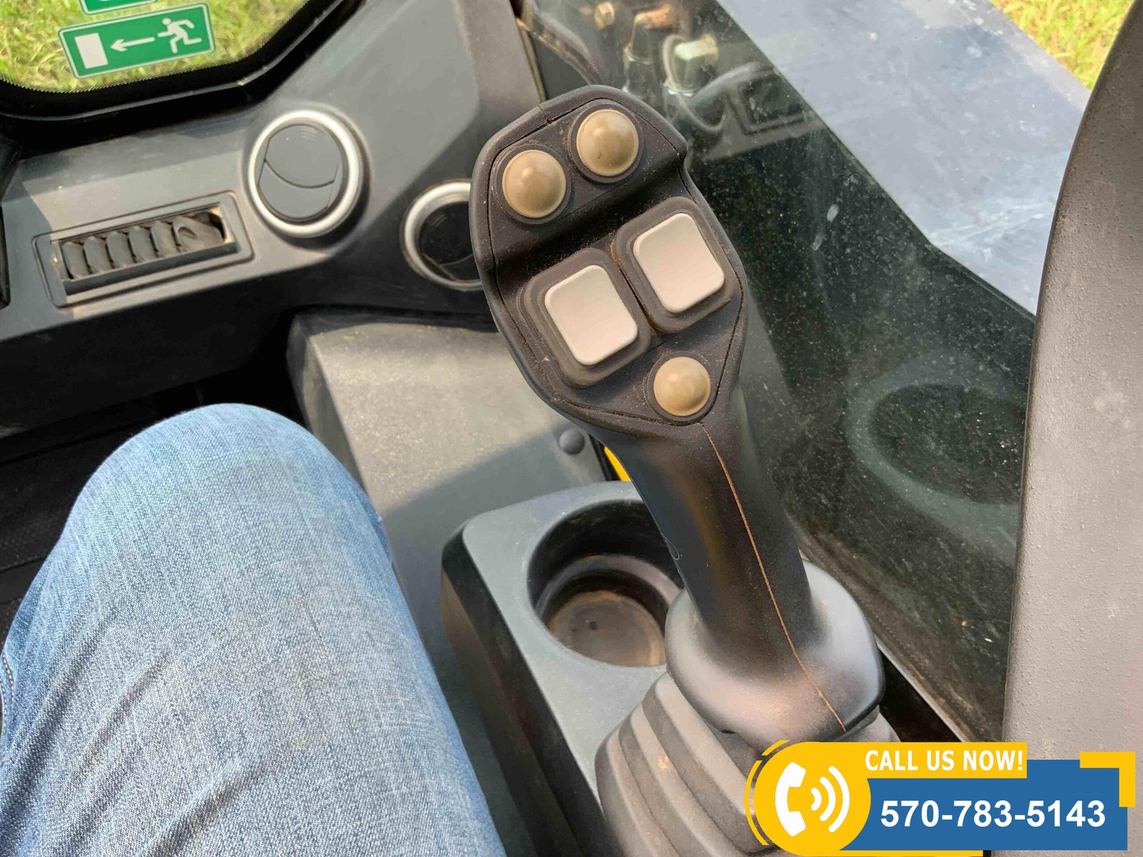 Clean machine with 938.5 hours showing. Powered by a 4-cylinder turbo diesel engine and hydrostatic transmission. Features include JCB 7-way controls (ISO & H pattern), high-flow hydraulics, 78” bucket with bolt-on cutting edge (BOCE), reversing fan, parallel lift, smooth ride, and 110V engine block heater. Comfortable enclosed cab with air suspension seat, A/C, heat, radio, and foot throttle. Rides on 12-16.5 tires.