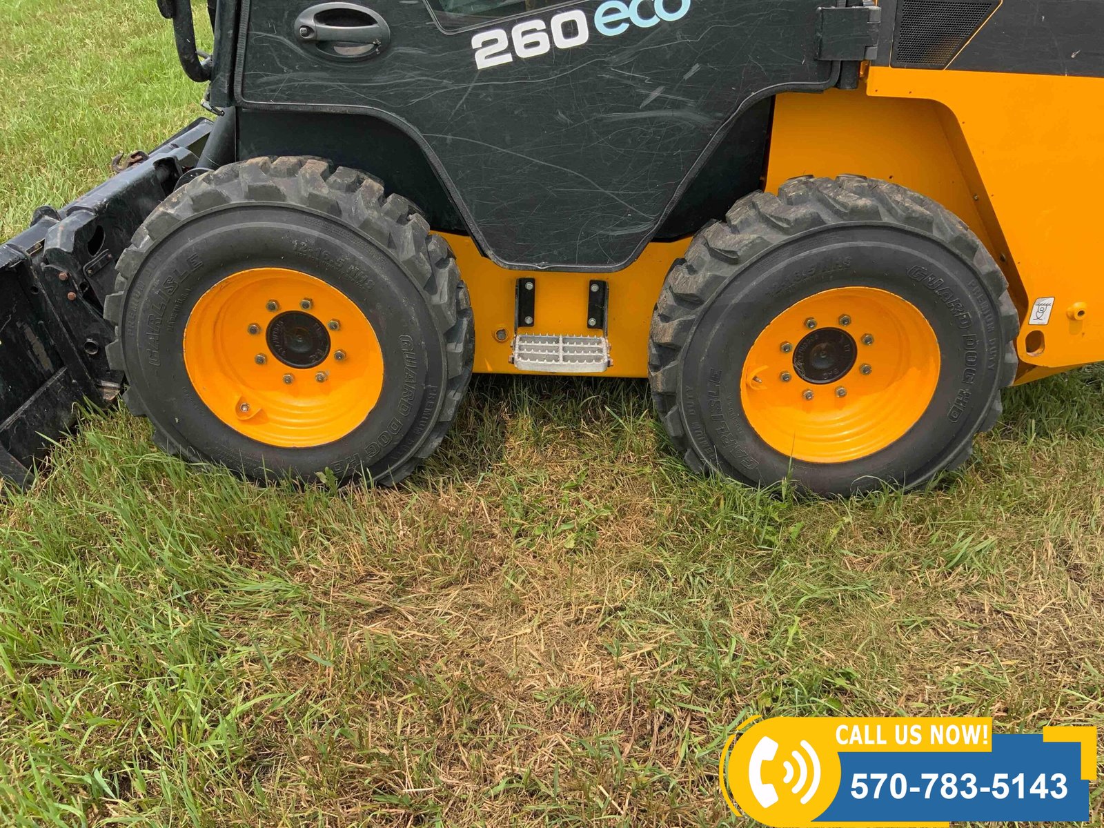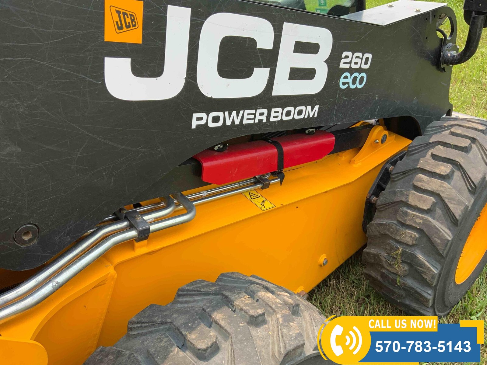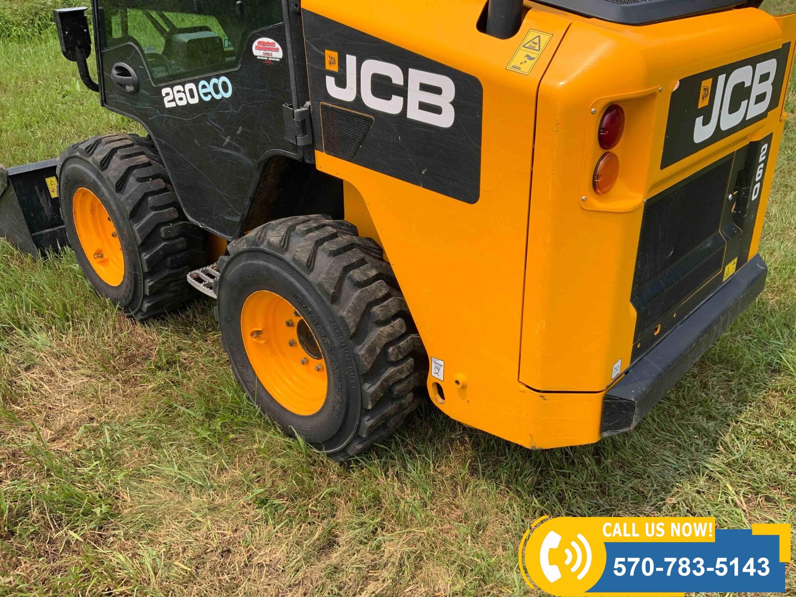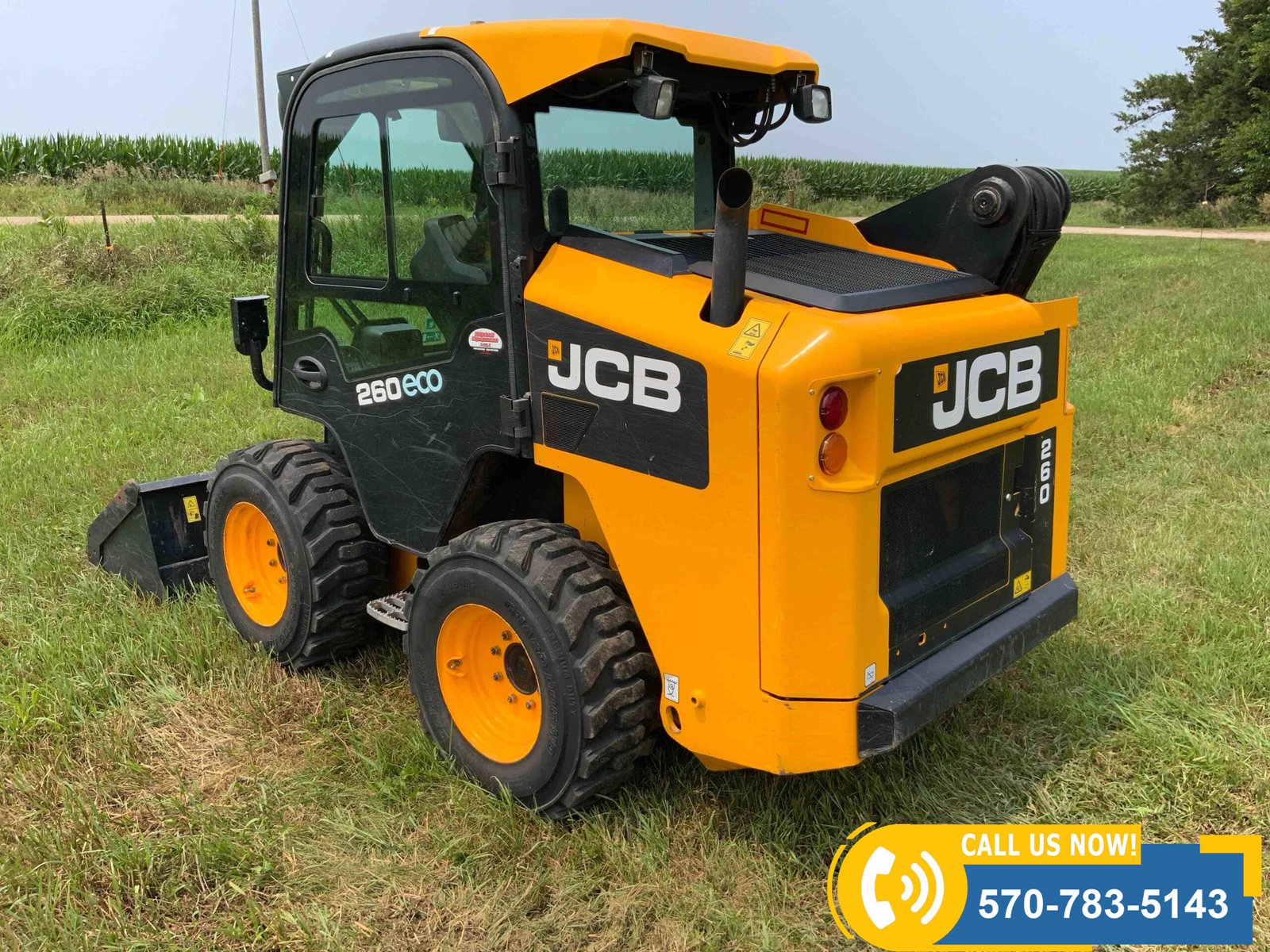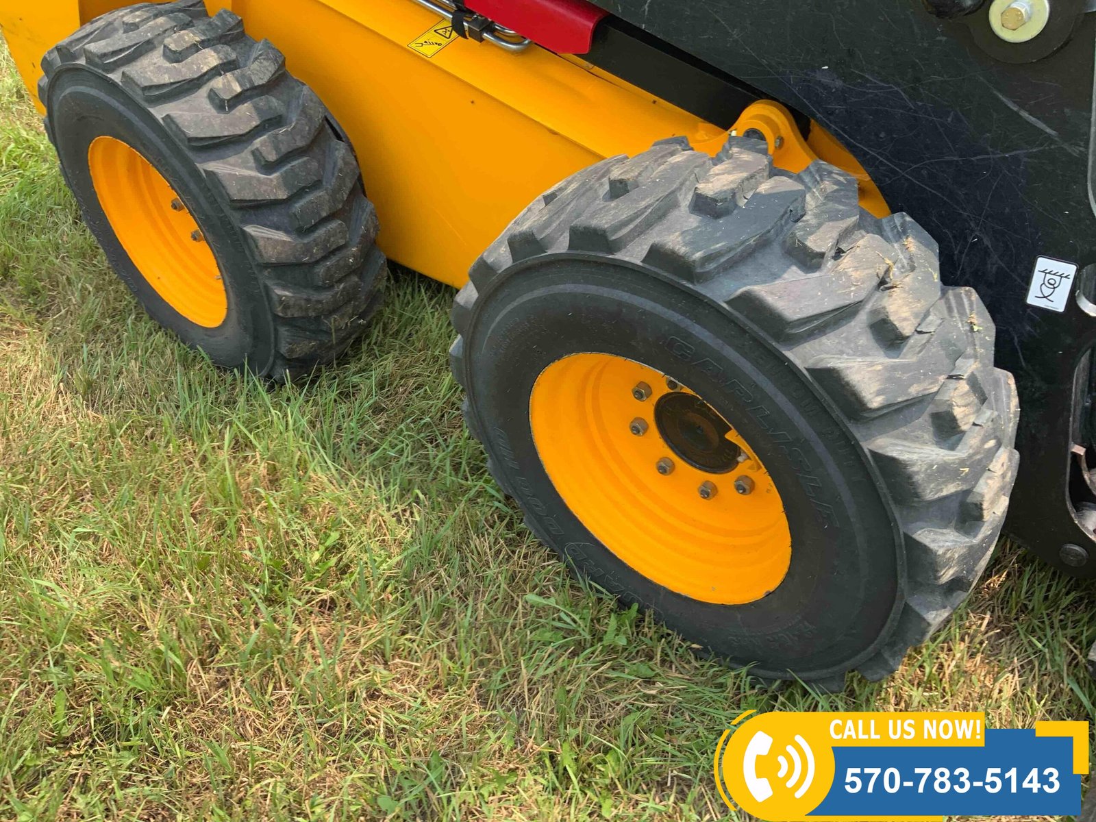 Clean machine with 938.5 hours showing. Powered by a 4-cylinder turbo diesel engine and hydrostatic transmission. Features include JCB 7-way controls (ISO & H pattern), high-flow hydraulics, 78” bucket with bolt-on cutting edge (BOCE), reversing fan, parallel lift, smooth ride, and 110V engine block heater. Comfortable enclosed cab with air suspension seat, A/C, heat, radio, and foot throttle. Rides on 12-16.5 tires.