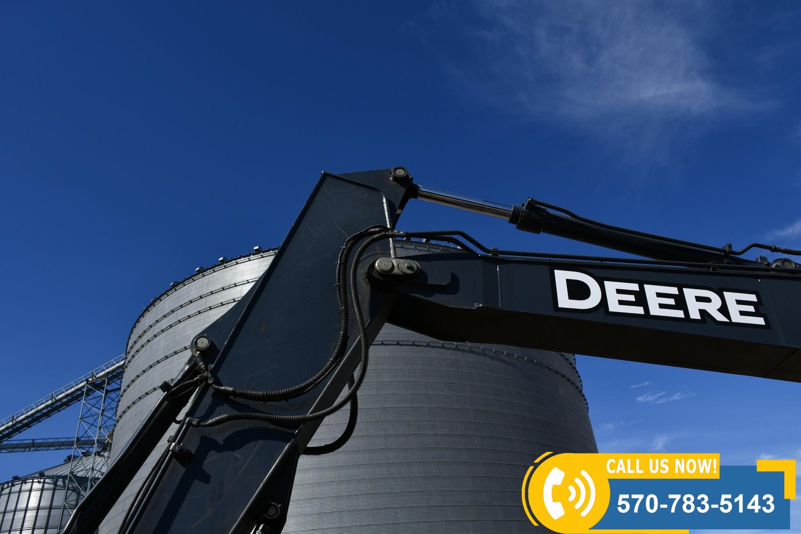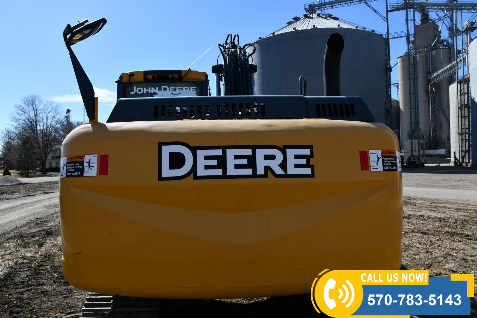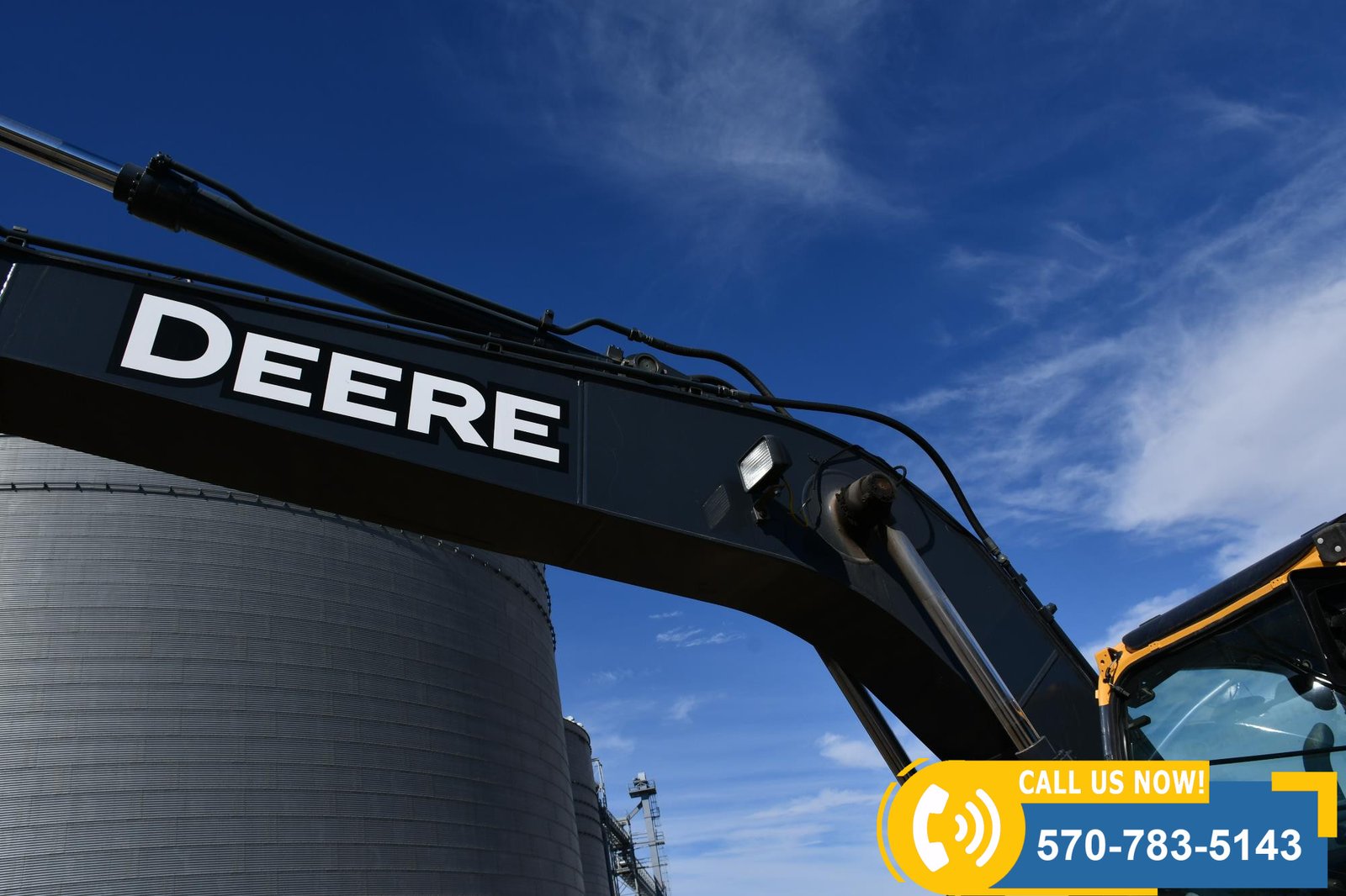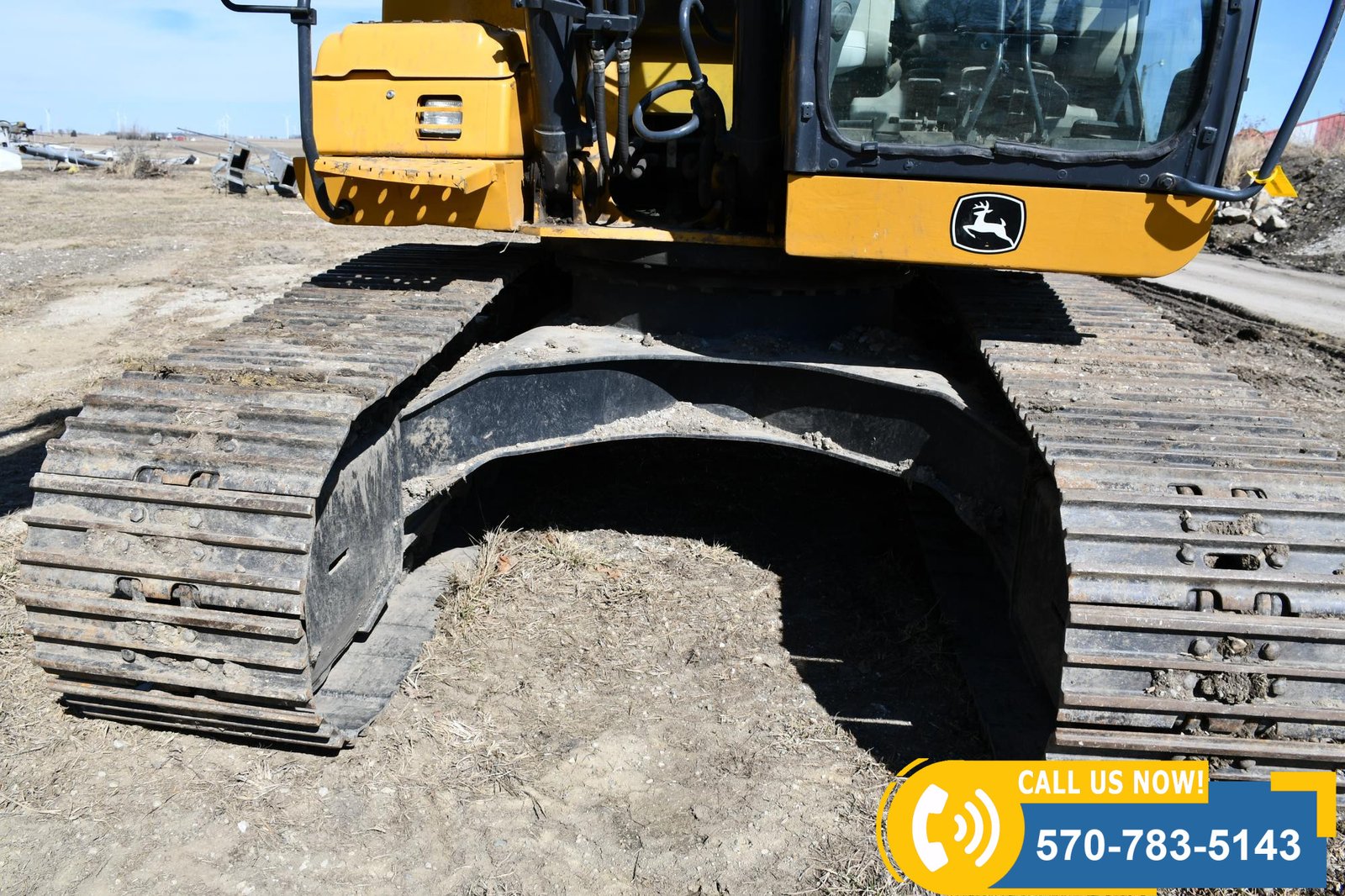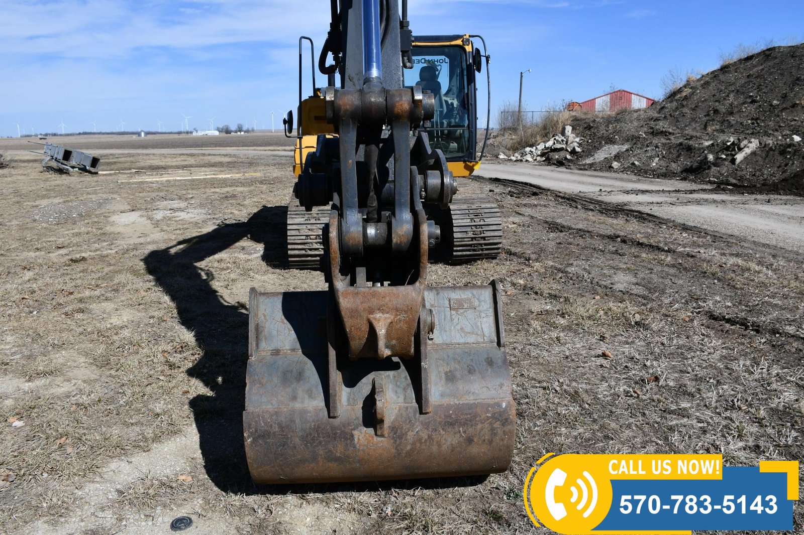 2015 John Deere 160G Excavator – Equipped with 48″ tooth bucket with thumb and 24″ triple grouser tracks for traction and stability.