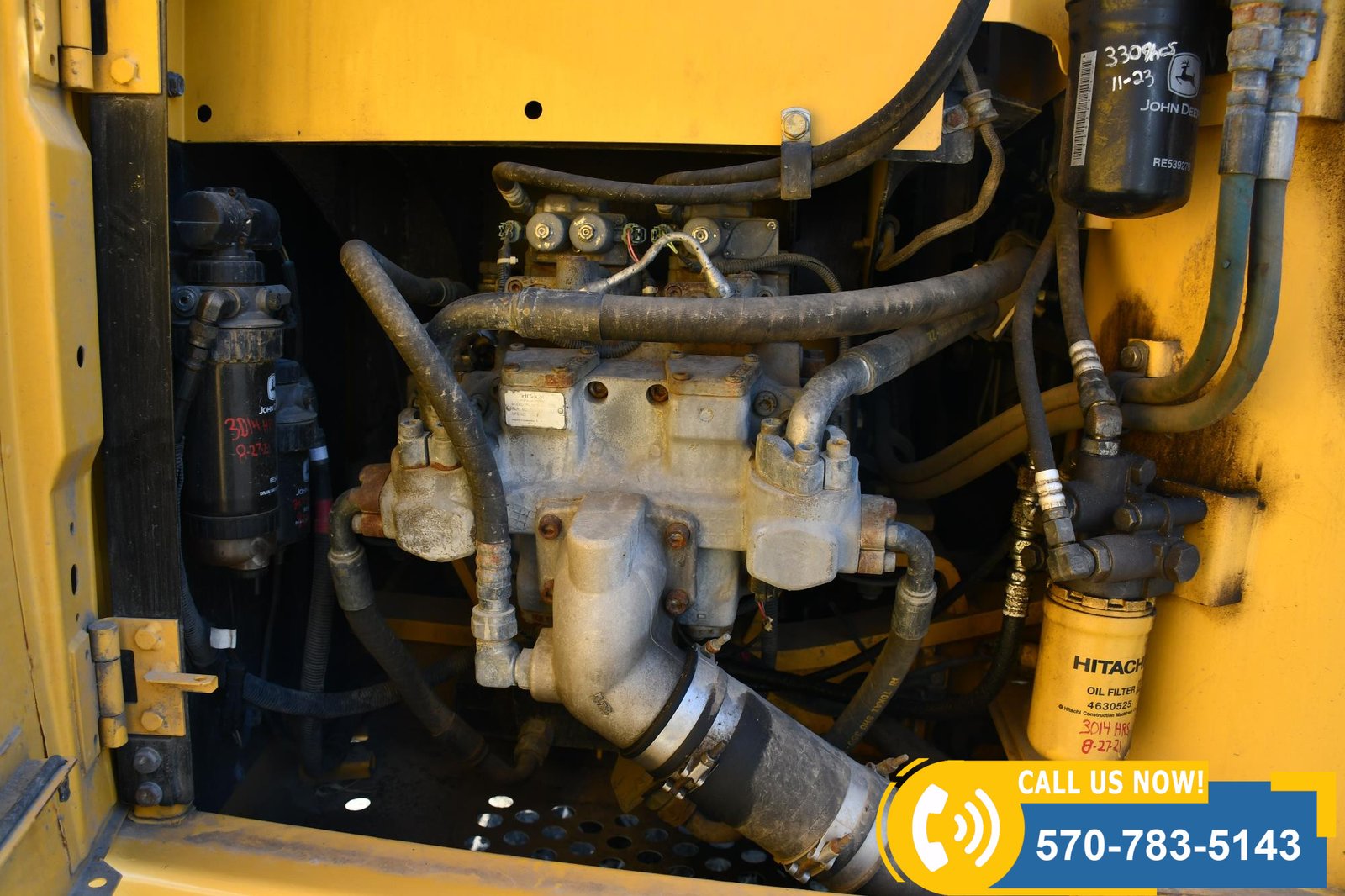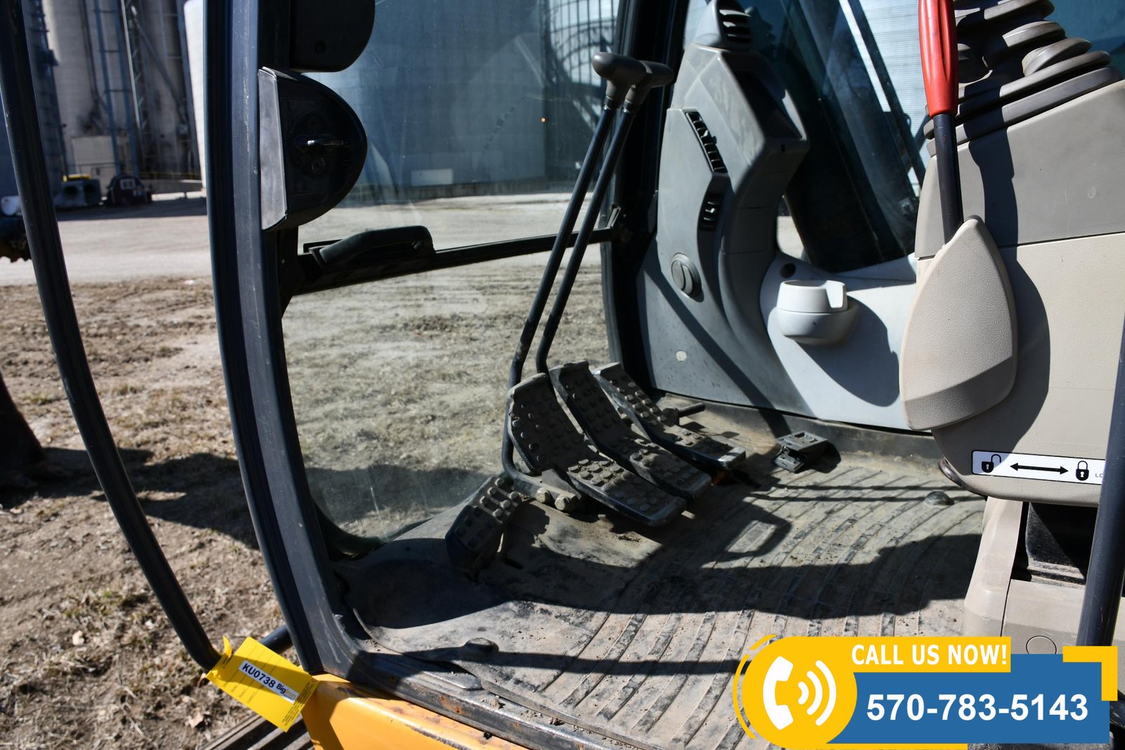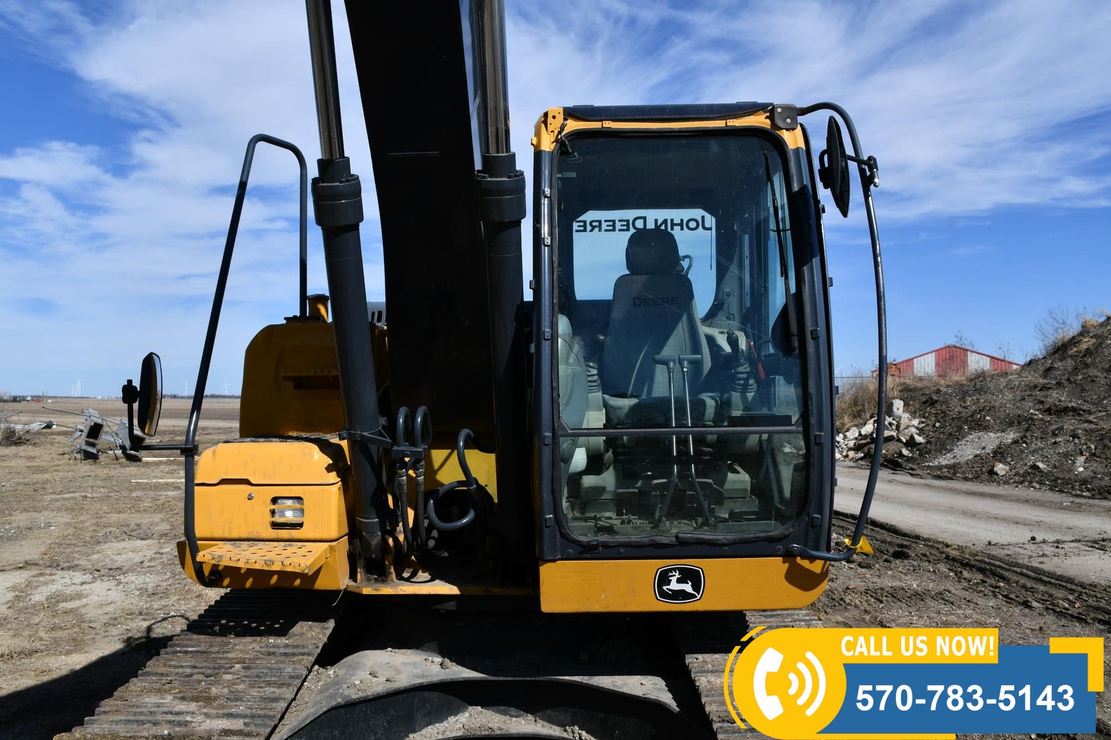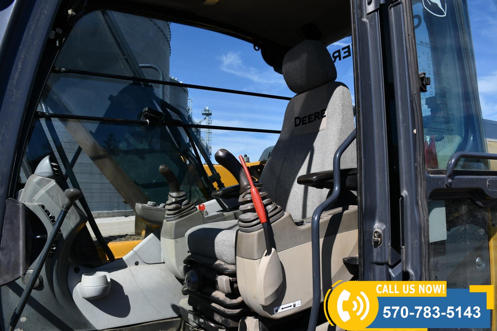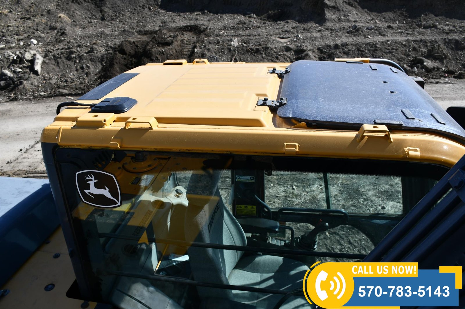 2015 John Deere 160G Excavator – Equipped with 48″ tooth bucket with thumb and 24″ triple grouser tracks for traction and stability.