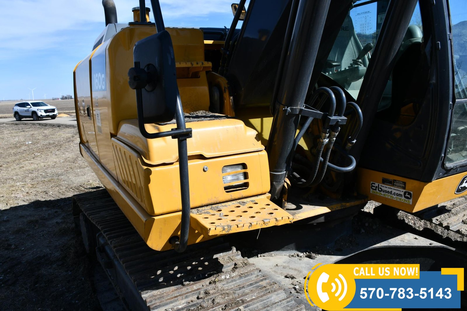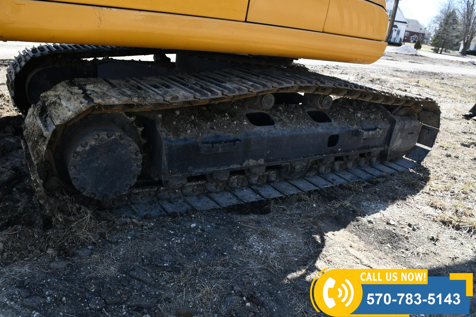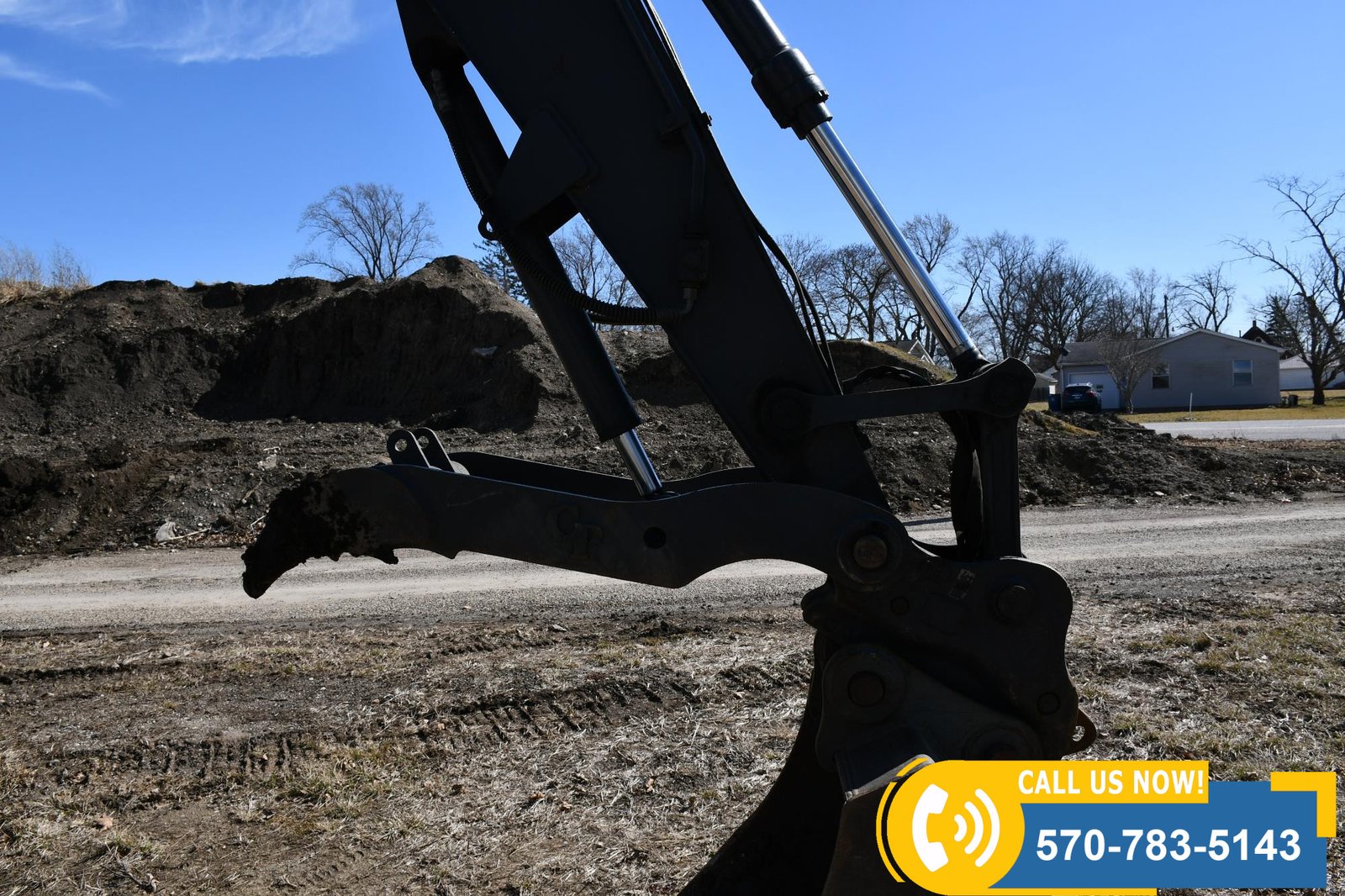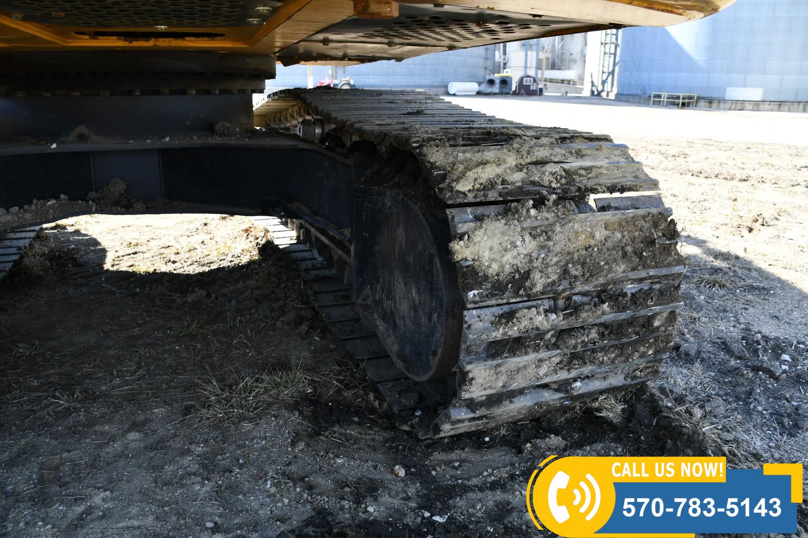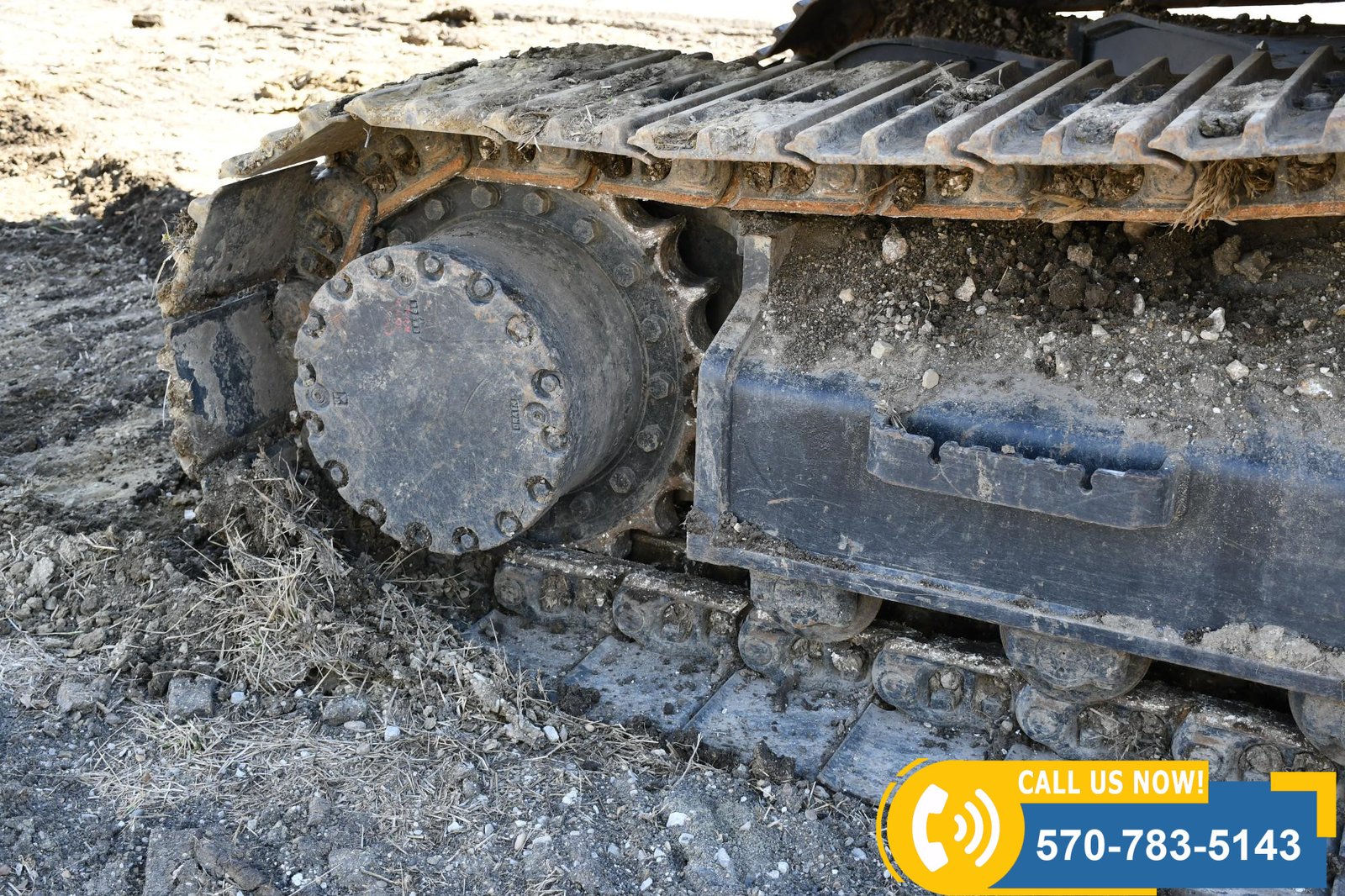 2015 John Deere 160G Excavator – Equipped with 48″ tooth bucket with thumb and 24″ triple grouser tracks for traction and stability.