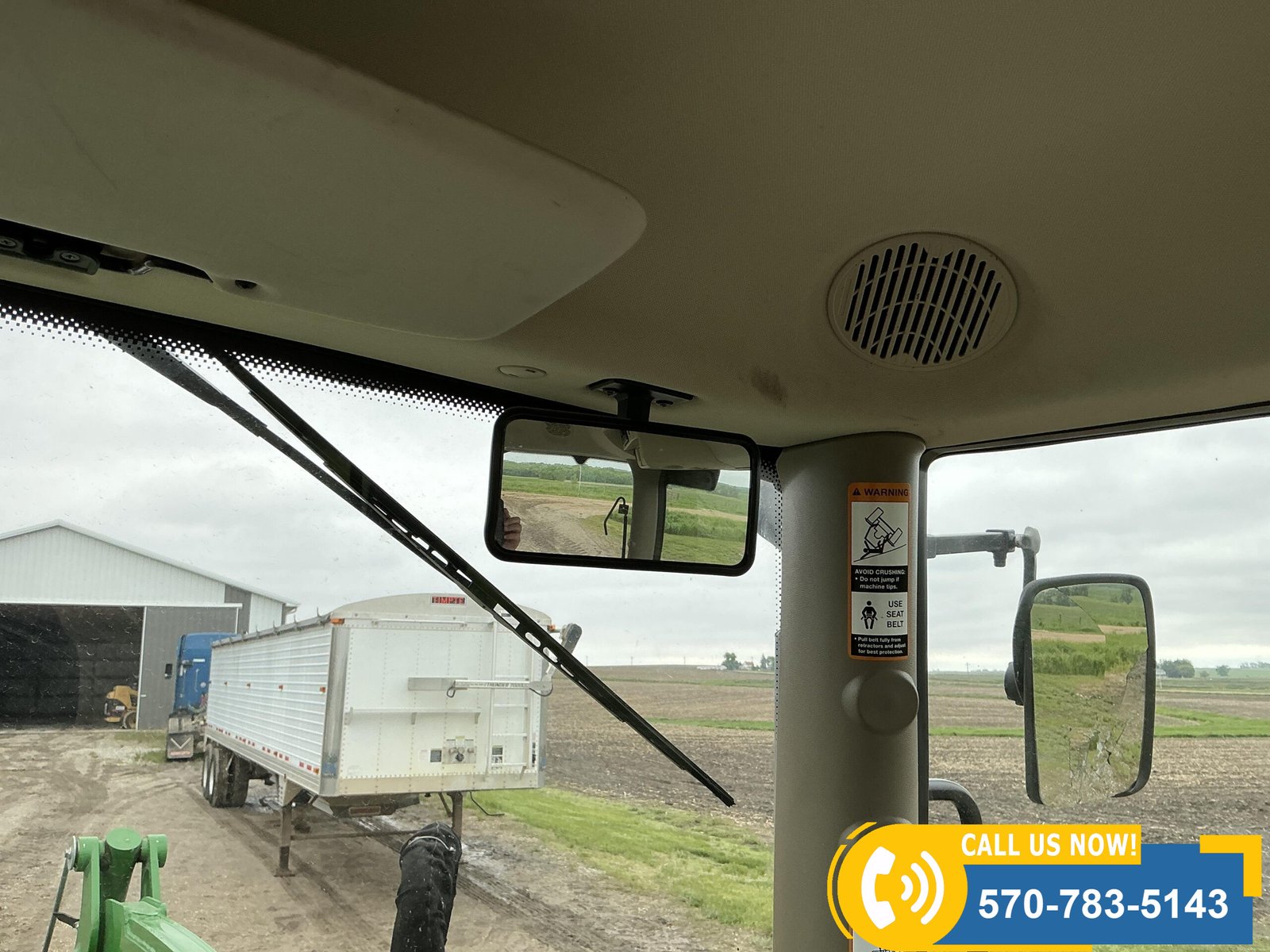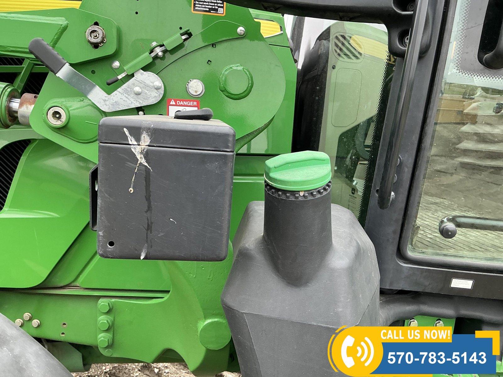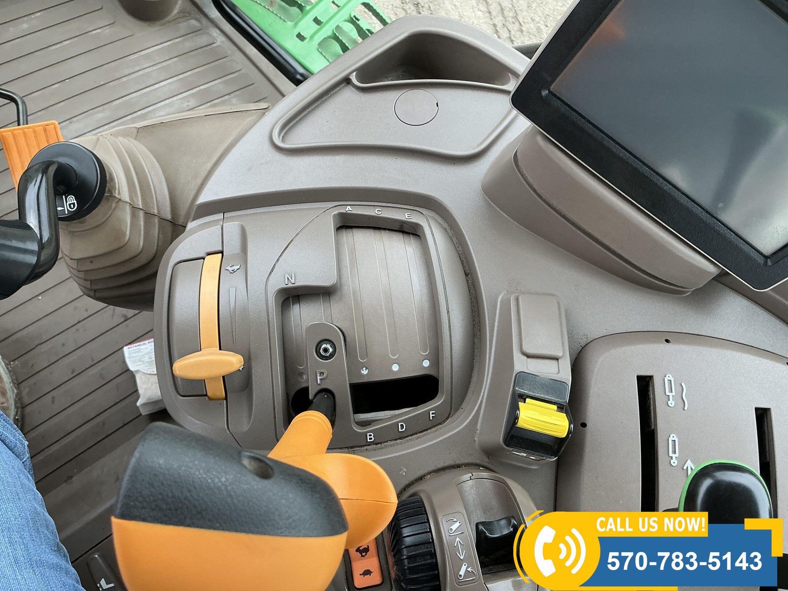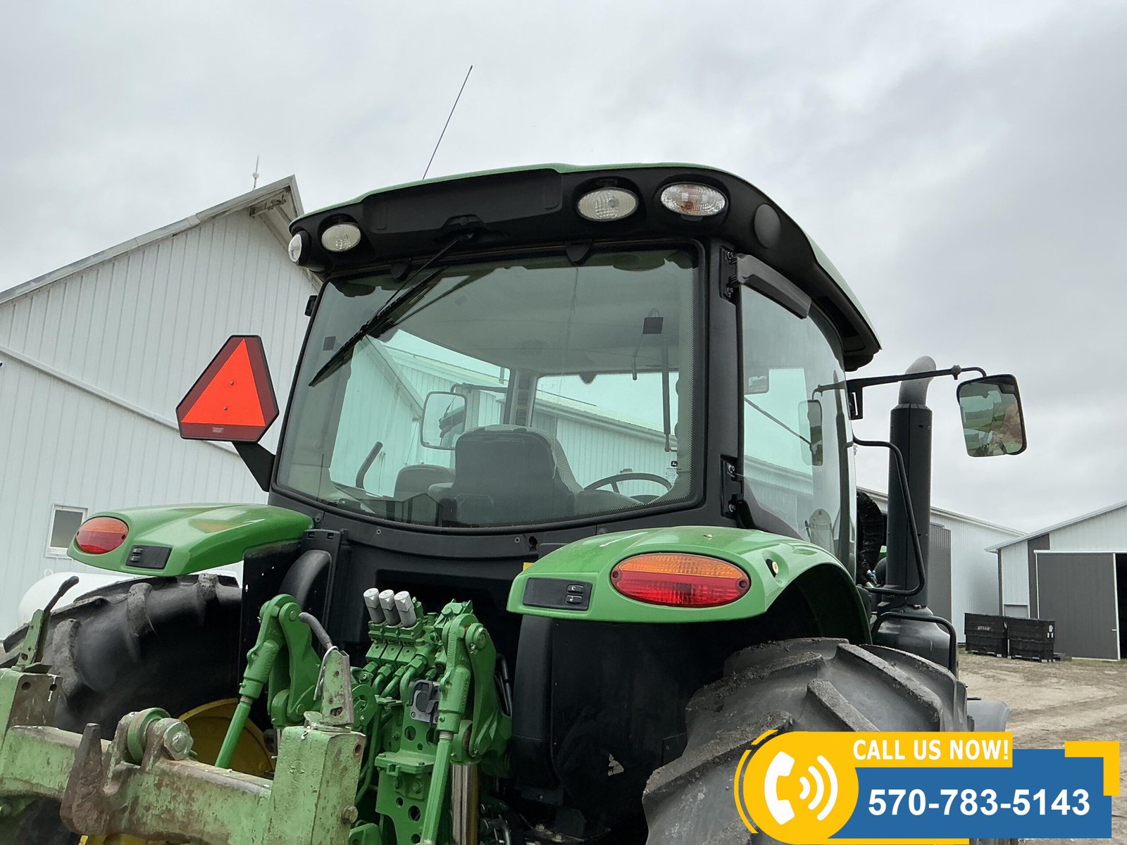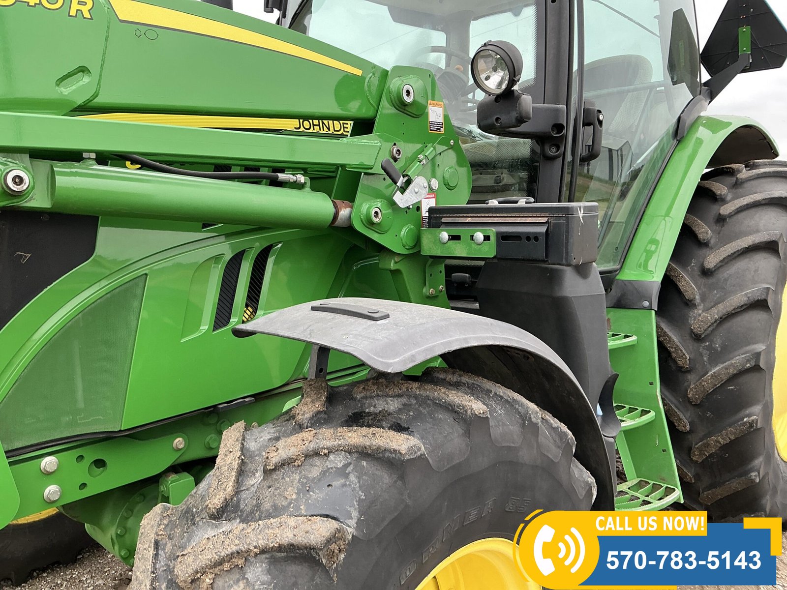 2016 John Deere 6130R MFWD Tractor w/ Loader – 2,563 hours showing, 130 HP John Deere 4.5L 4-cylinder turbo diesel with block heater and AutoQuad Plus Eco 24F/24R transmission. Equipped with 540/small 1000 PTO, rear PTO with fender control, 3 hydraulic outlets, rear fender 3-point hitch control, quick hitch, and differential lock. Features ComfortView cab, AutoTrac readiness, ISOBUS compatibility, hydrostatic power steering, and pressure/flow compensated hydraulics with 32.1 GPM pump flow. Rides on 380/85R24 front and 460/85R38 rear tires with front and rear fenders, rear outer wheel weights, and front/rear locking differential. Includes John Deere 640 quick attach loader with joystick control, single-point hydraulic hookup, front hood/grill guard, 163″ max lift height, and 3,832 lb lift capacity.