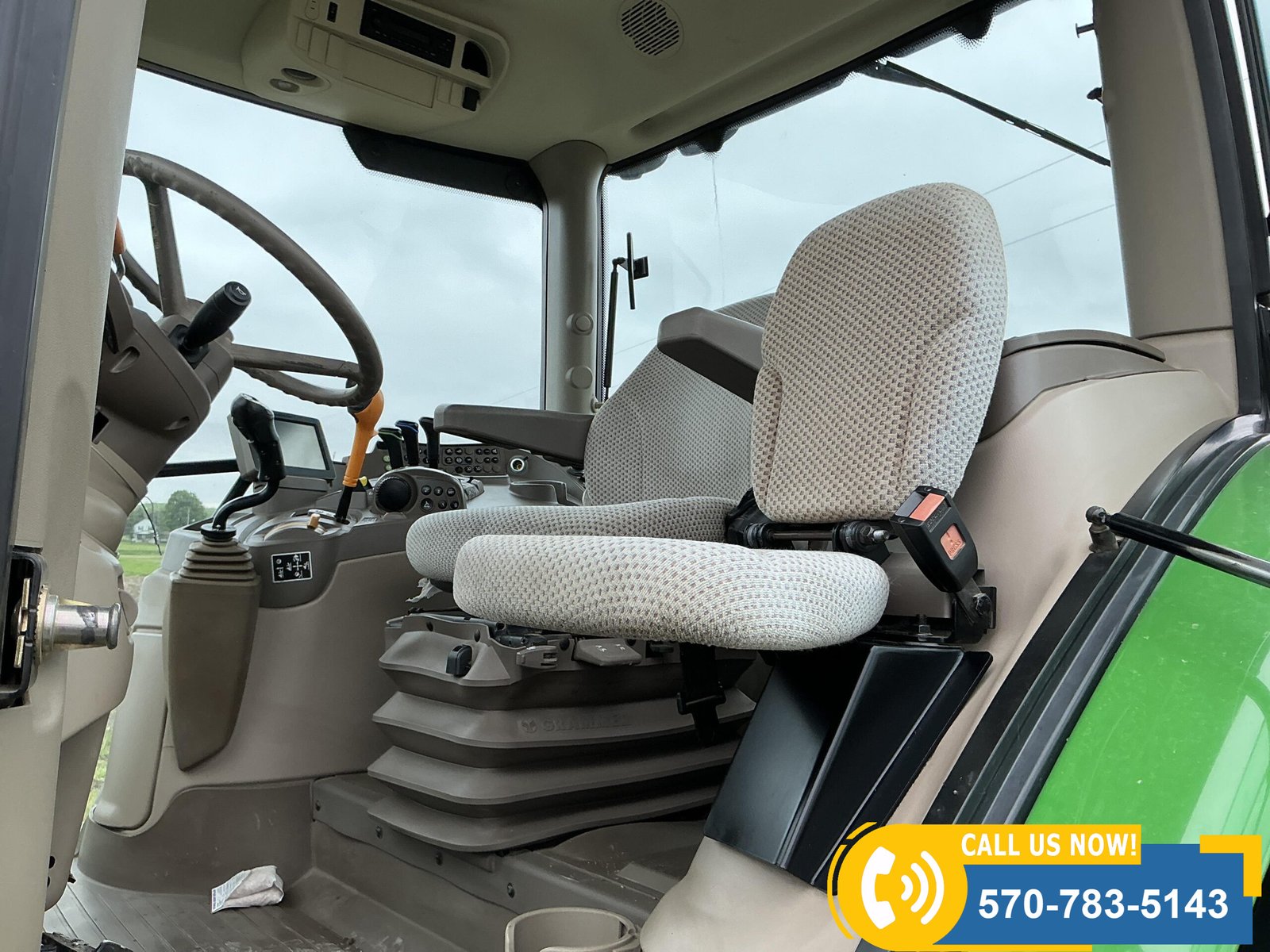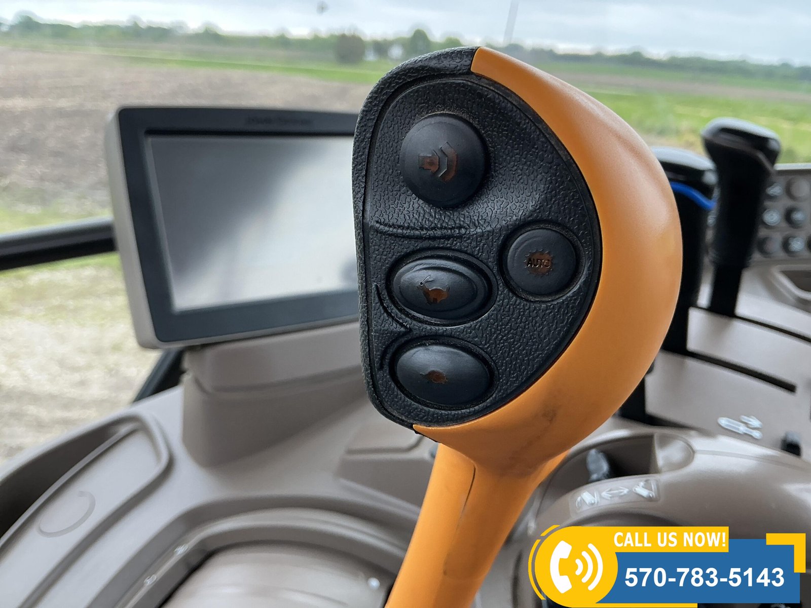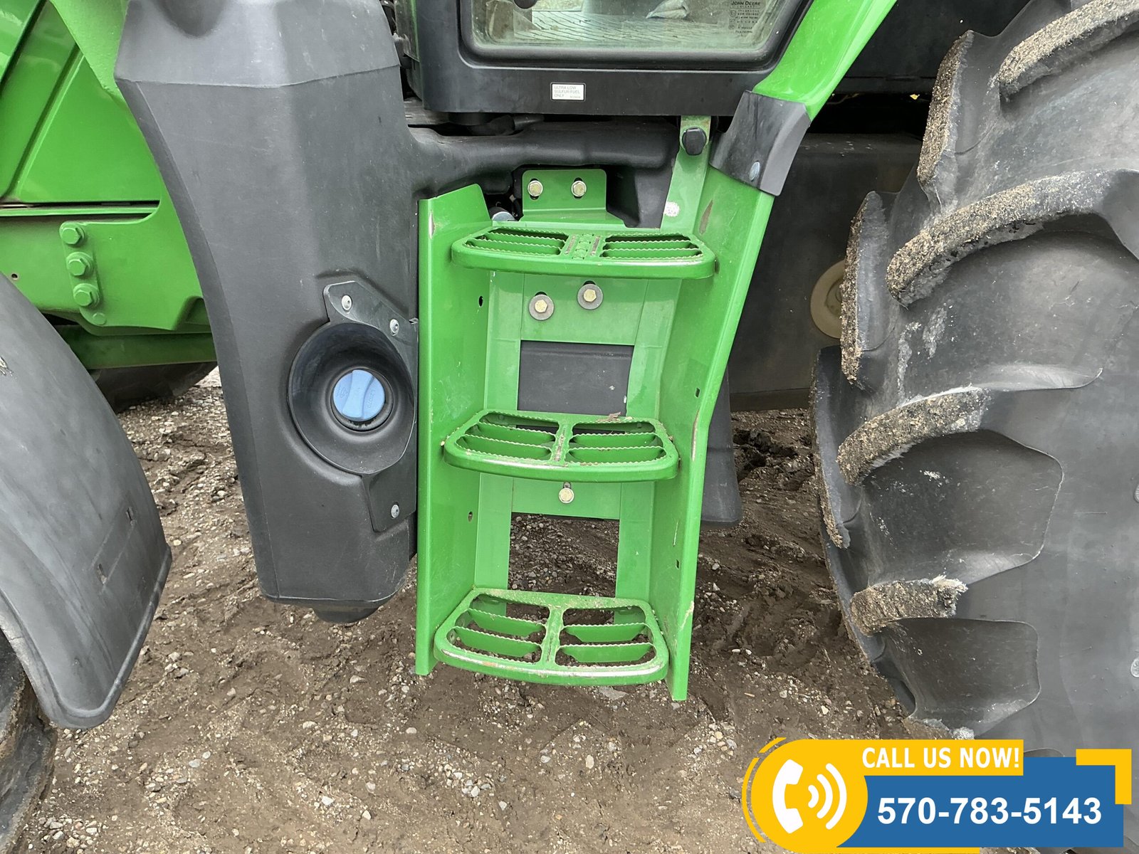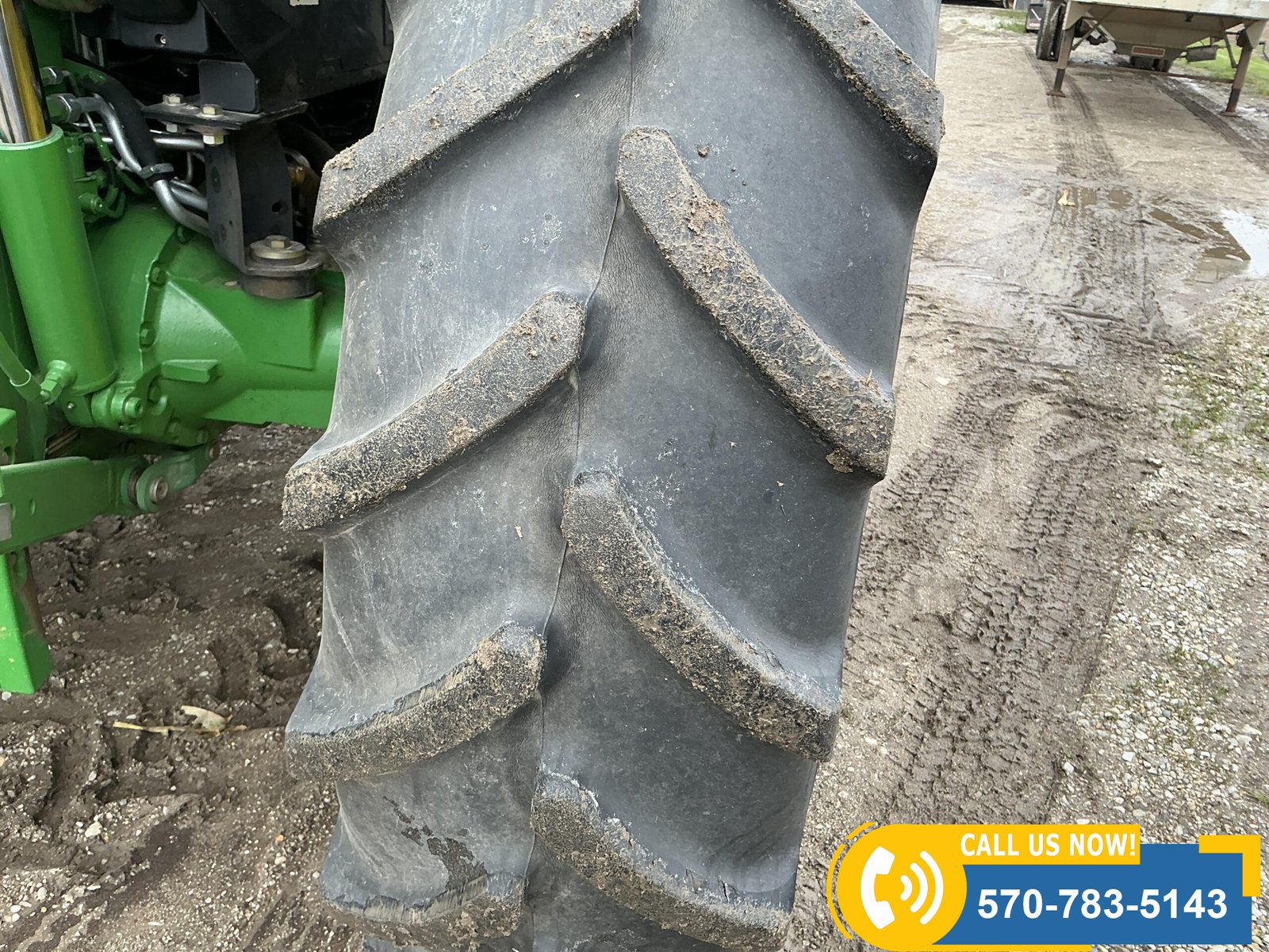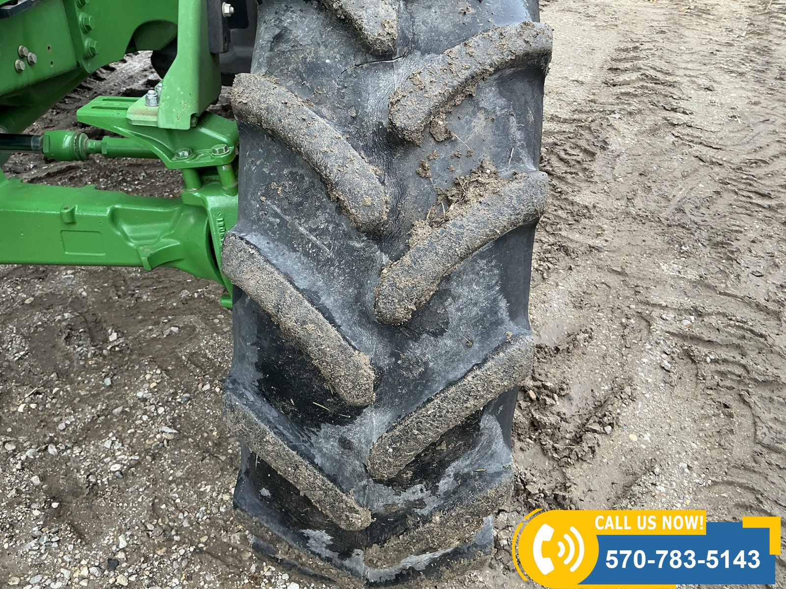 2016 John Deere 6130R MFWD Tractor w/ Loader – 2,563 hours showing, 130 HP John Deere 4.5L 4-cylinder turbo diesel with block heater and AutoQuad Plus Eco 24F/24R transmission. Equipped with 540/small 1000 PTO, rear PTO with fender control, 3 hydraulic outlets, rear fender 3-point hitch control, quick hitch, and differential lock. Features ComfortView cab, AutoTrac readiness, ISOBUS compatibility, hydrostatic power steering, and pressure/flow compensated hydraulics with 32.1 GPM pump flow. Rides on 380/85R24 front and 460/85R38 rear tires with front and rear fenders, rear outer wheel weights, and front/rear locking differential. Includes John Deere 640 quick attach loader with joystick control, single-point hydraulic hookup, front hood/grill guard, 163″ max lift height, and 3,832 lb lift capacity.