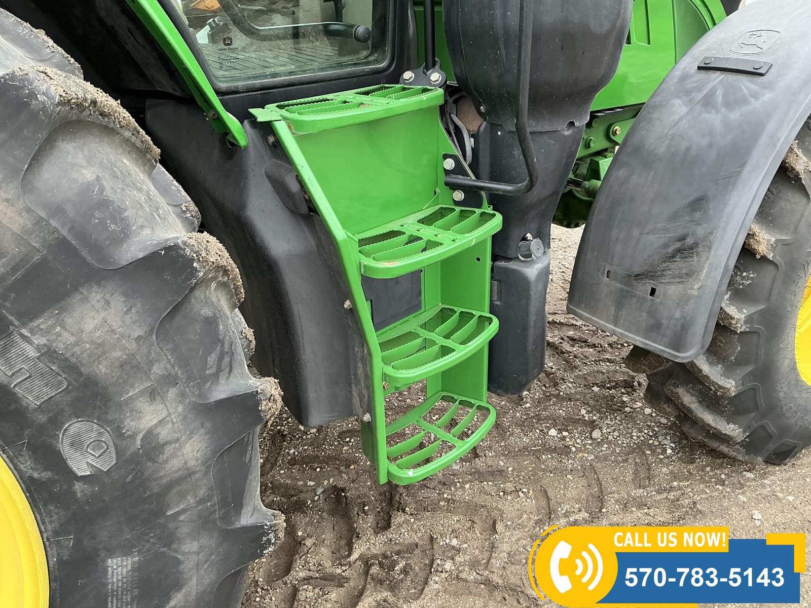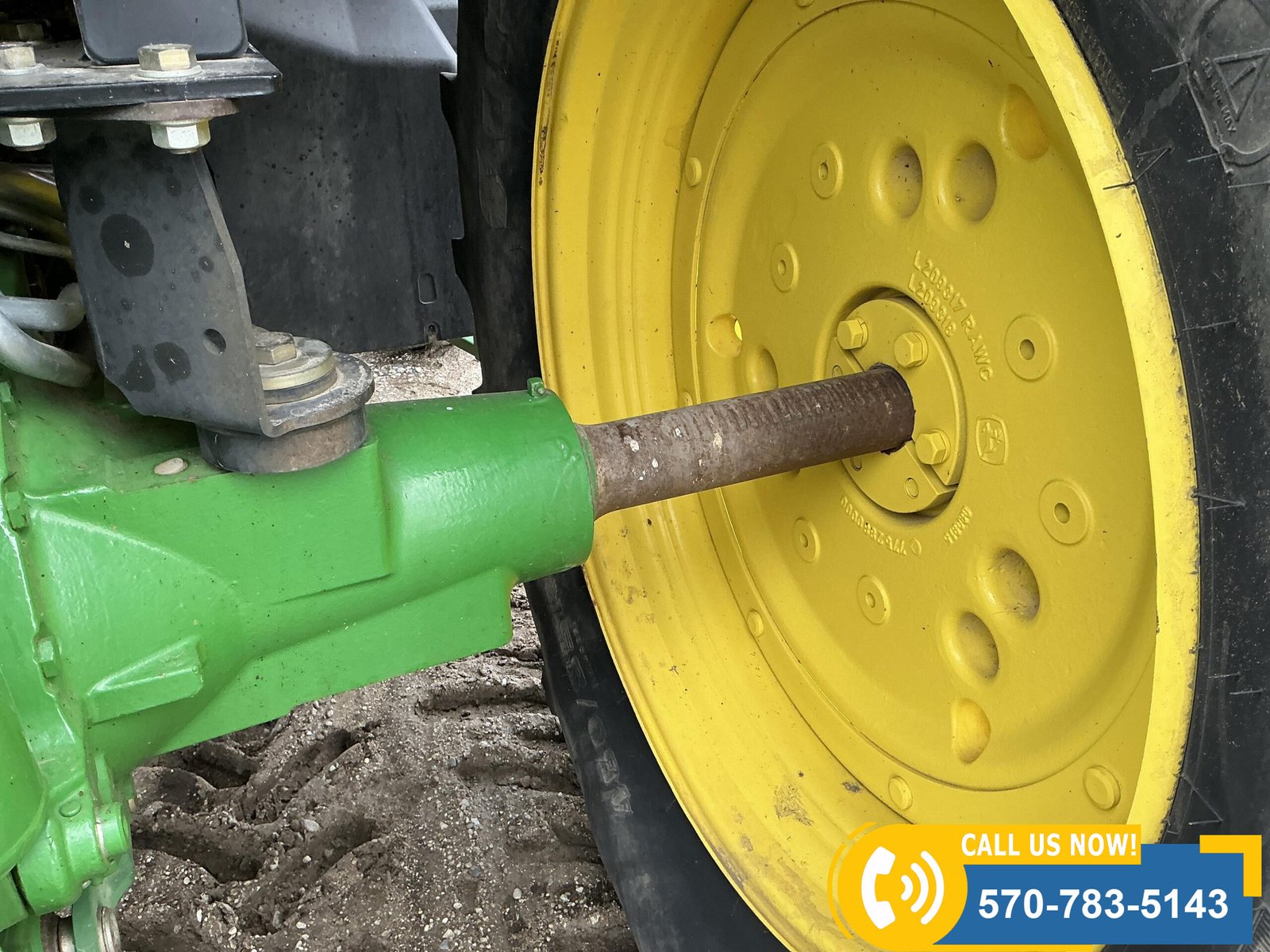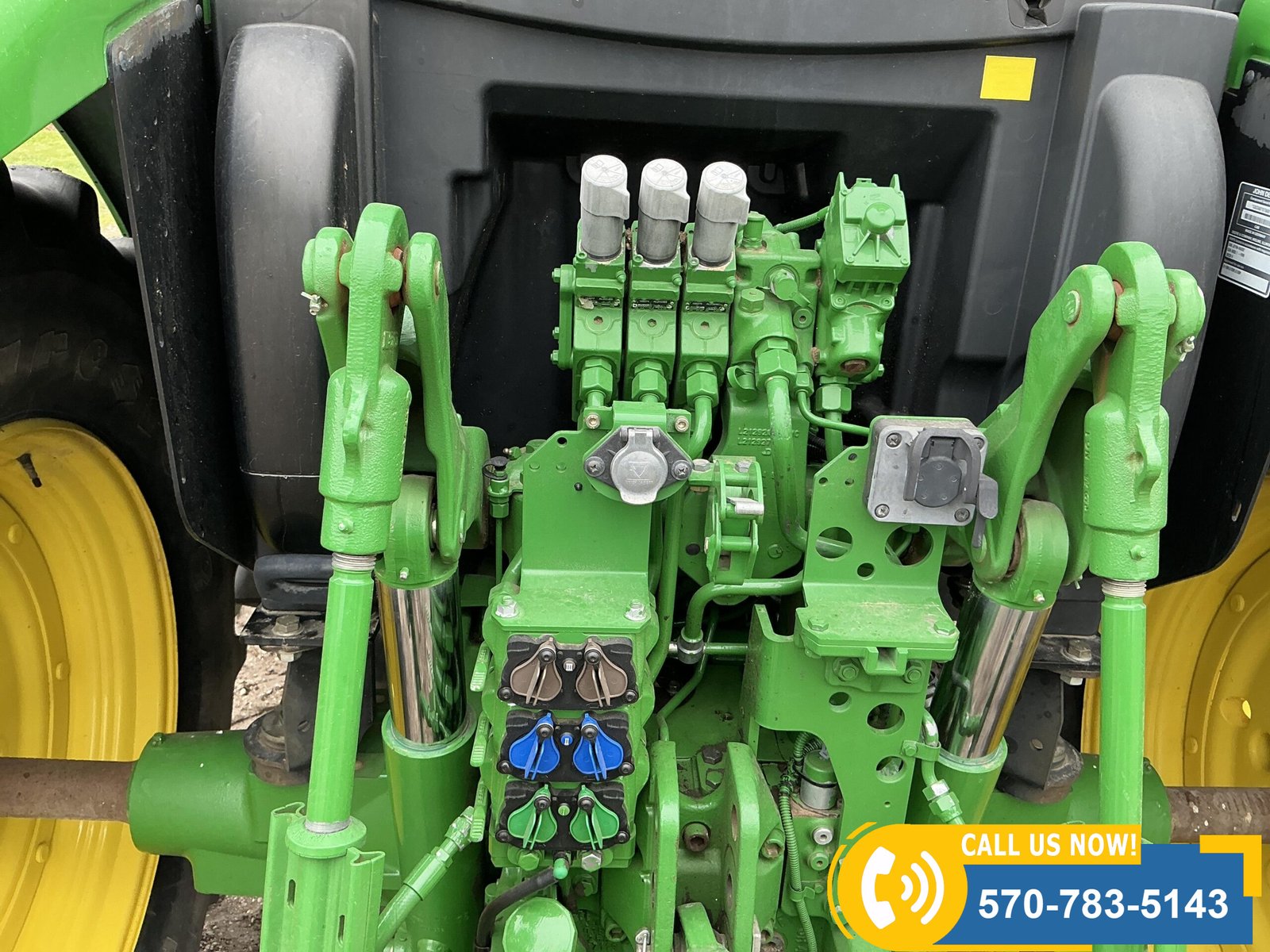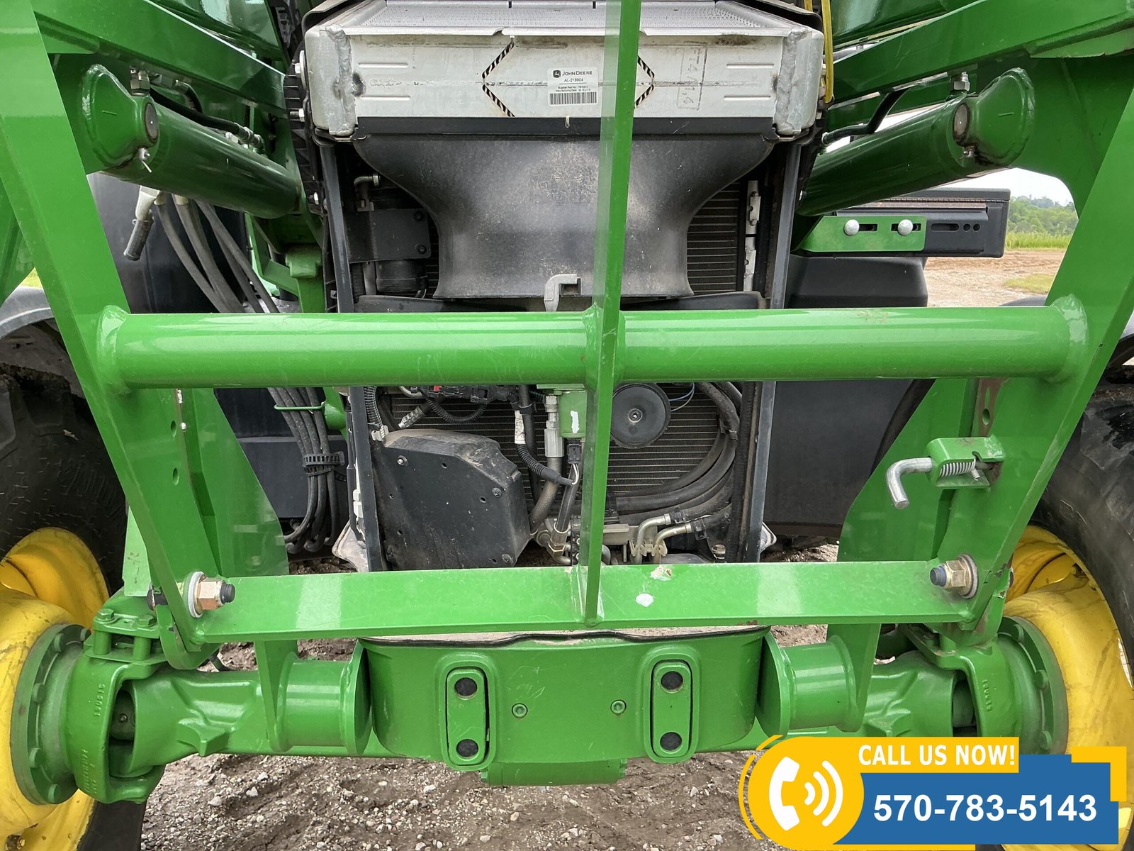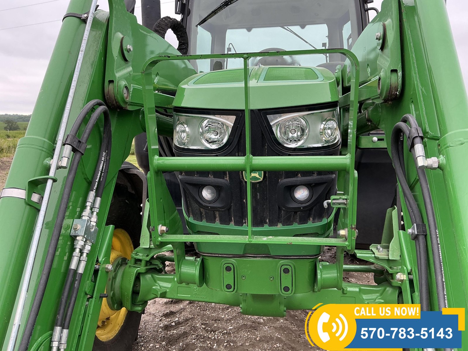 2016 John Deere 6130R MFWD Tractor w/ Loader – 2,563 hours showing, 130 HP John Deere 4.5L 4-cylinder turbo diesel with block heater and AutoQuad Plus Eco 24F/24R transmission. Equipped with 540/small 1000 PTO, rear PTO with fender control, 3 hydraulic outlets, rear fender 3-point hitch control, quick hitch, and differential lock. Features ComfortView cab, AutoTrac readiness, ISOBUS compatibility, hydrostatic power steering, and pressure/flow compensated hydraulics with 32.1 GPM pump flow. Rides on 380/85R24 front and 460/85R38 rear tires with front and rear fenders, rear outer wheel weights, and front/rear locking differential. Includes John Deere 640 quick attach loader with joystick control, single-point hydraulic hookup, front hood/grill guard, 163″ max lift height, and 3,832 lb lift capacity.