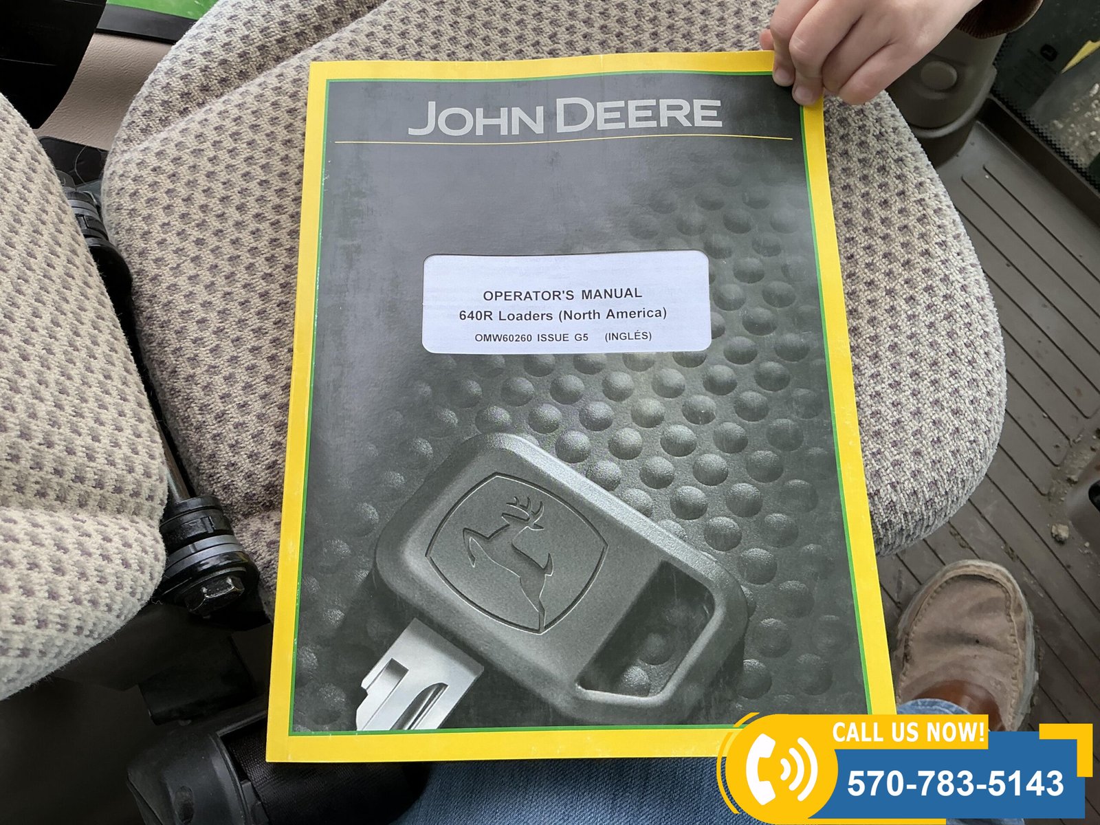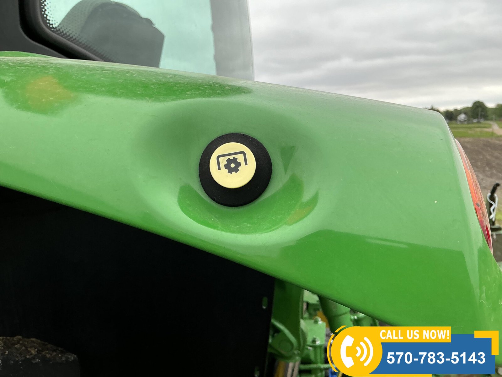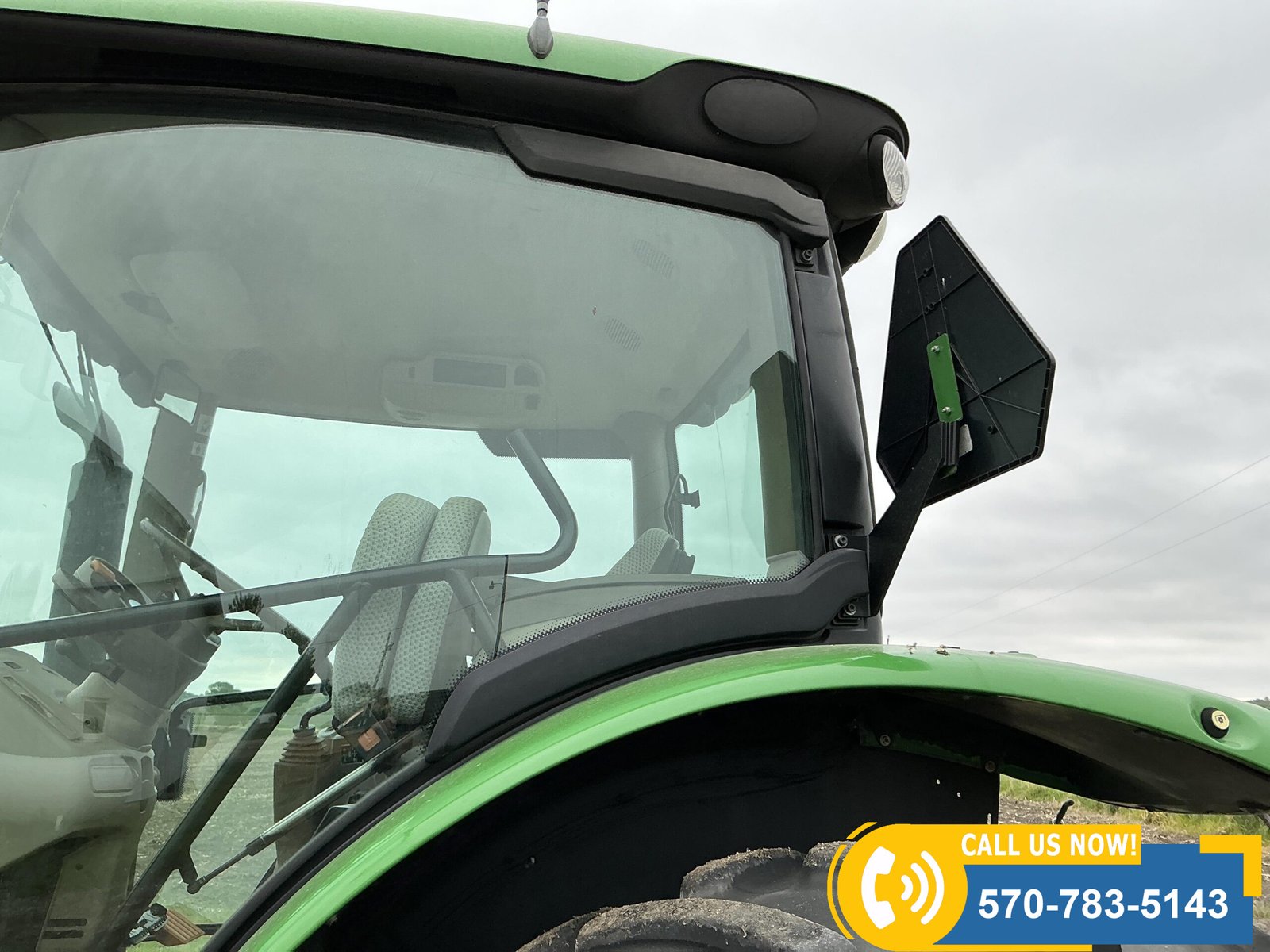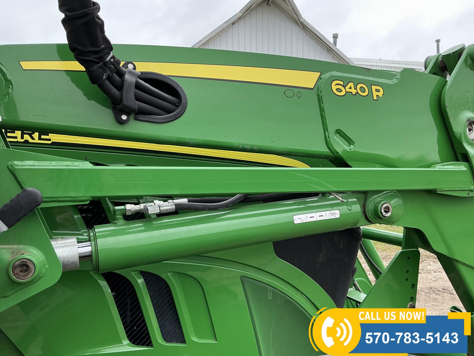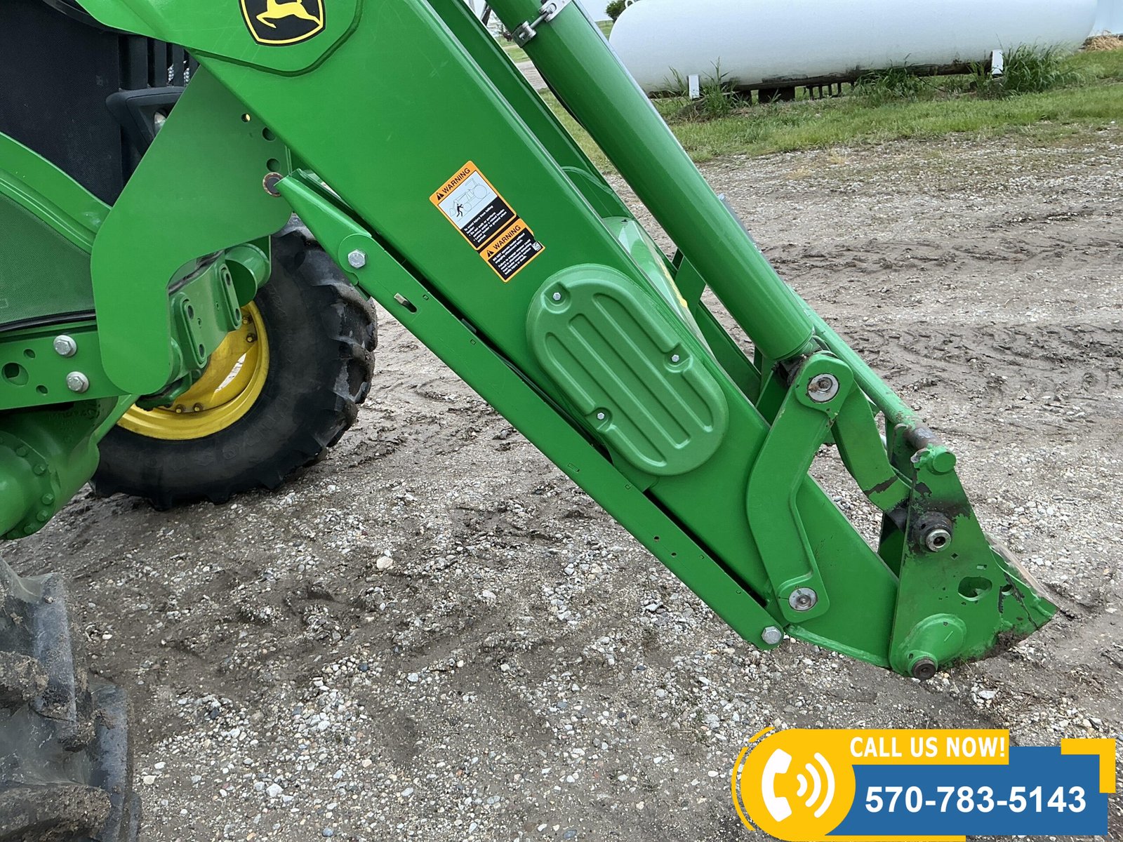 2016 John Deere 6130R MFWD Tractor w/ Loader – 2,563 hours showing, 130 HP John Deere 4.5L 4-cylinder turbo diesel with block heater and AutoQuad Plus Eco 24F/24R transmission. Equipped with 540/small 1000 PTO, rear PTO with fender control, 3 hydraulic outlets, rear fender 3-point hitch control, quick hitch, and differential lock. Features ComfortView cab, AutoTrac readiness, ISOBUS compatibility, hydrostatic power steering, and pressure/flow compensated hydraulics with 32.1 GPM pump flow. Rides on 380/85R24 front and 460/85R38 rear tires with front and rear fenders, rear outer wheel weights, and front/rear locking differential. Includes John Deere 640 quick attach loader with joystick control, single-point hydraulic hookup, front hood/grill guard, 163″ max lift height, and 3,832 lb lift capacity.