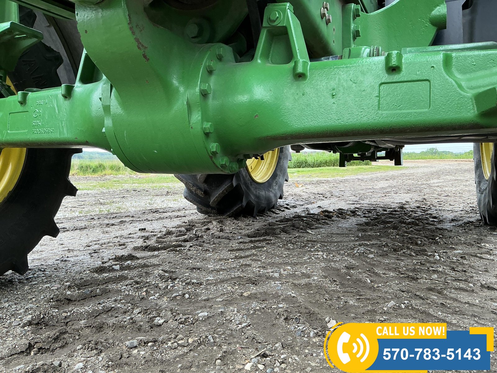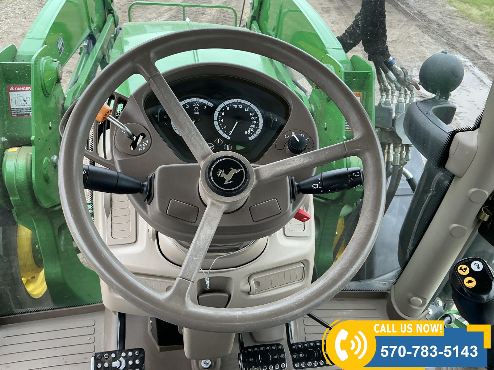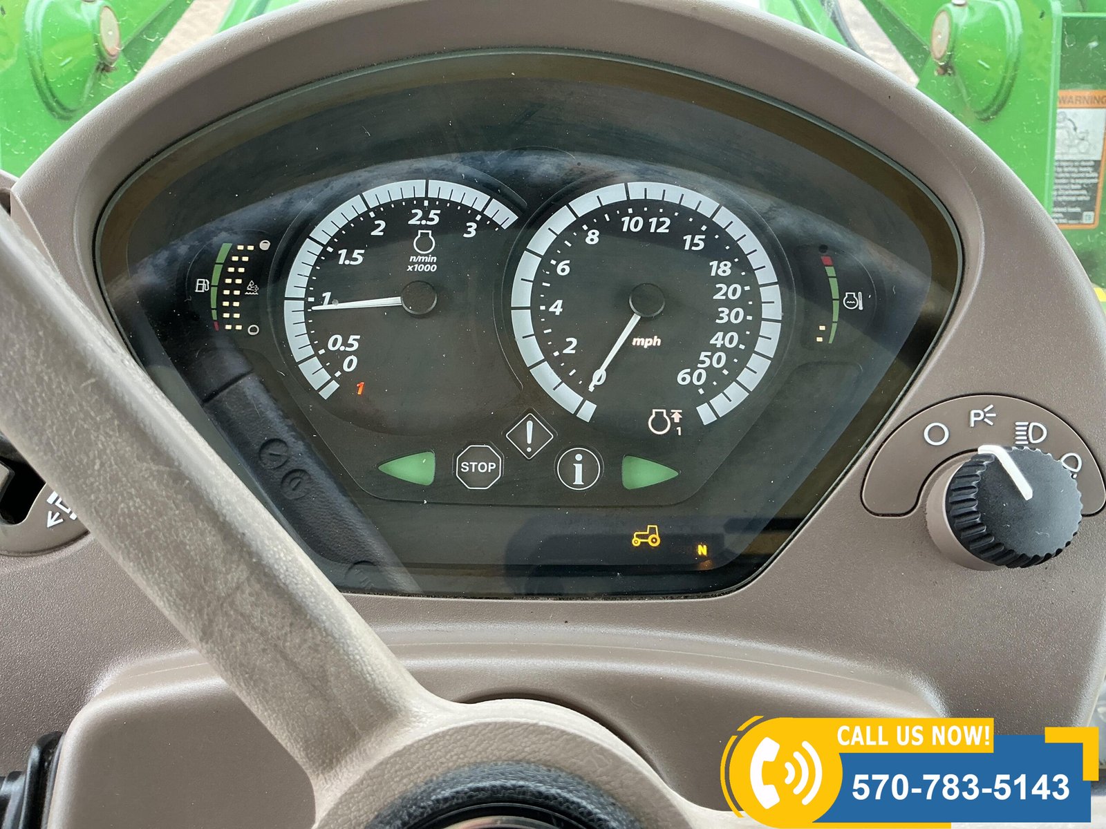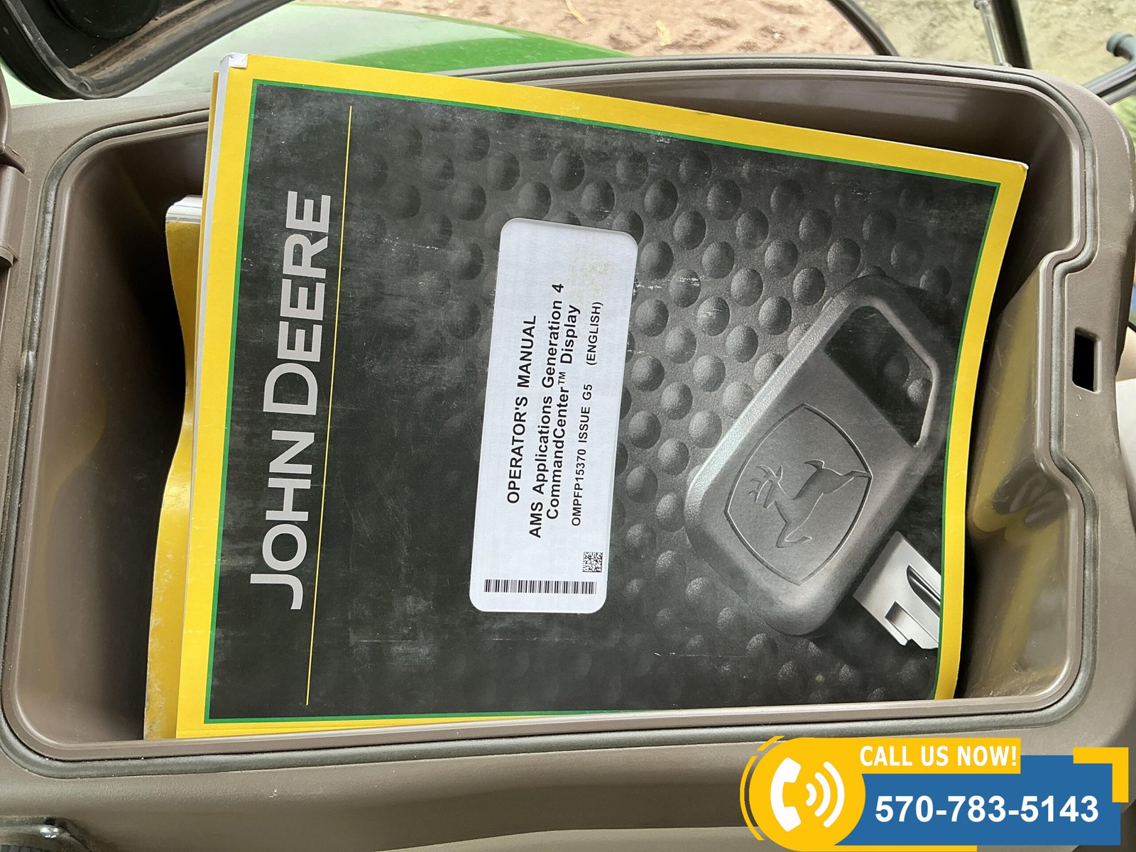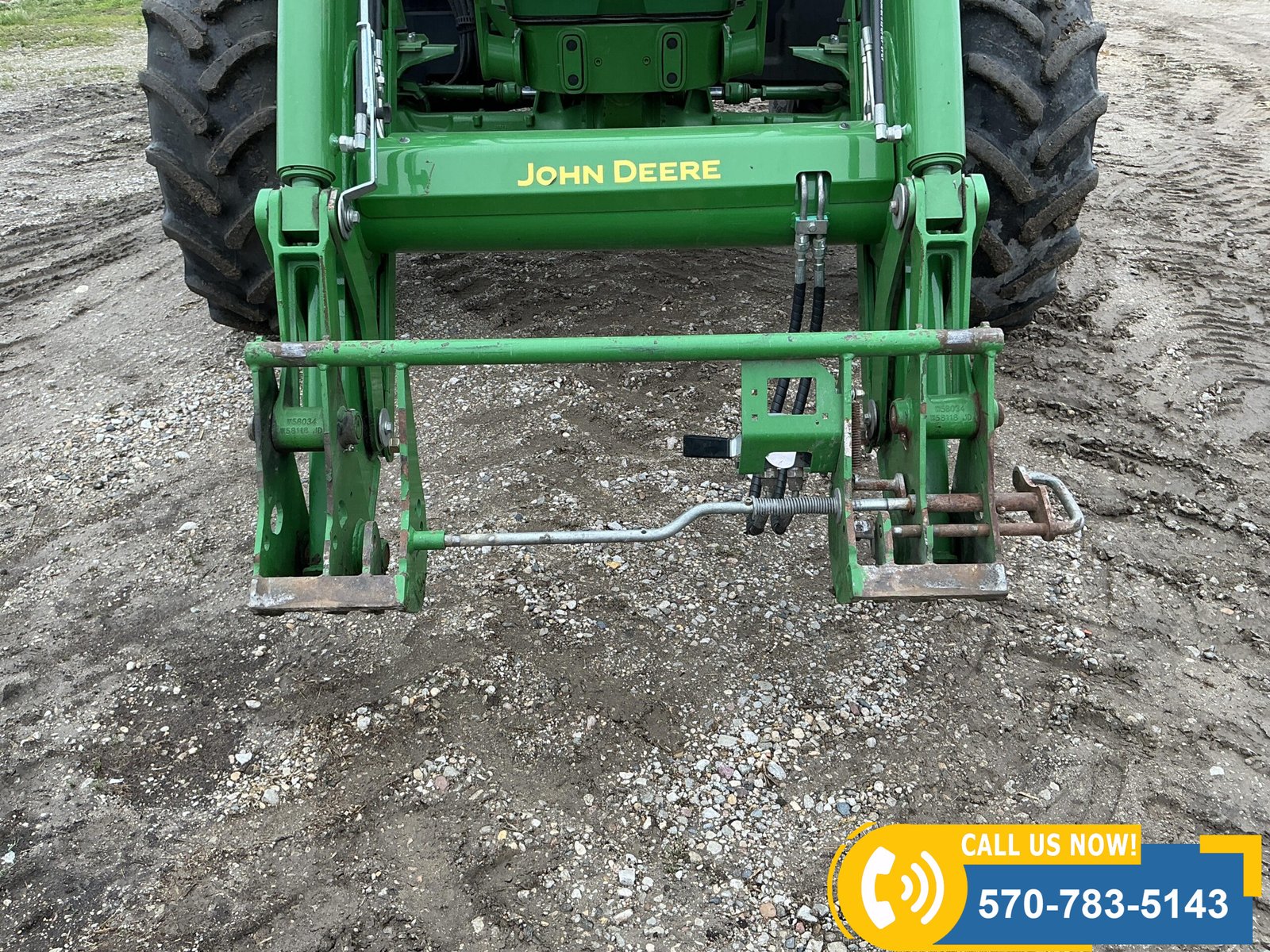 2016 John Deere 6130R MFWD Tractor w/ Loader – 2,563 hours showing, 130 HP John Deere 4.5L 4-cylinder turbo diesel with block heater and AutoQuad Plus Eco 24F/24R transmission. Equipped with 540/small 1000 PTO, rear PTO with fender control, 3 hydraulic outlets, rear fender 3-point hitch control, quick hitch, and differential lock. Features ComfortView cab, AutoTrac readiness, ISOBUS compatibility, hydrostatic power steering, and pressure/flow compensated hydraulics with 32.1 GPM pump flow. Rides on 380/85R24 front and 460/85R38 rear tires with front and rear fenders, rear outer wheel weights, and front/rear locking differential. Includes John Deere 640 quick attach loader with joystick control, single-point hydraulic hookup, front hood/grill guard, 163″ max lift height, and 3,832 lb lift capacity.