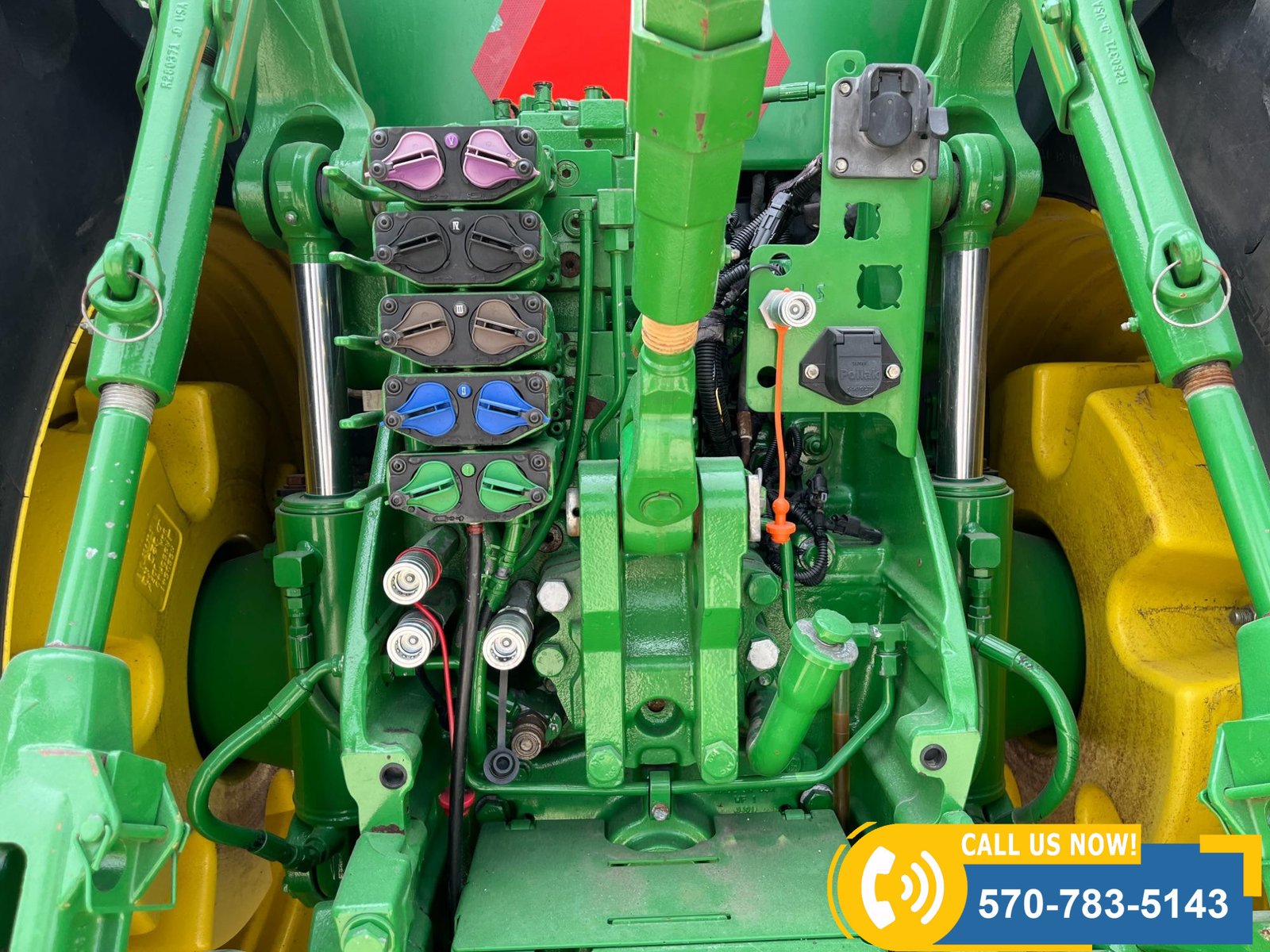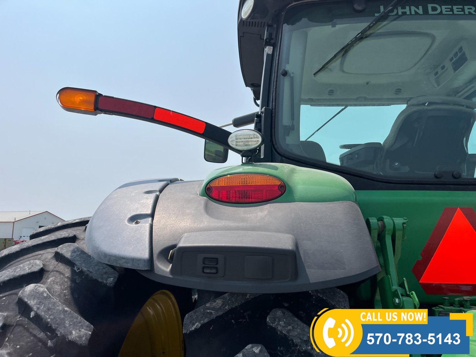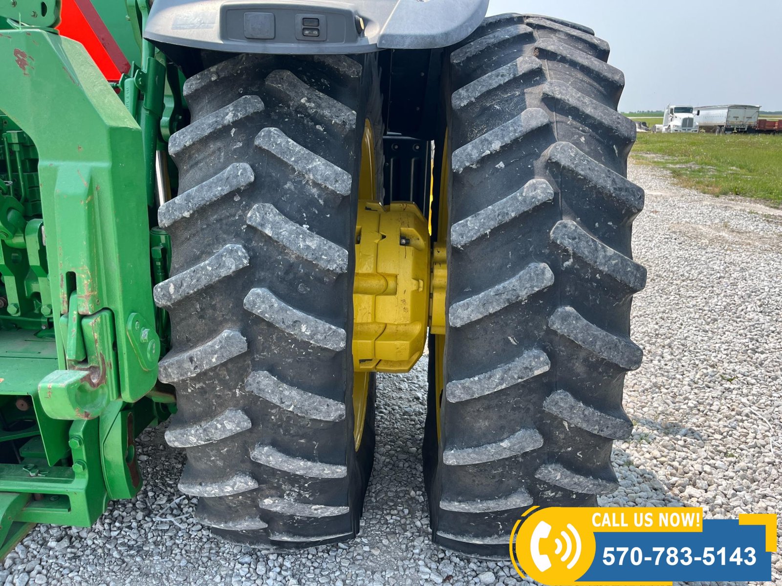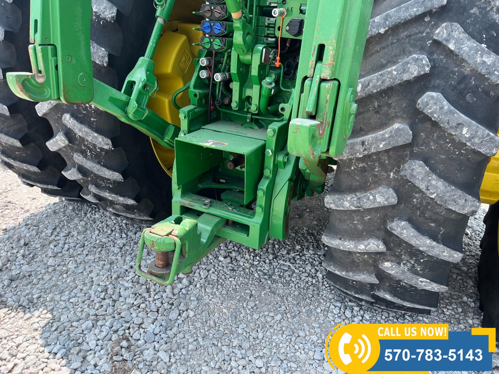 2016 John Deere 8345R MFWD Tractor – 3,453 hours showing, equipped with ILS front suspension, IVT transmission, and premium cab with leather interior. Features 5 hydraulic outlets, 84 GPM dual hydraulic pumps, 1000 PTO, and CommandCenter 10″ display with activations. Rides on 480/80R50 rear duals and 420/85R34 front duals. Includes front and rear fenders, front and rear weights, and premium LED lighting.