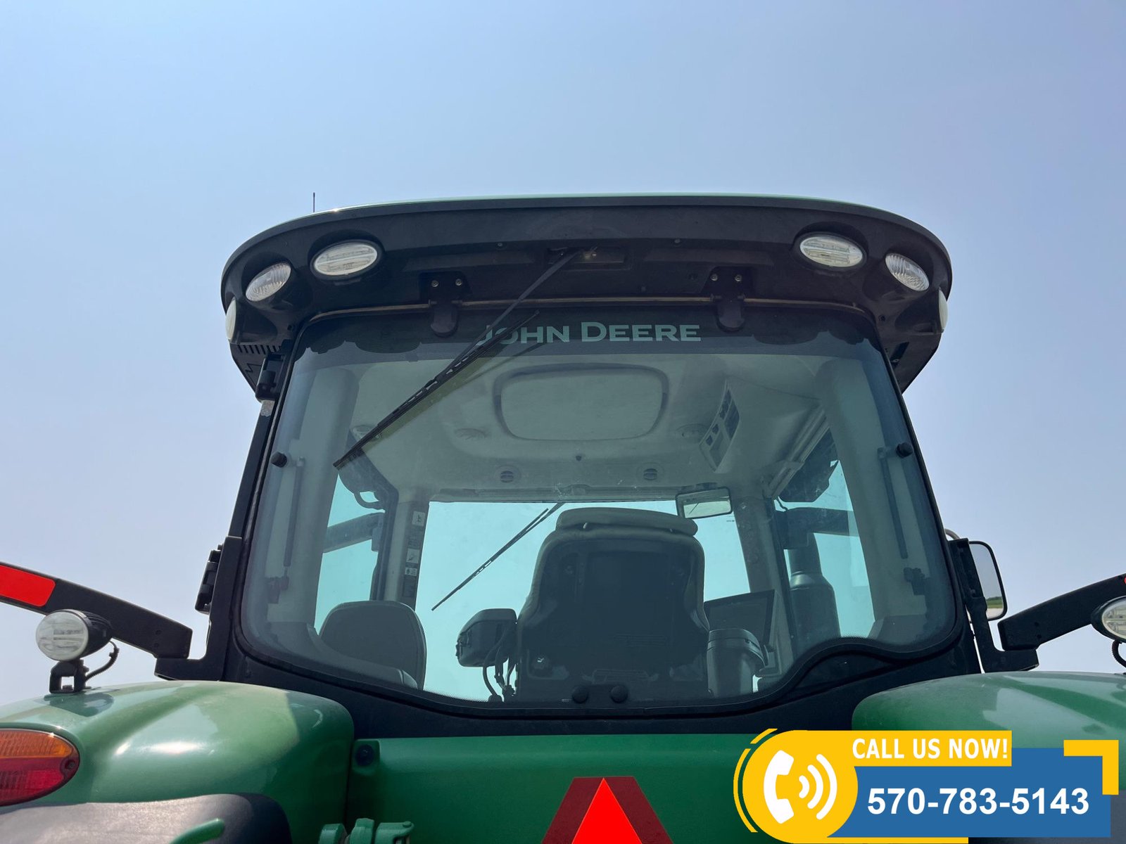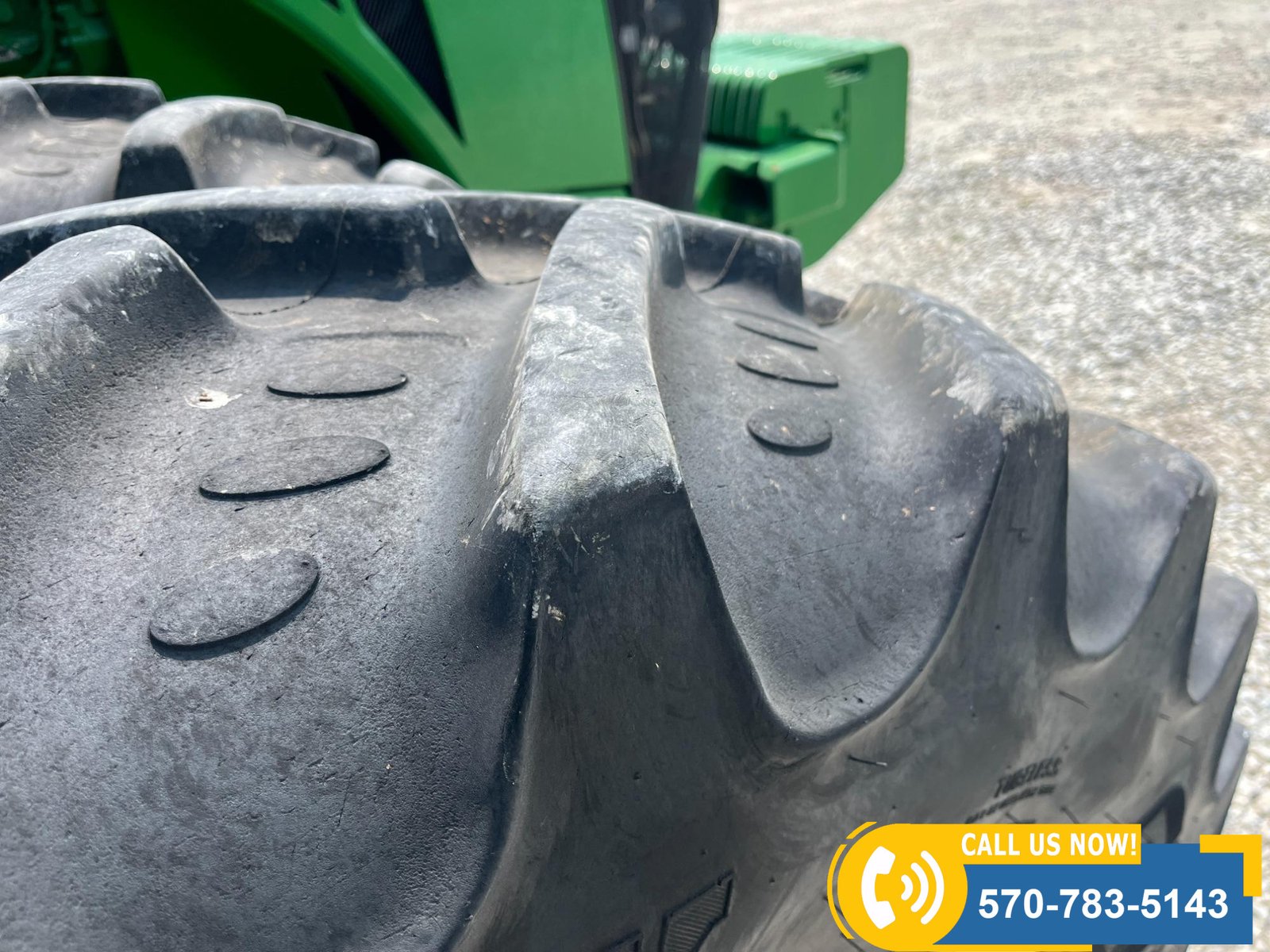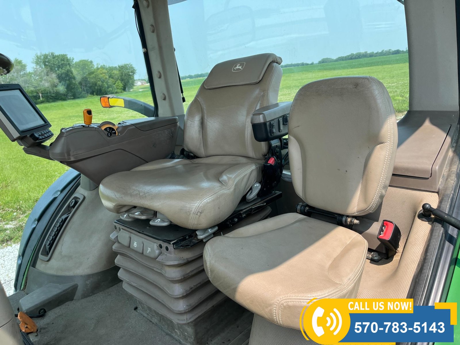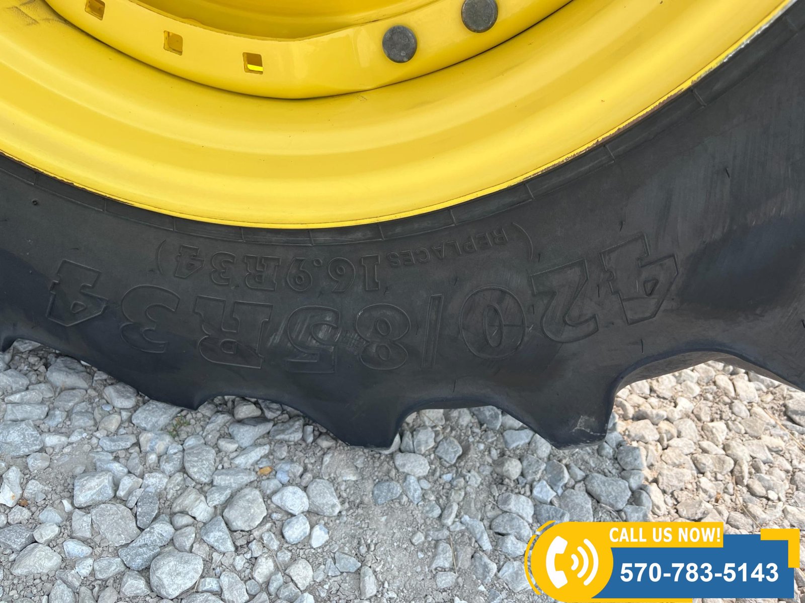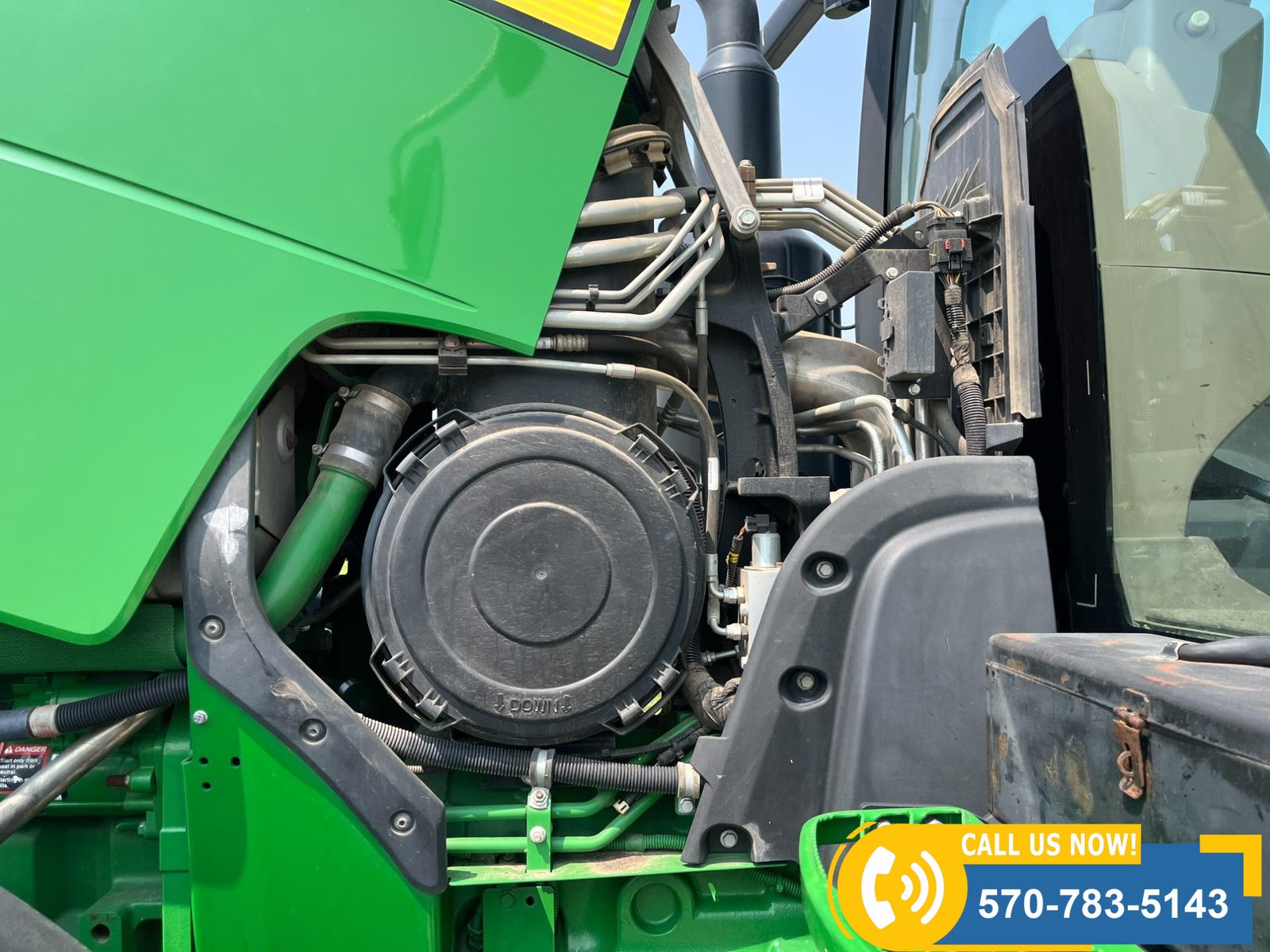 2016 John Deere 8345R MFWD Tractor – 3,453 hours showing, equipped with ILS front suspension, IVT transmission, and premium cab with leather interior. Features 5 hydraulic outlets, 84 GPM dual hydraulic pumps, 1000 PTO, and CommandCenter 10″ display with activations. Rides on 480/80R50 rear duals and 420/85R34 front duals. Includes front and rear fenders, front and rear weights, and premium LED lighting.