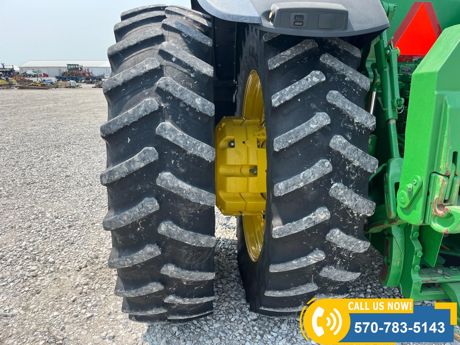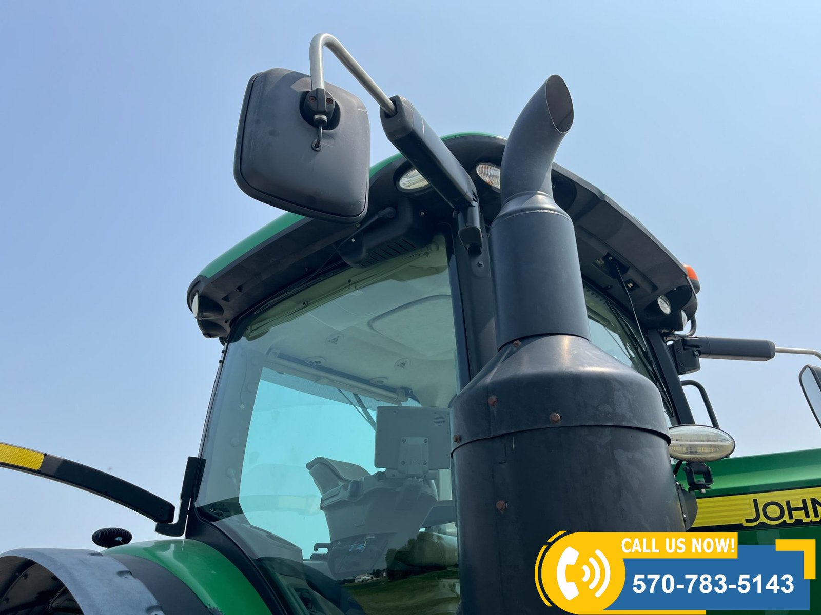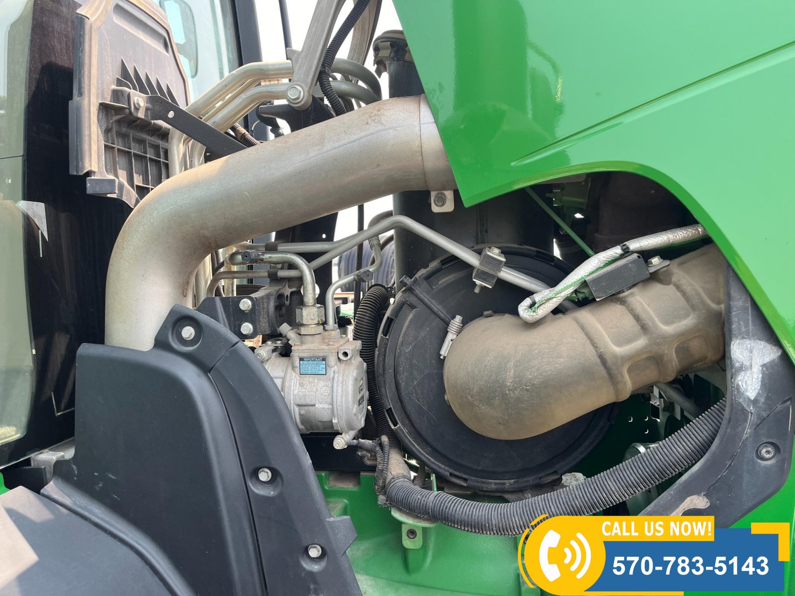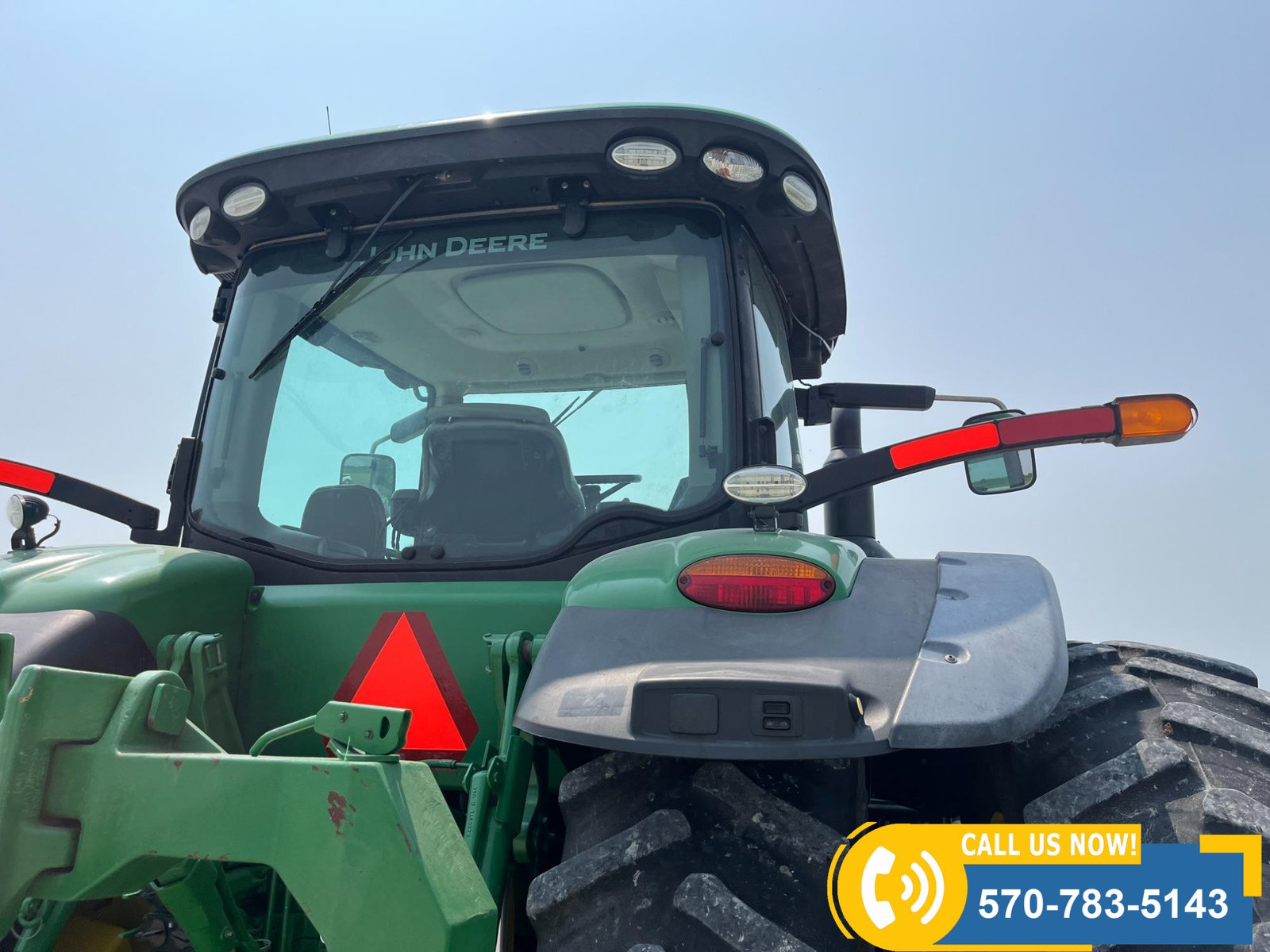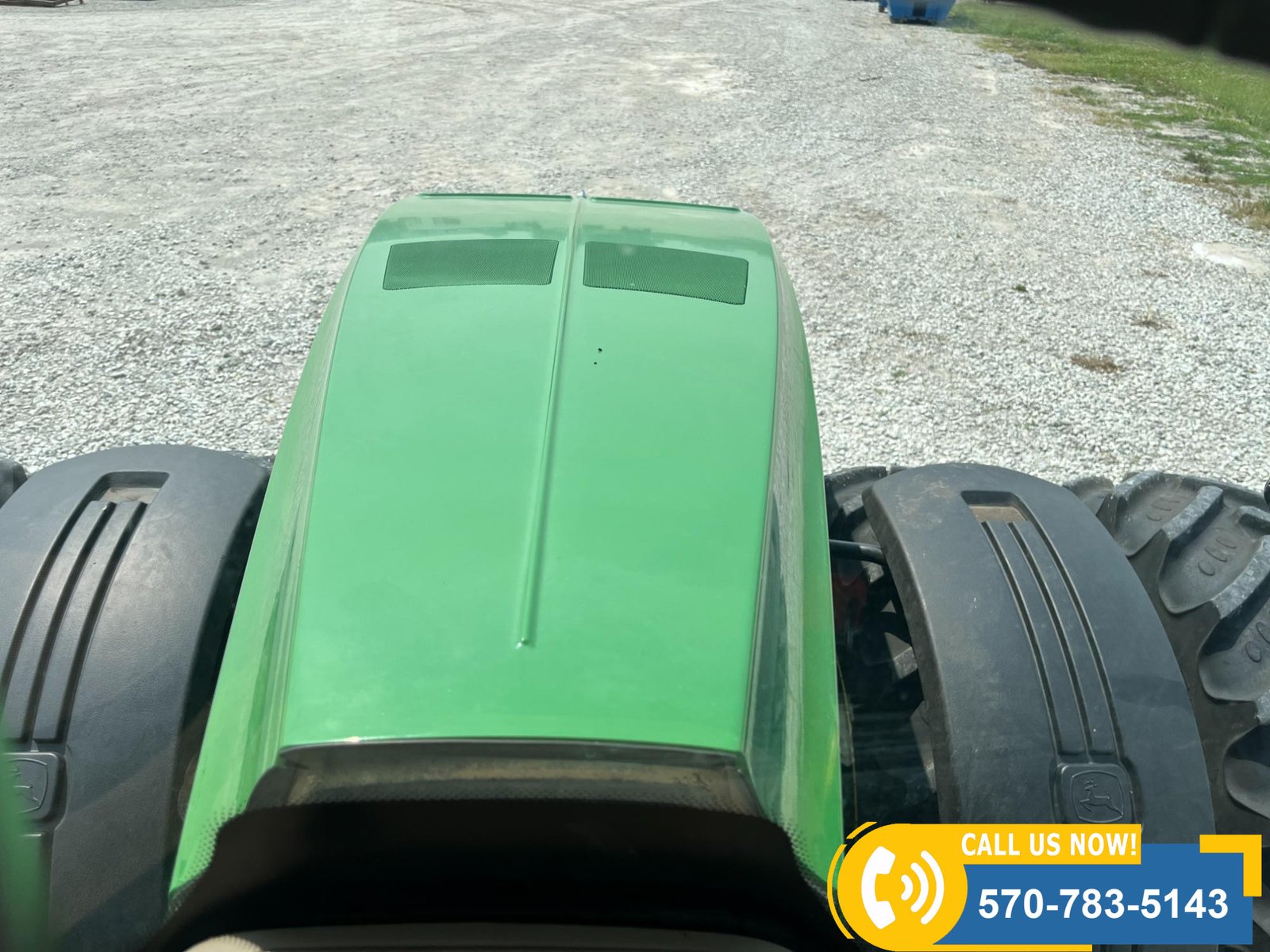 2016 John Deere 8345R MFWD Tractor – 3,453 hours showing, equipped with ILS front suspension, IVT transmission, and premium cab with leather interior. Features 5 hydraulic outlets, 84 GPM dual hydraulic pumps, 1000 PTO, and CommandCenter 10″ display with activations. Rides on 480/80R50 rear duals and 420/85R34 front duals. Includes front and rear fenders, front and rear weights, and premium LED lighting.