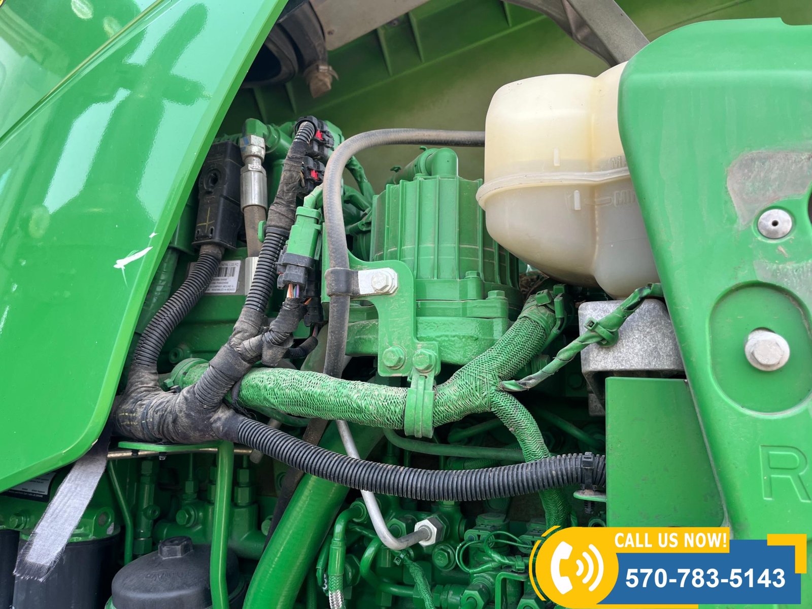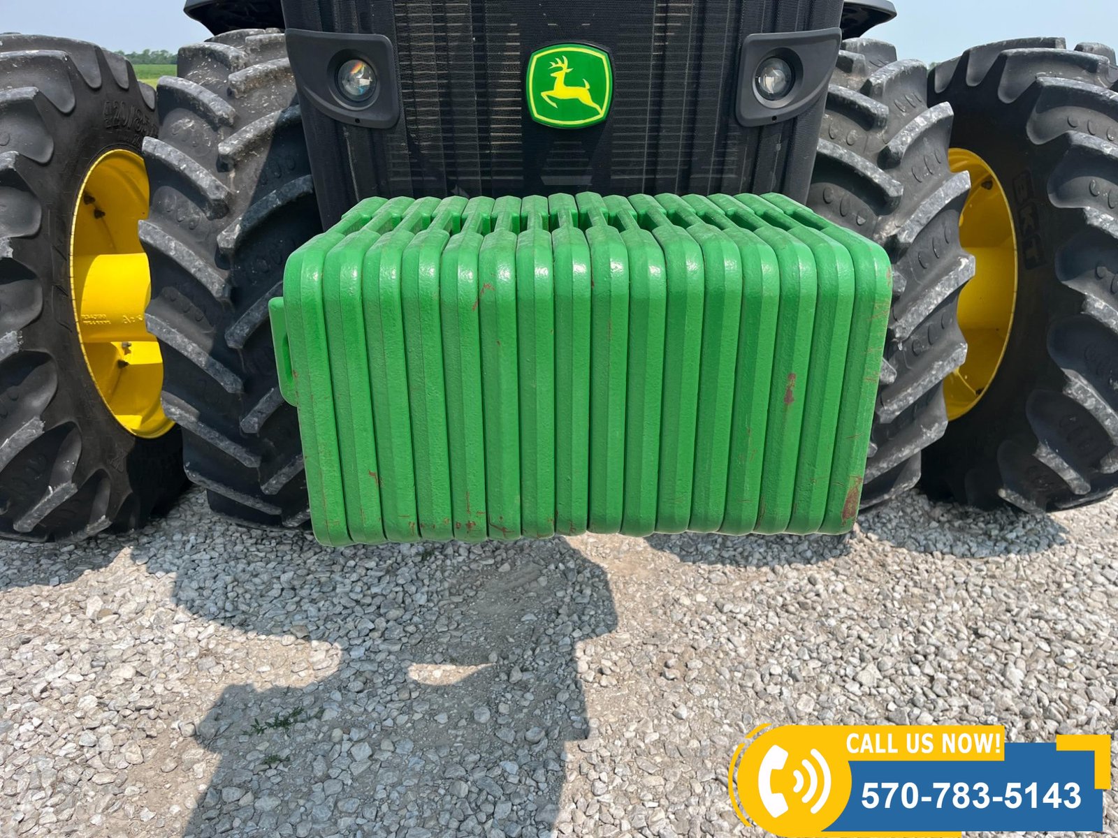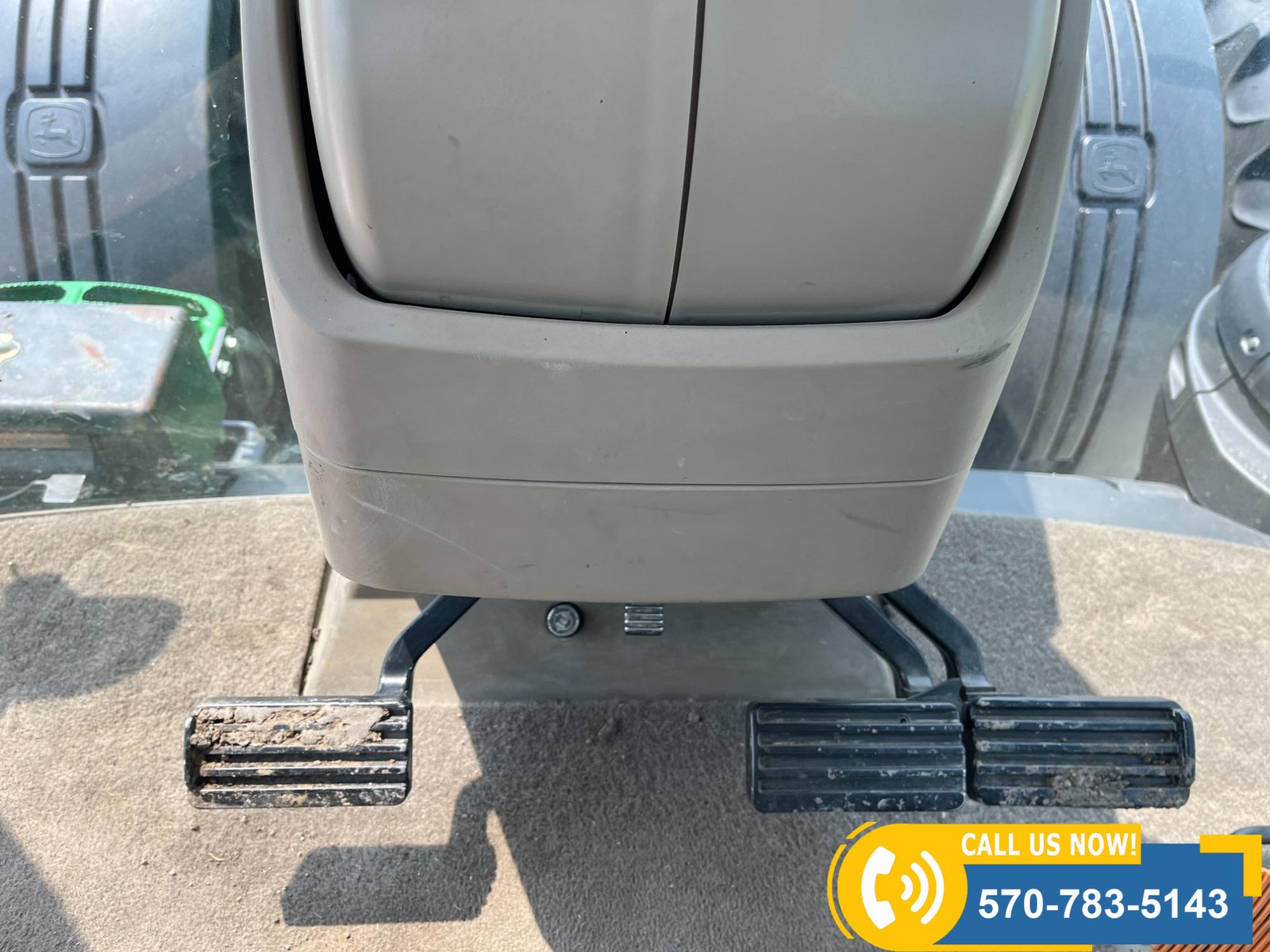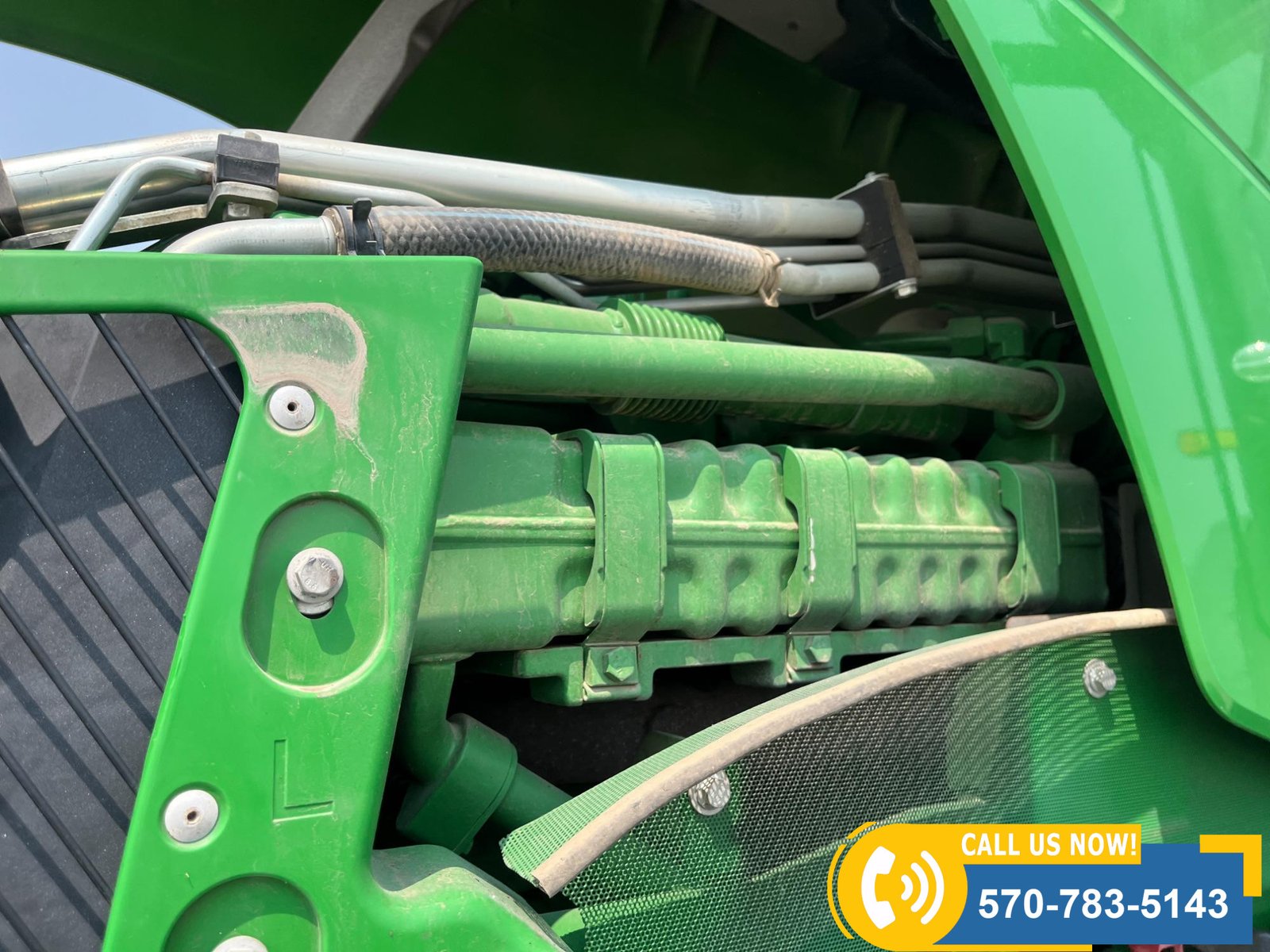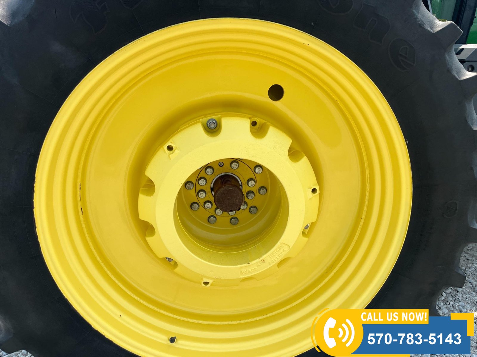 2016 John Deere 8345R MFWD Tractor – 3,453 hours showing, equipped with ILS front suspension, IVT transmission, and premium cab with leather interior. Features 5 hydraulic outlets, 84 GPM dual hydraulic pumps, 1000 PTO, and CommandCenter 10″ display with activations. Rides on 480/80R50 rear duals and 420/85R34 front duals. Includes front and rear fenders, front and rear weights, and premium LED lighting.