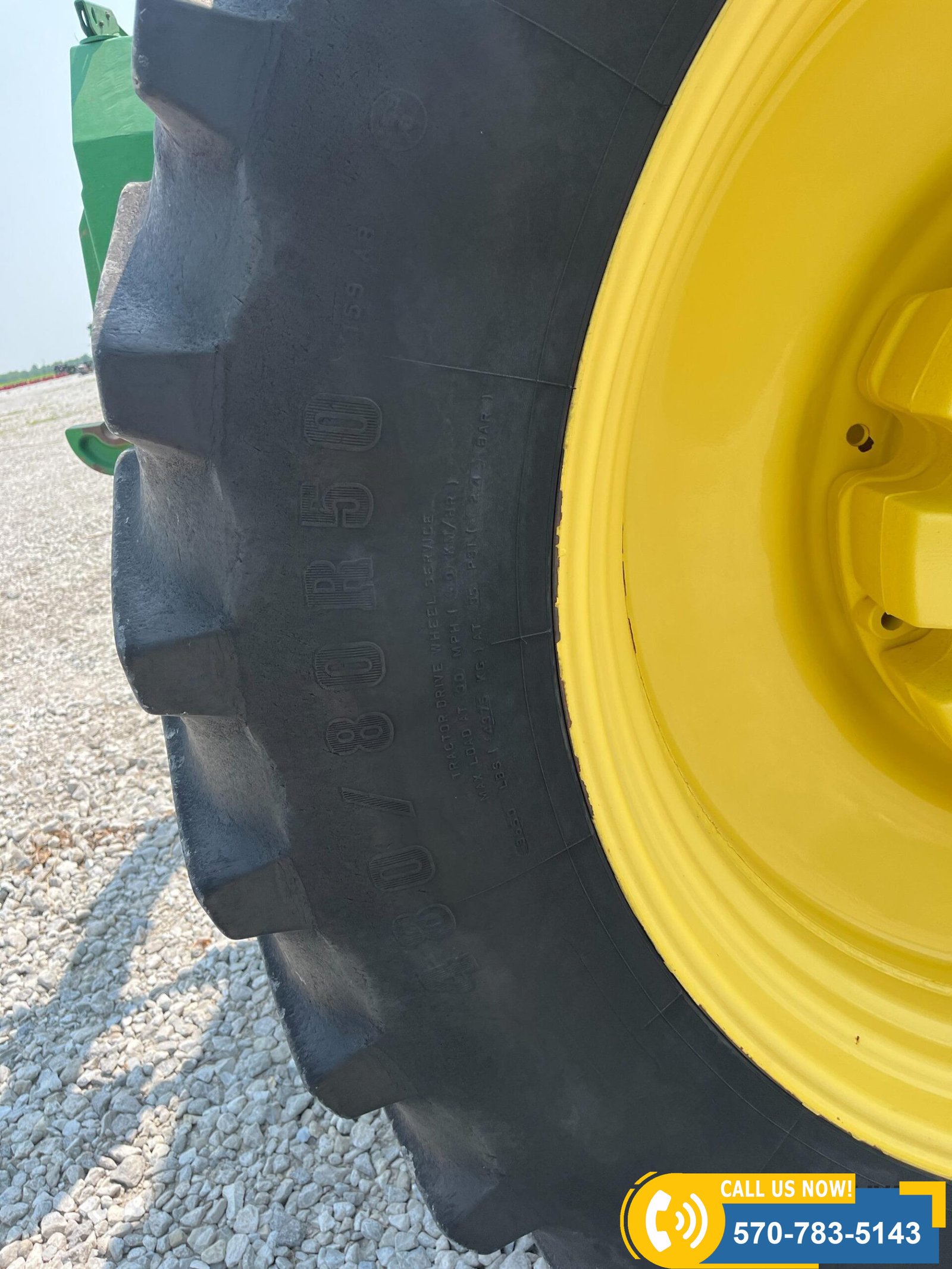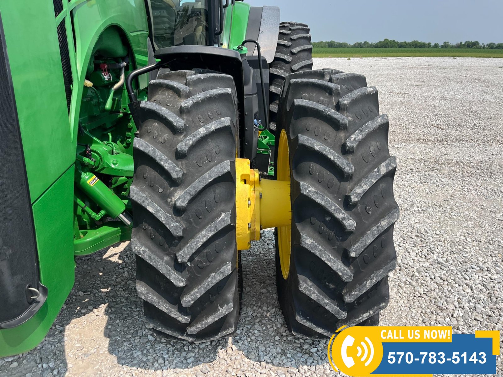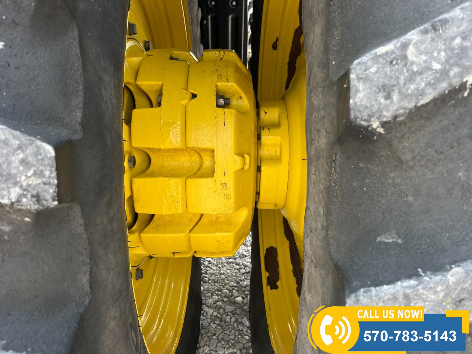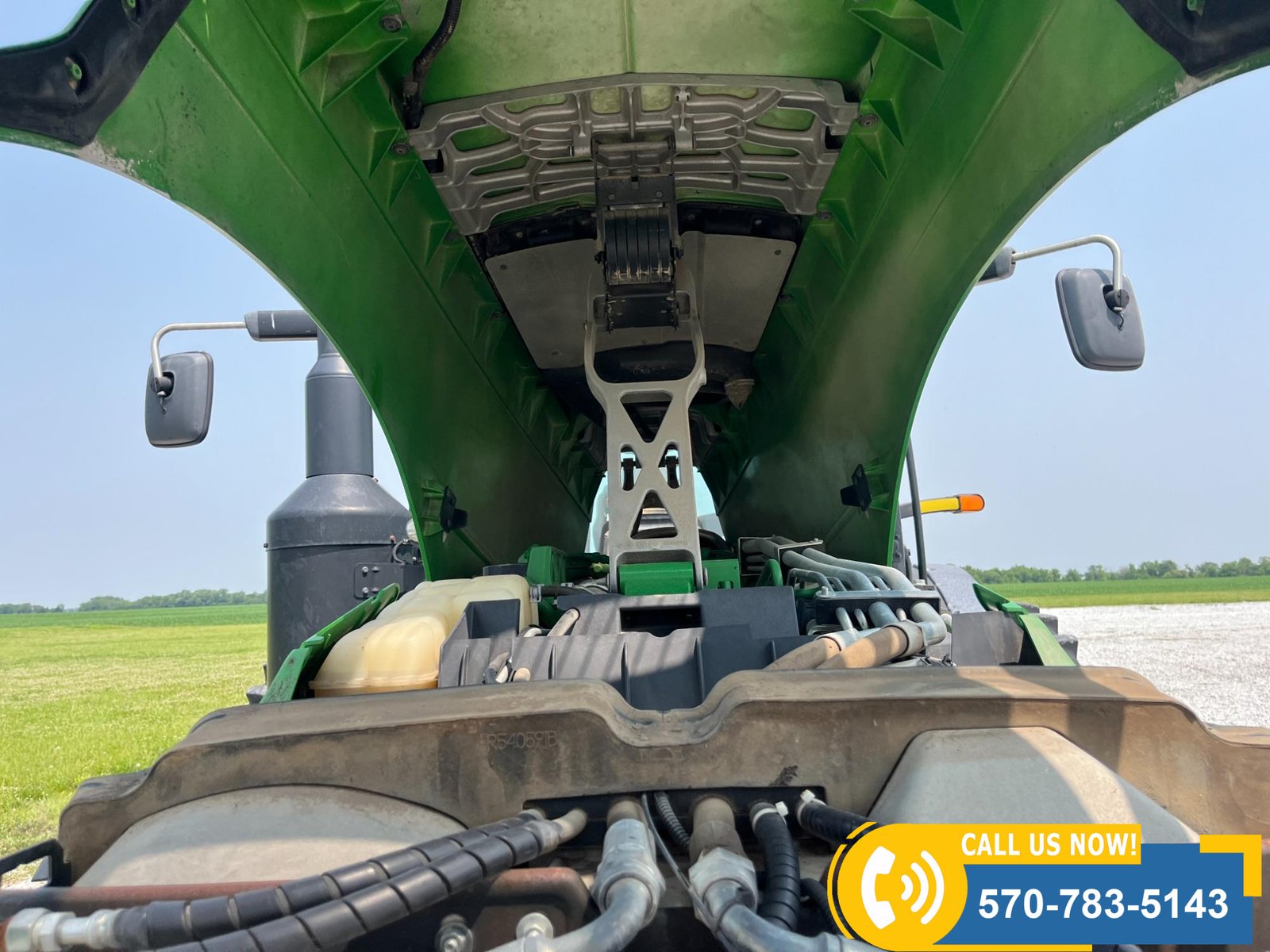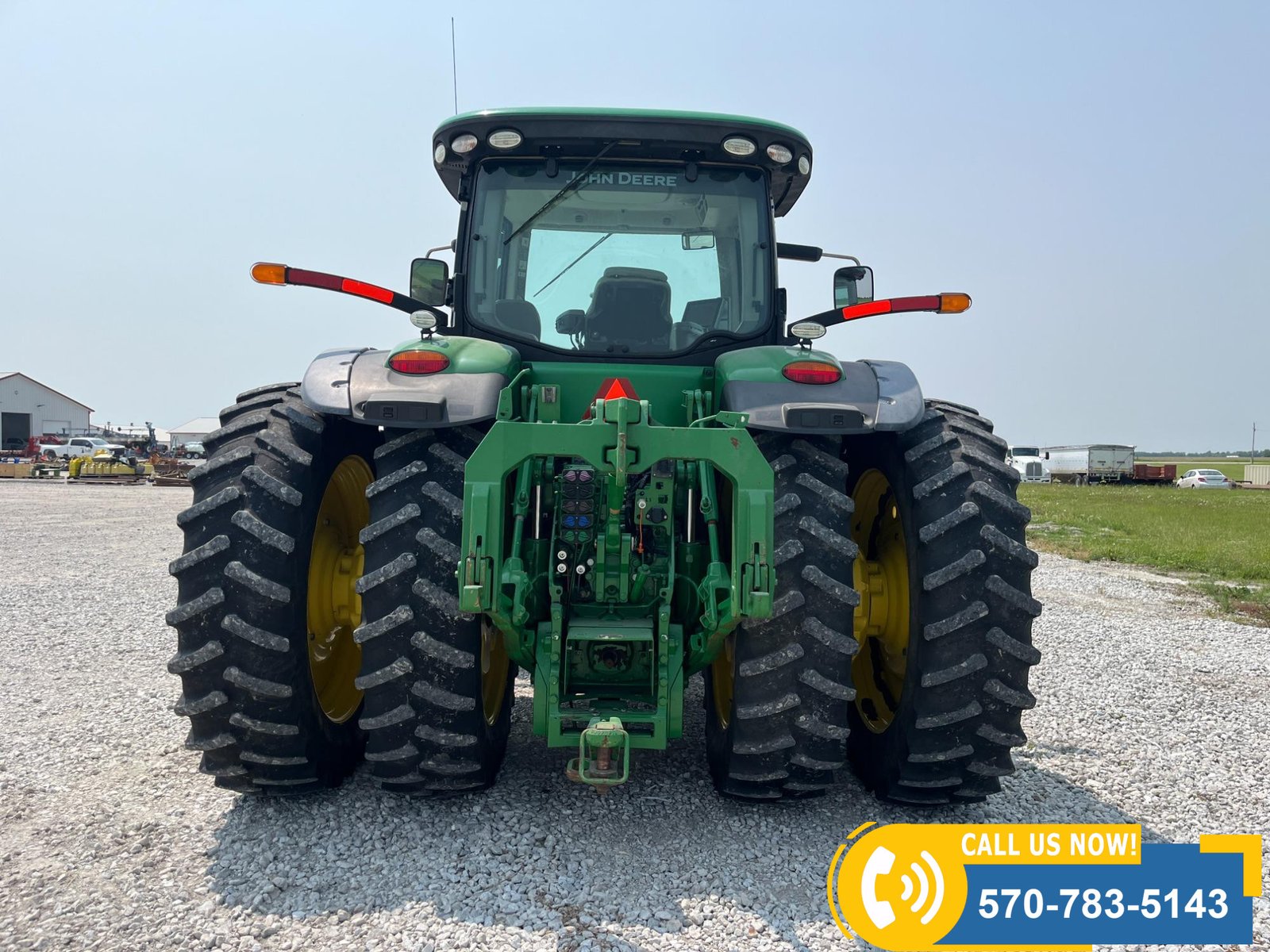 2016 John Deere 8345R MFWD Tractor – 3,453 hours showing, equipped with ILS front suspension, IVT transmission, and premium cab with leather interior. Features 5 hydraulic outlets, 84 GPM dual hydraulic pumps, 1000 PTO, and CommandCenter 10″ display with activations. Rides on 480/80R50 rear duals and 420/85R34 front duals. Includes front and rear fenders, front and rear weights, and premium LED lighting.