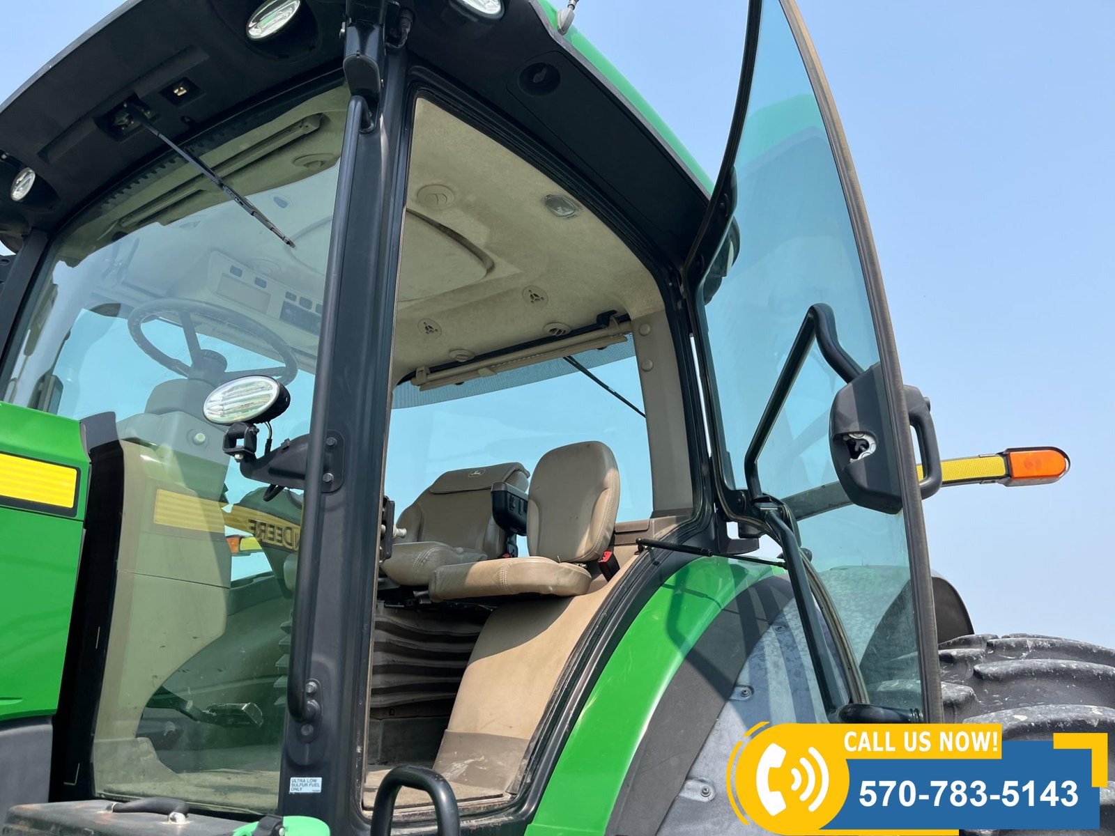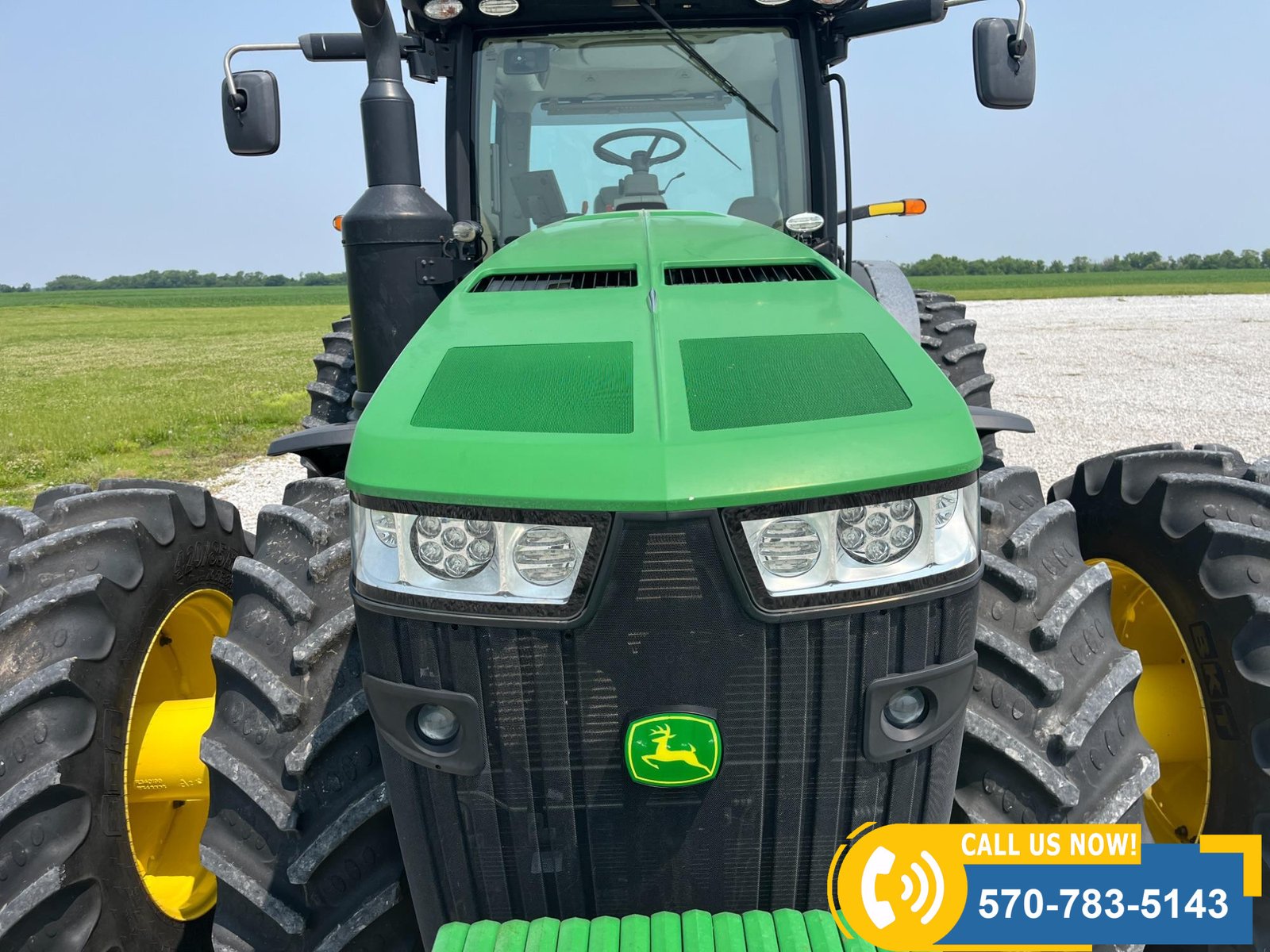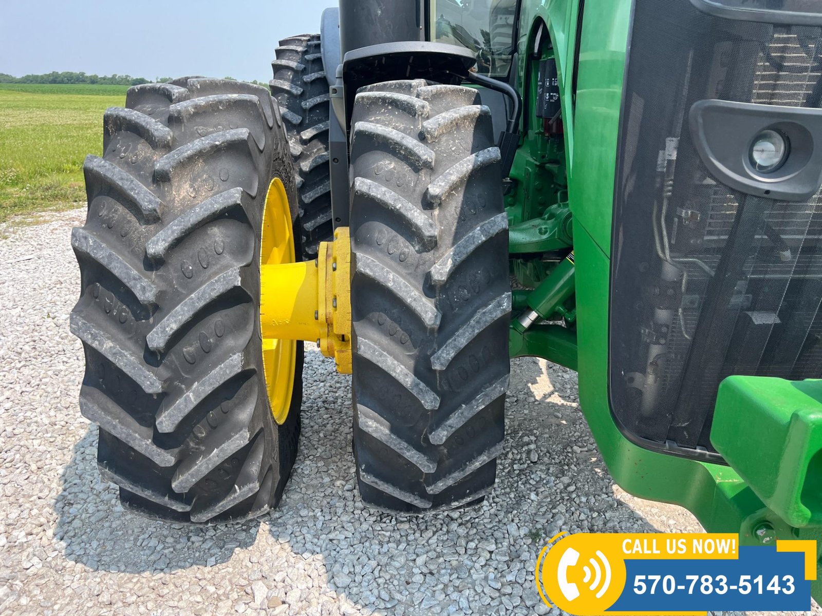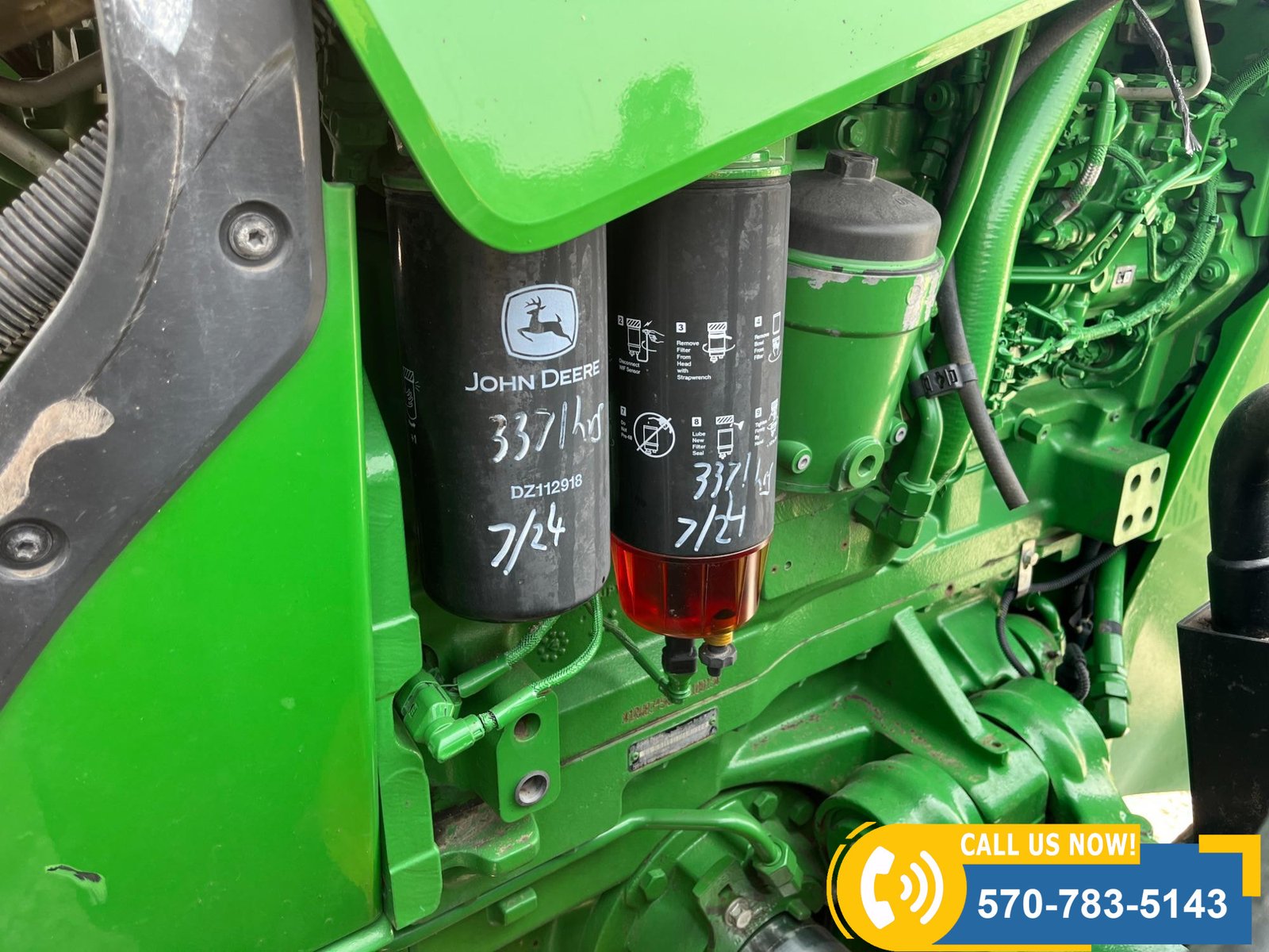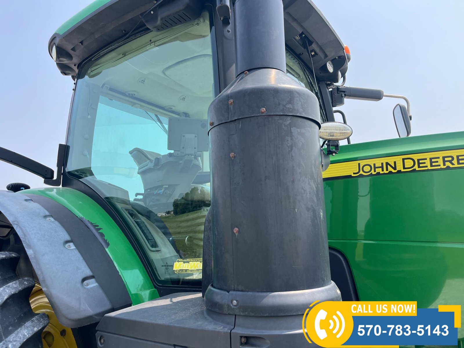 2016 John Deere 8345R MFWD Tractor – 3,453 hours showing, equipped with ILS front suspension, IVT transmission, and premium cab with leather interior. Features 5 hydraulic outlets, 84 GPM dual hydraulic pumps, 1000 PTO, and CommandCenter 10″ display with activations. Rides on 480/80R50 rear duals and 420/85R34 front duals. Includes front and rear fenders, front and rear weights, and premium LED lighting.
