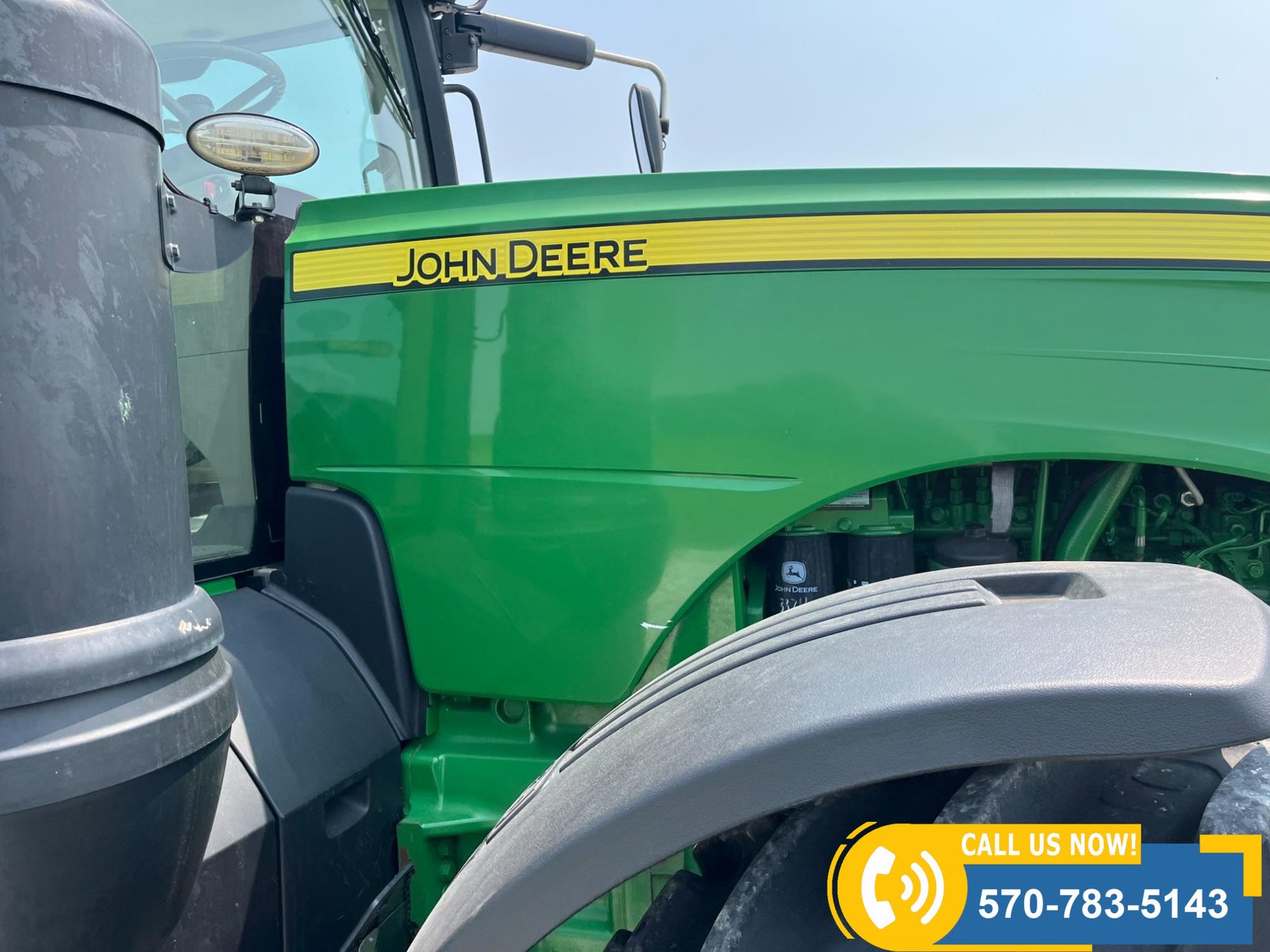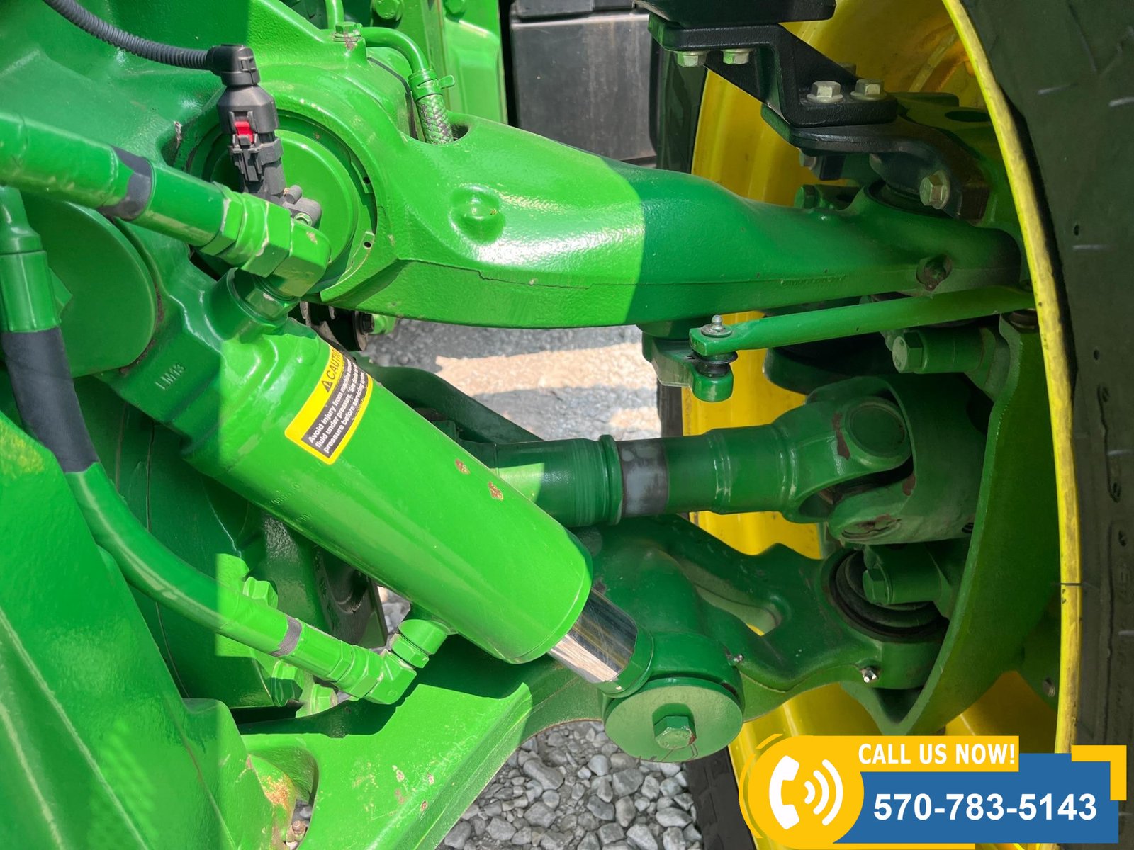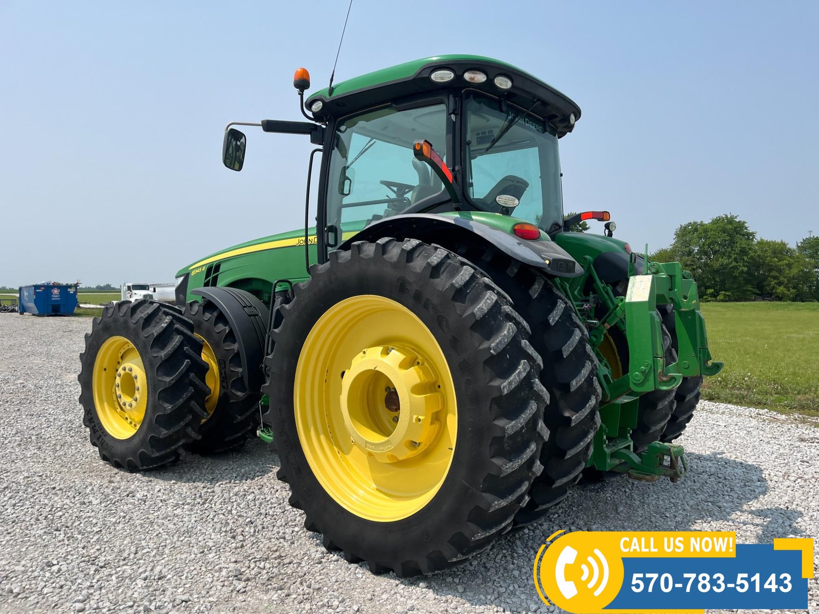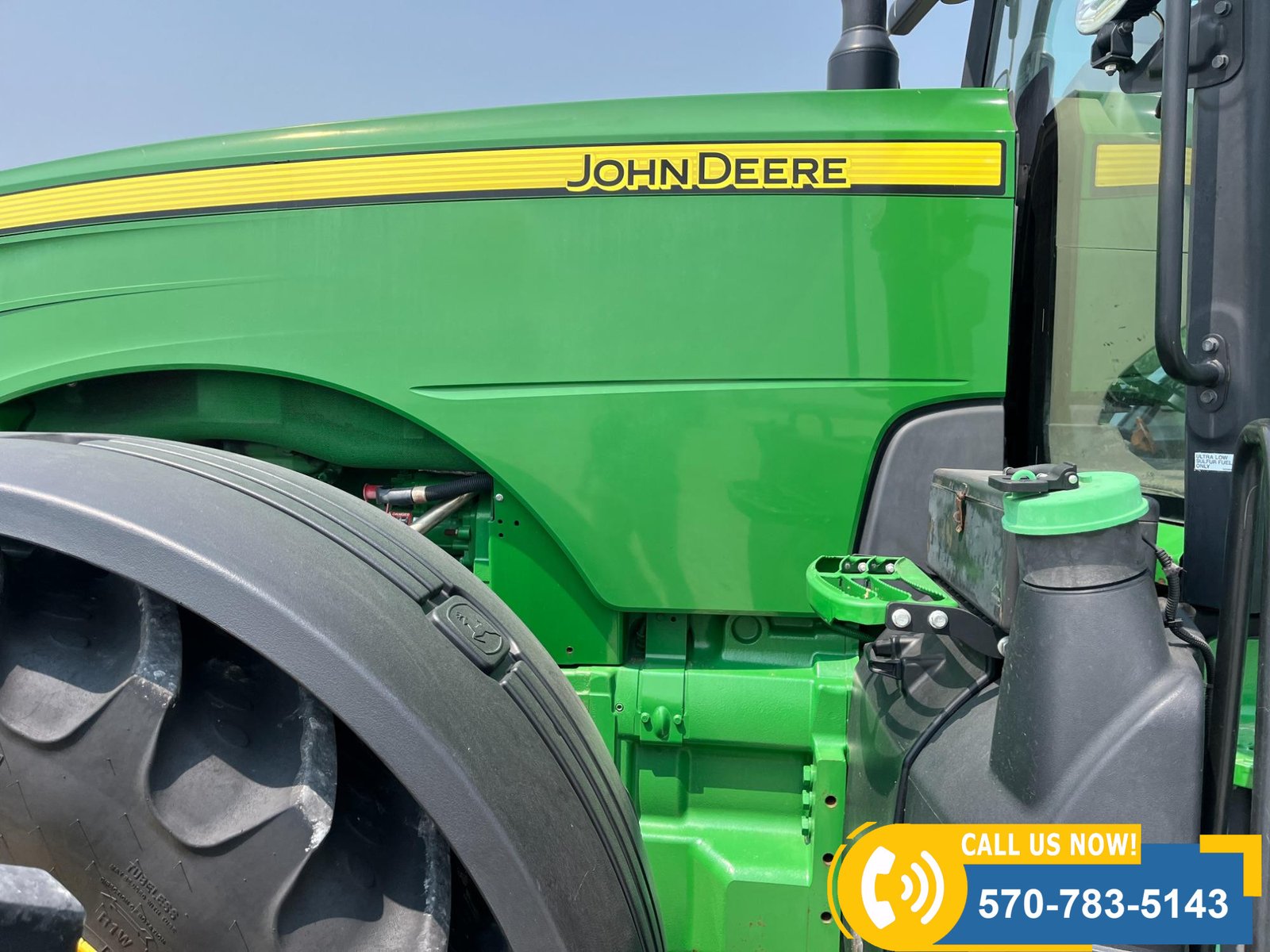 2016 John Deere 8345R MFWD Tractor – 3,453 hours showing, equipped with ILS front suspension, IVT transmission, and premium cab with leather interior. Features 5 hydraulic outlets, 84 GPM dual hydraulic pumps, 1000 PTO, and CommandCenter 10″ display with activations. Rides on 480/80R50 rear duals and 420/85R34 front duals. Includes front and rear fenders, front and rear weights, and premium LED lighting.