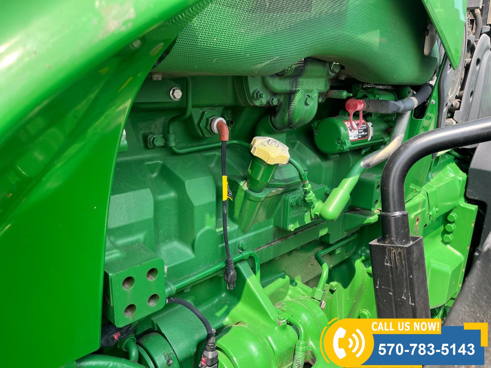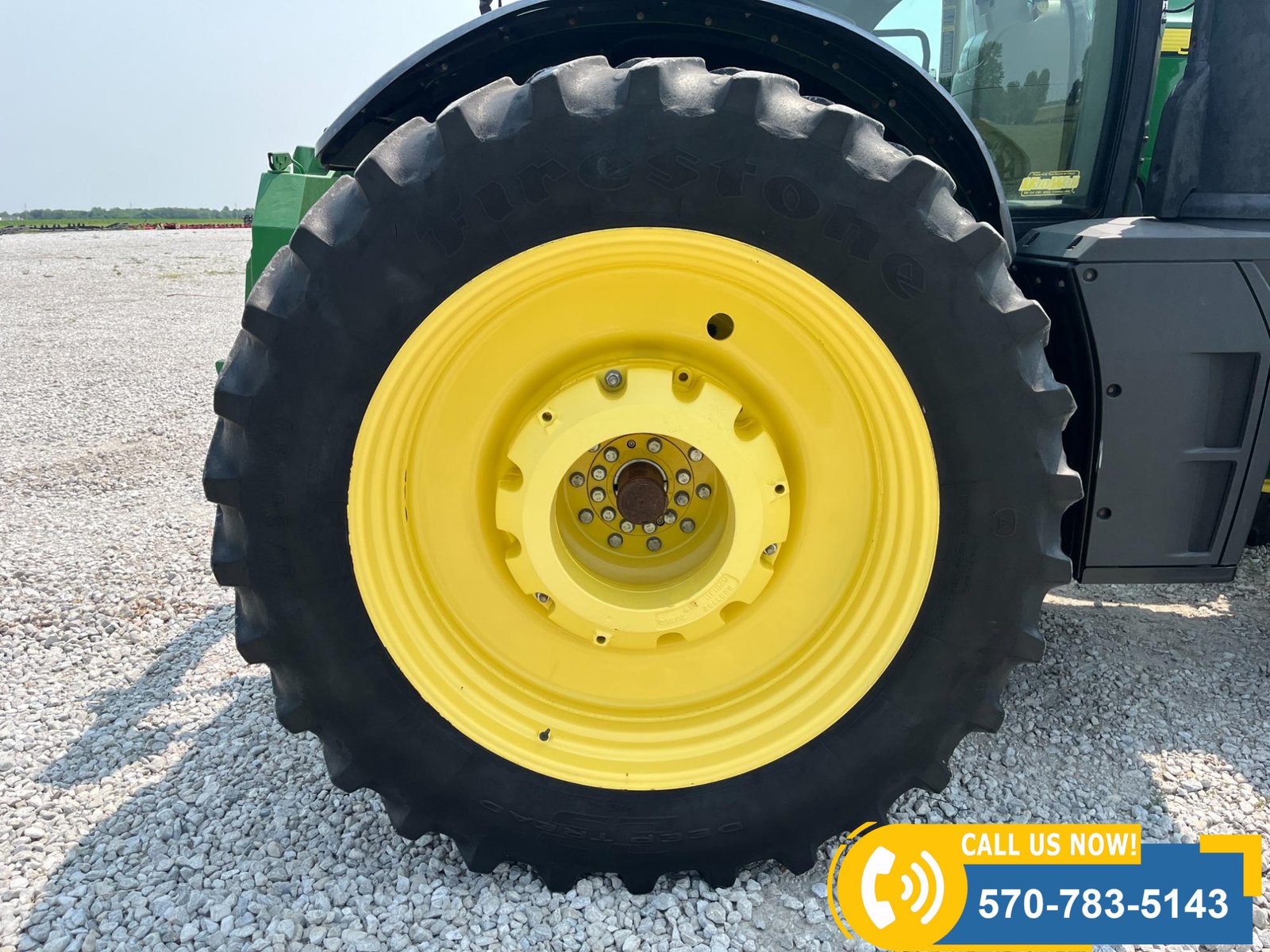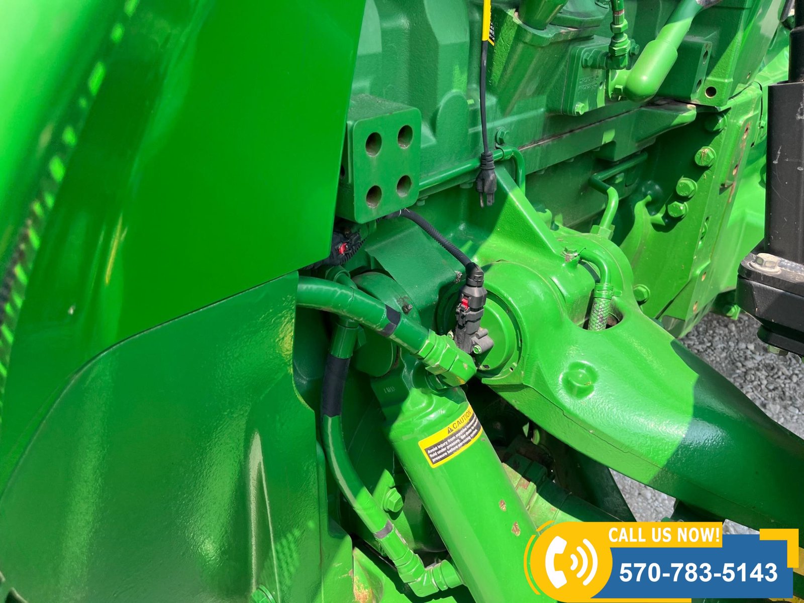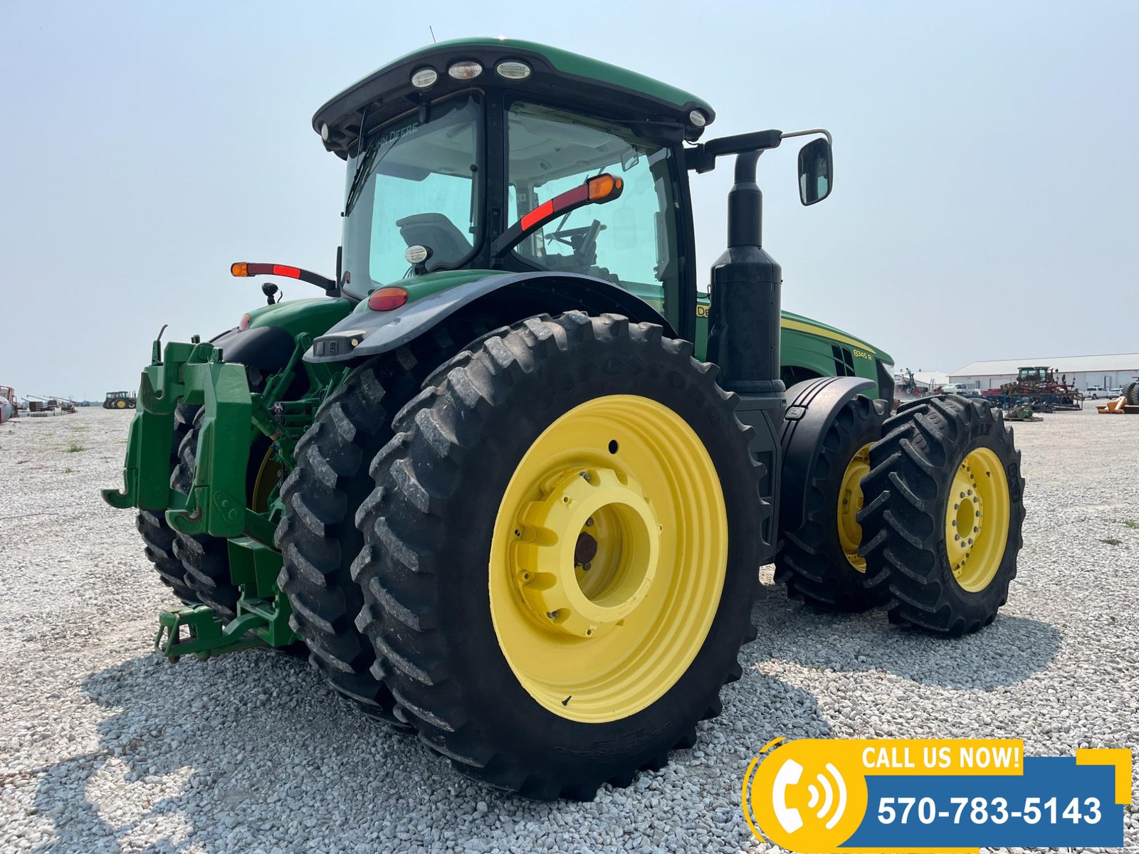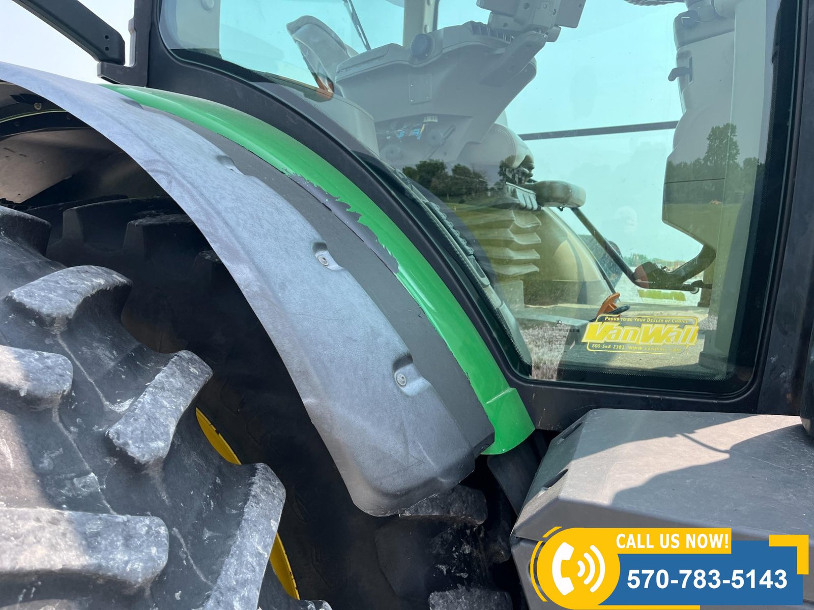 2016 John Deere 8345R MFWD Tractor – 3,453 hours showing, equipped with ILS front suspension, IVT transmission, and premium cab with leather interior. Features 5 hydraulic outlets, 84 GPM dual hydraulic pumps, 1000 PTO, and CommandCenter 10″ display with activations. Rides on 480/80R50 rear duals and 420/85R34 front duals. Includes front and rear fenders, front and rear weights, and premium LED lighting.