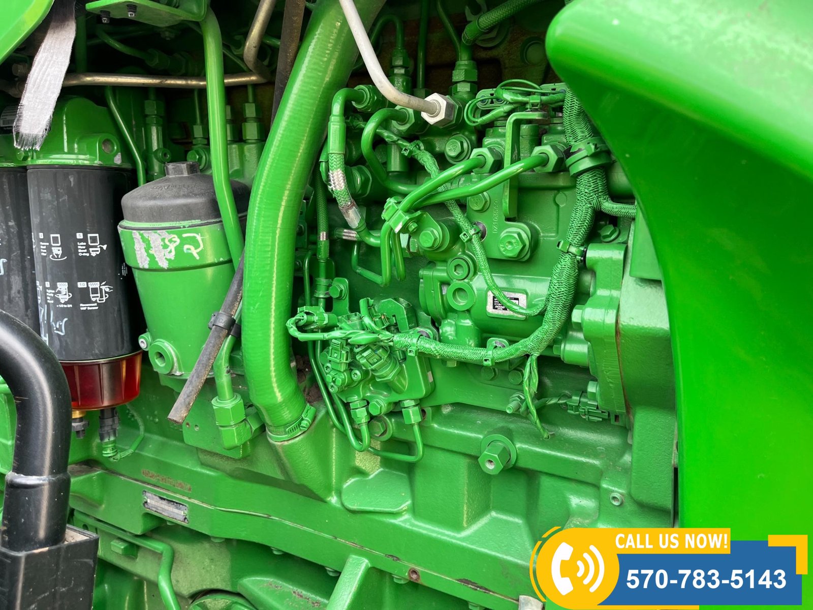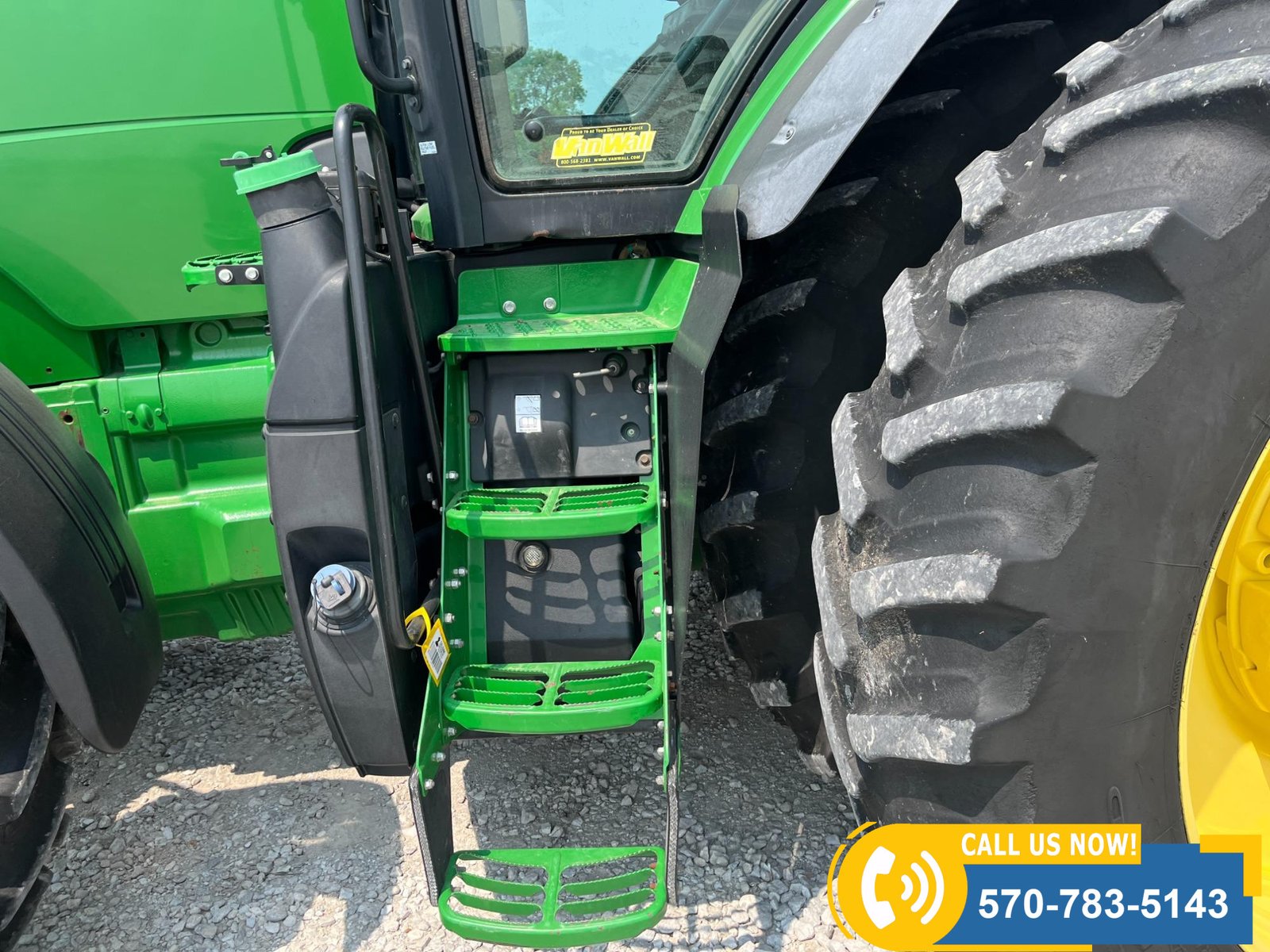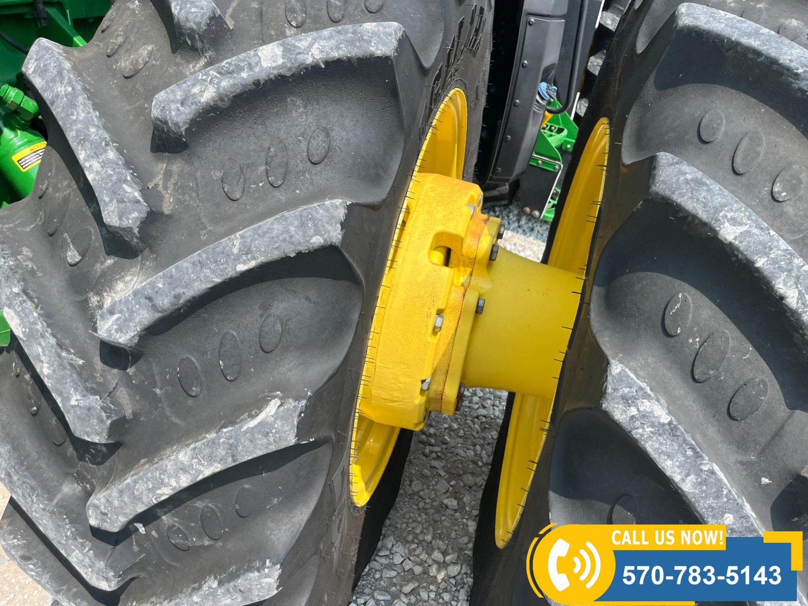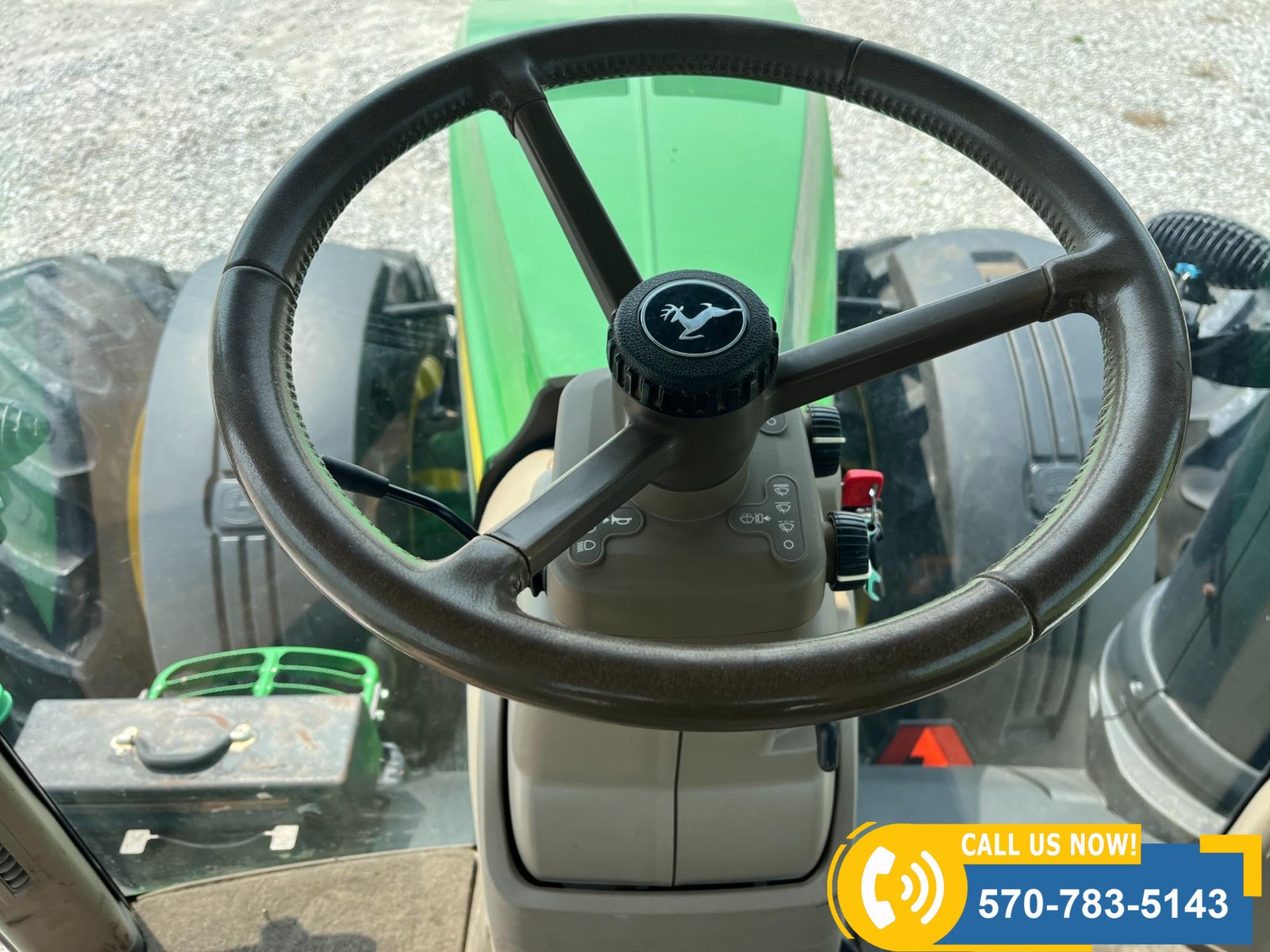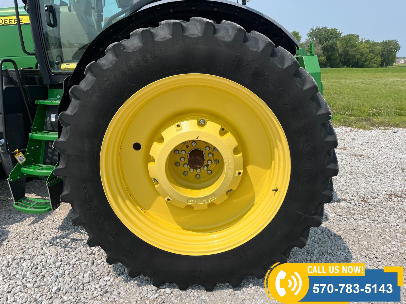 2016 John Deere 8345R MFWD Tractor – 3,453 hours showing, equipped with ILS front suspension, IVT transmission, and premium cab with leather interior. Features 5 hydraulic outlets, 84 GPM dual hydraulic pumps, 1000 PTO, and CommandCenter 10″ display with activations. Rides on 480/80R50 rear duals and 420/85R34 front duals. Includes front and rear fenders, front and rear weights, and premium LED lighting.