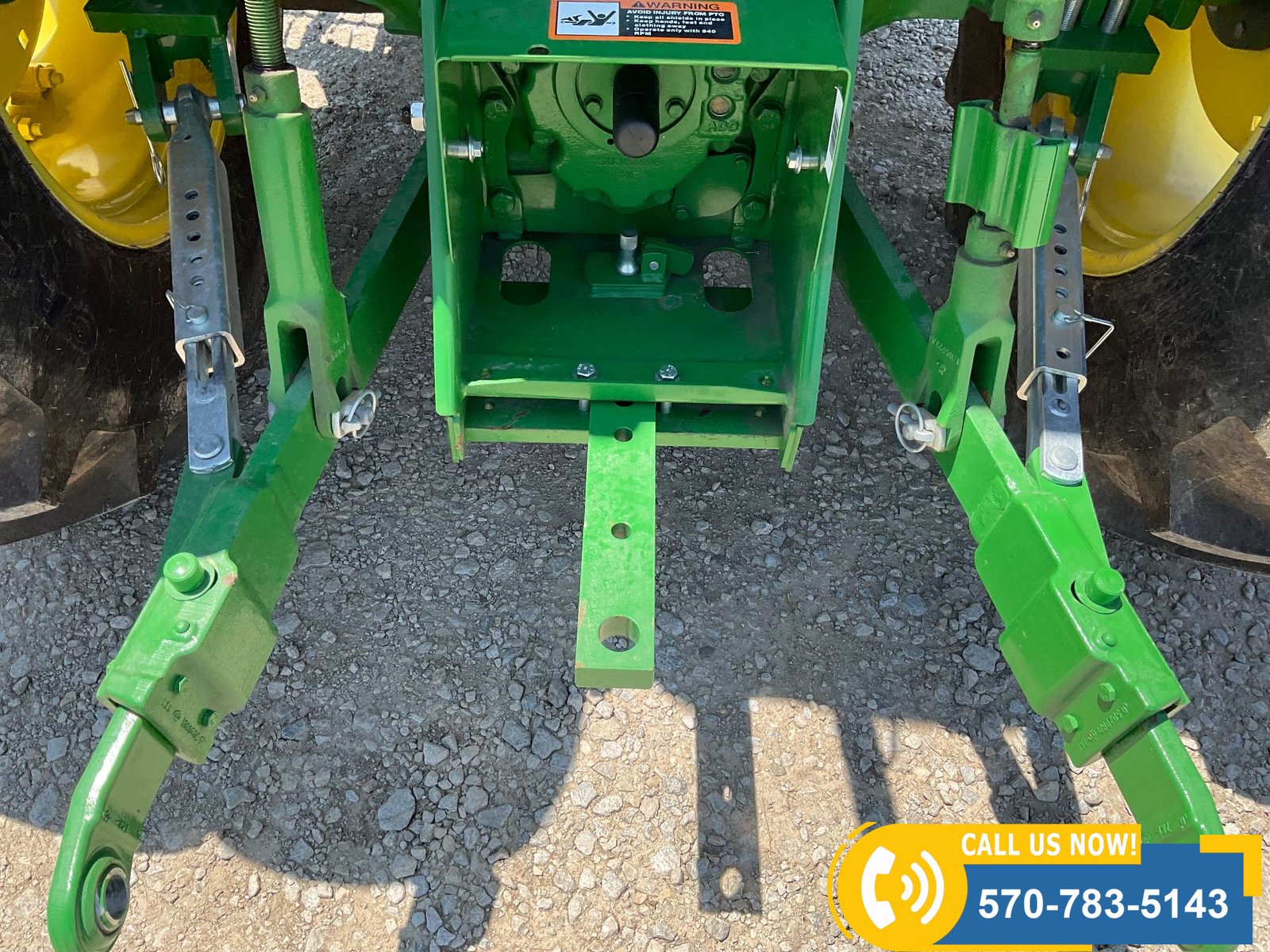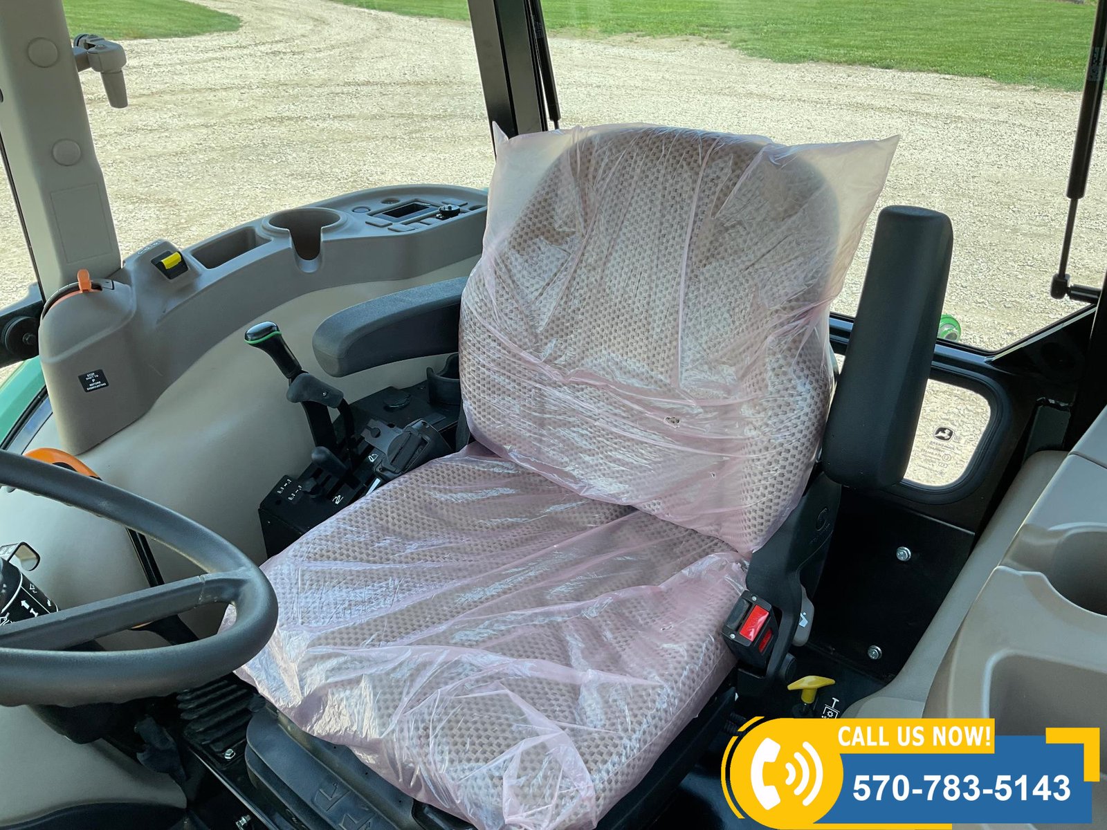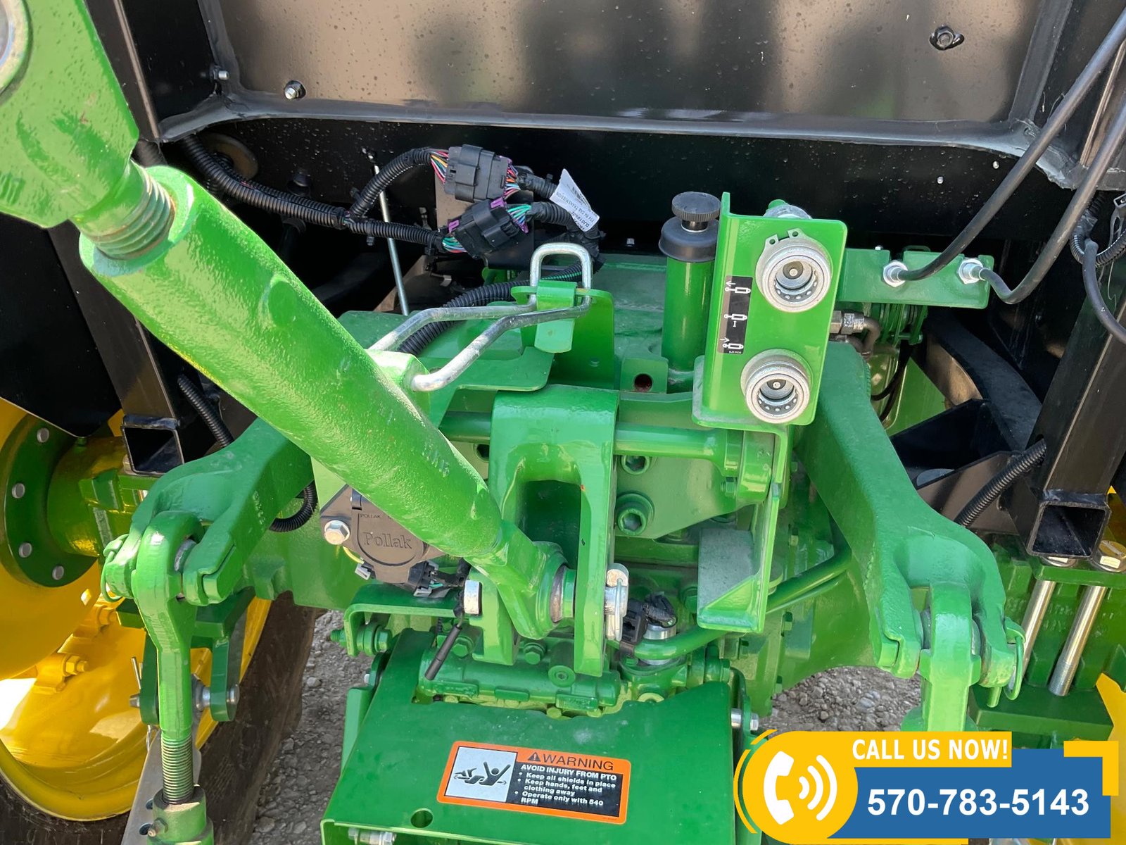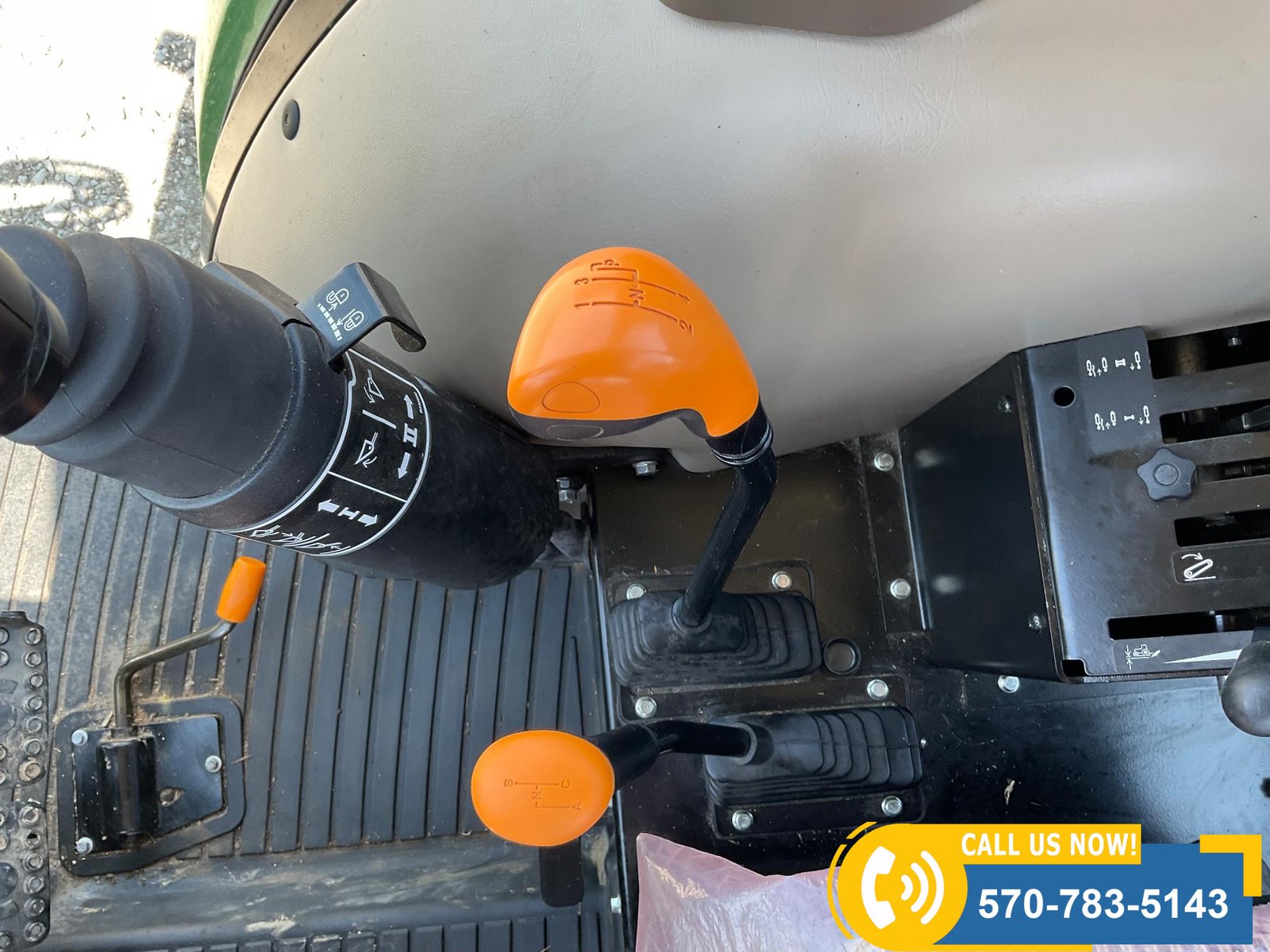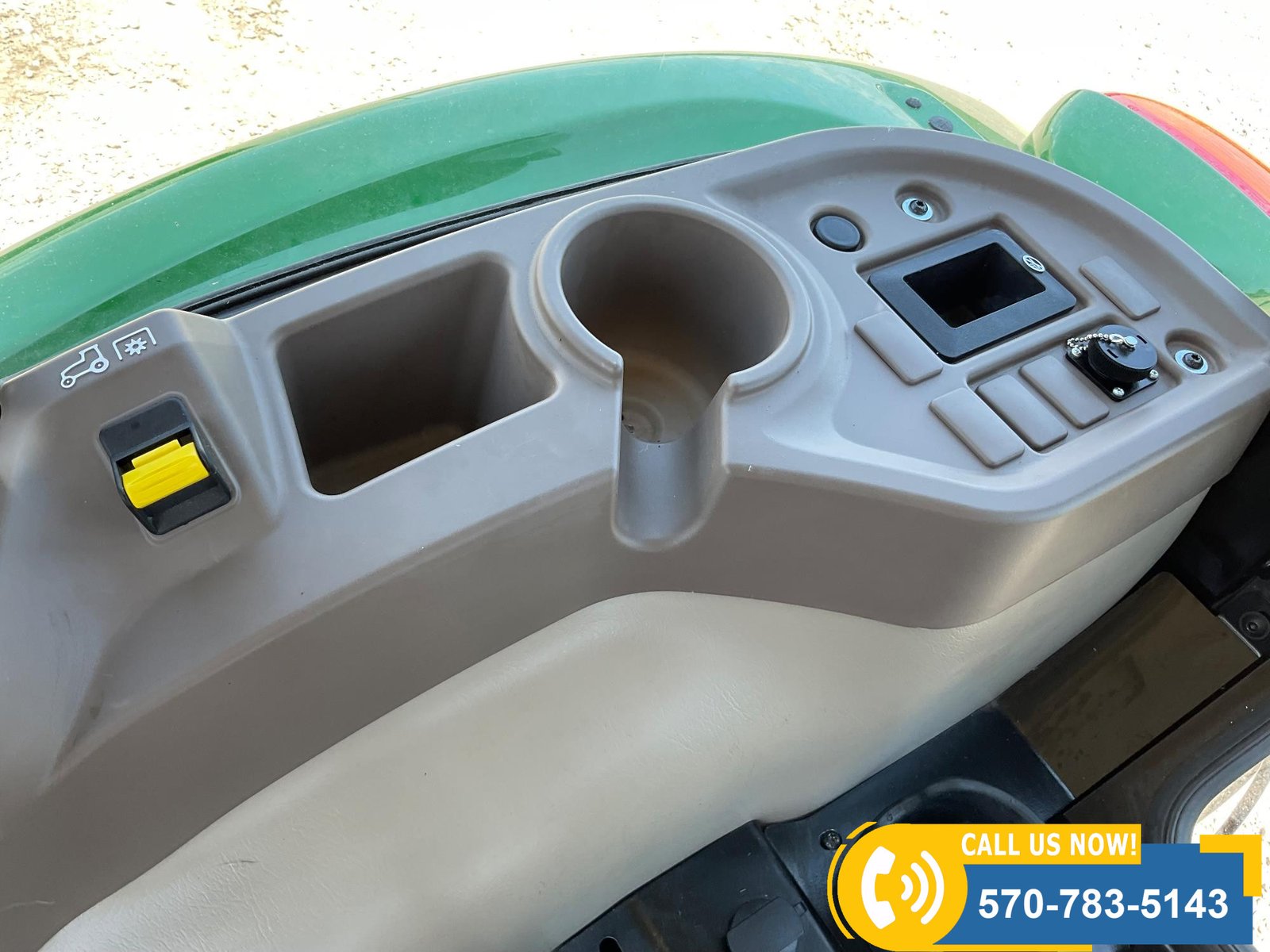 2018 John Deere 5075E MFWD Tractor w/ Loader – Only 52 hours showing, 64 PTO HP PowerTech 2.9L engine, 12F/12R transmission with LH reverser. Equipped with 540 PTO, rear PTO, 1 hydraulic outlet, and 3-point hitch. Rides on 9.5-24 front and 16.9-28 rear tires. Features John Deere 520M front loader with 72″ quick attach bucket, single-point hydraulic hook-up, and standard cloth seat.