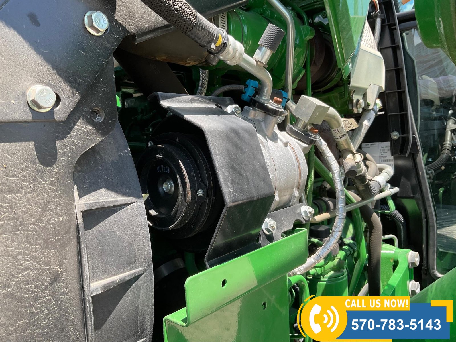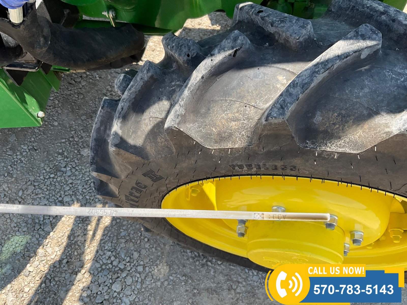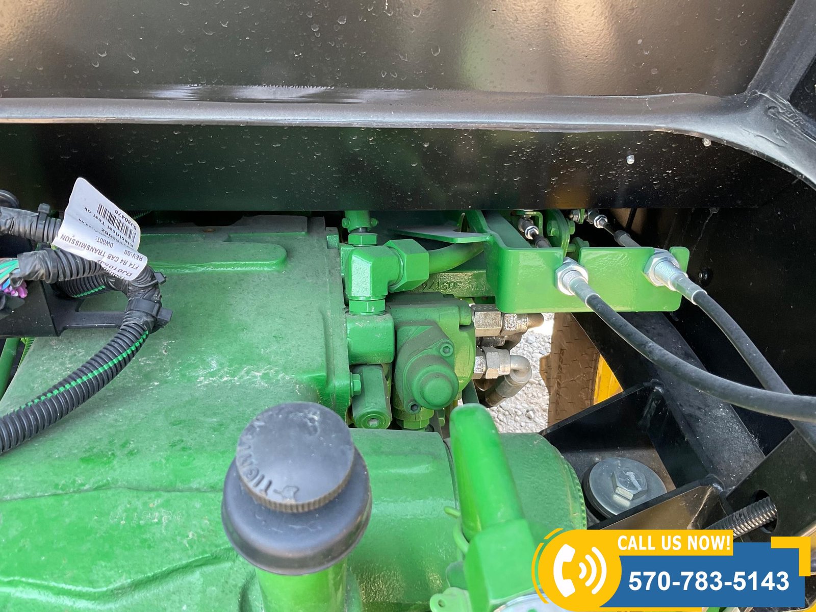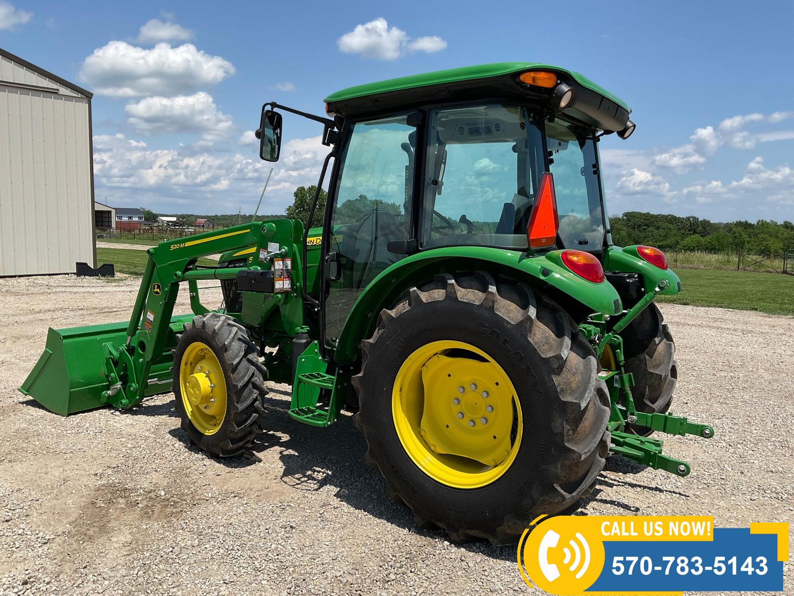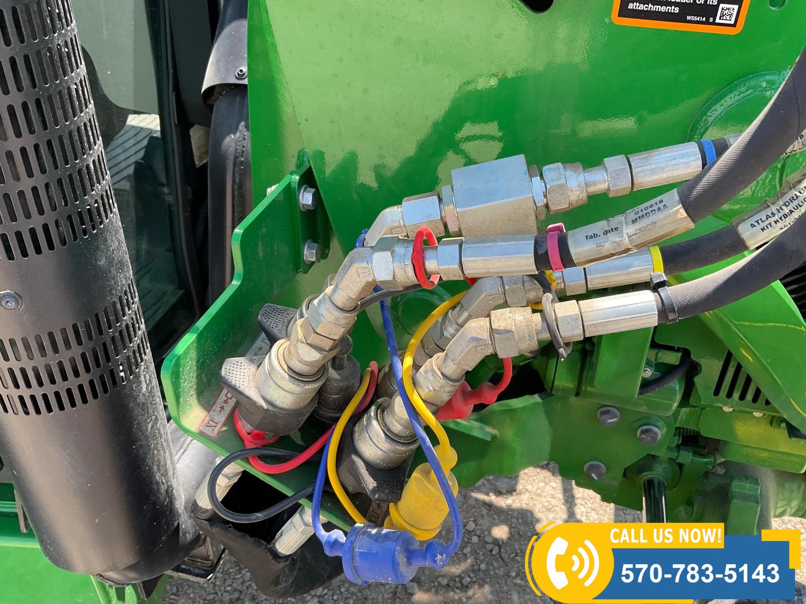 2018 John Deere 5075E MFWD Tractor w/ Loader – Only 52 hours showing, 64 PTO HP PowerTech 2.9L engine, 12F/12R transmission with LH reverser. Equipped with 540 PTO, rear PTO, 1 hydraulic outlet, and 3-point hitch. Rides on 9.5-24 front and 16.9-28 rear tires. Features John Deere 520M front loader with 72″ quick attach bucket, single-point hydraulic hook-up, and standard cloth seat.