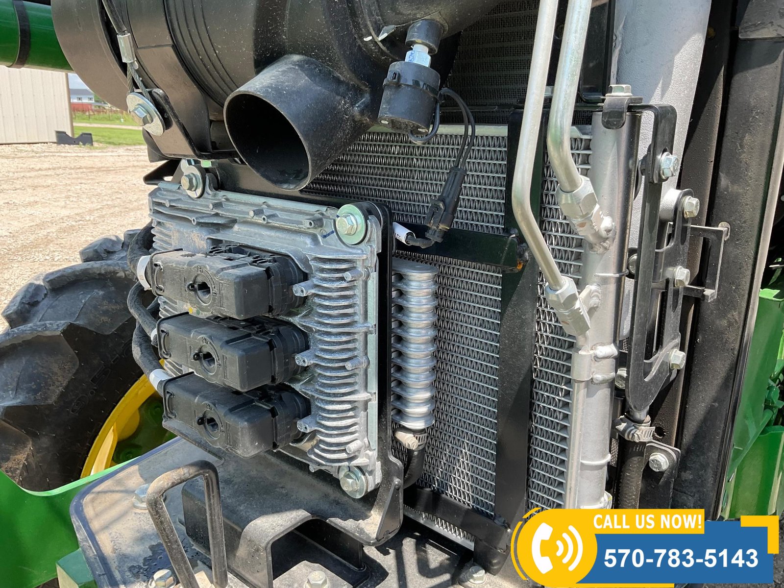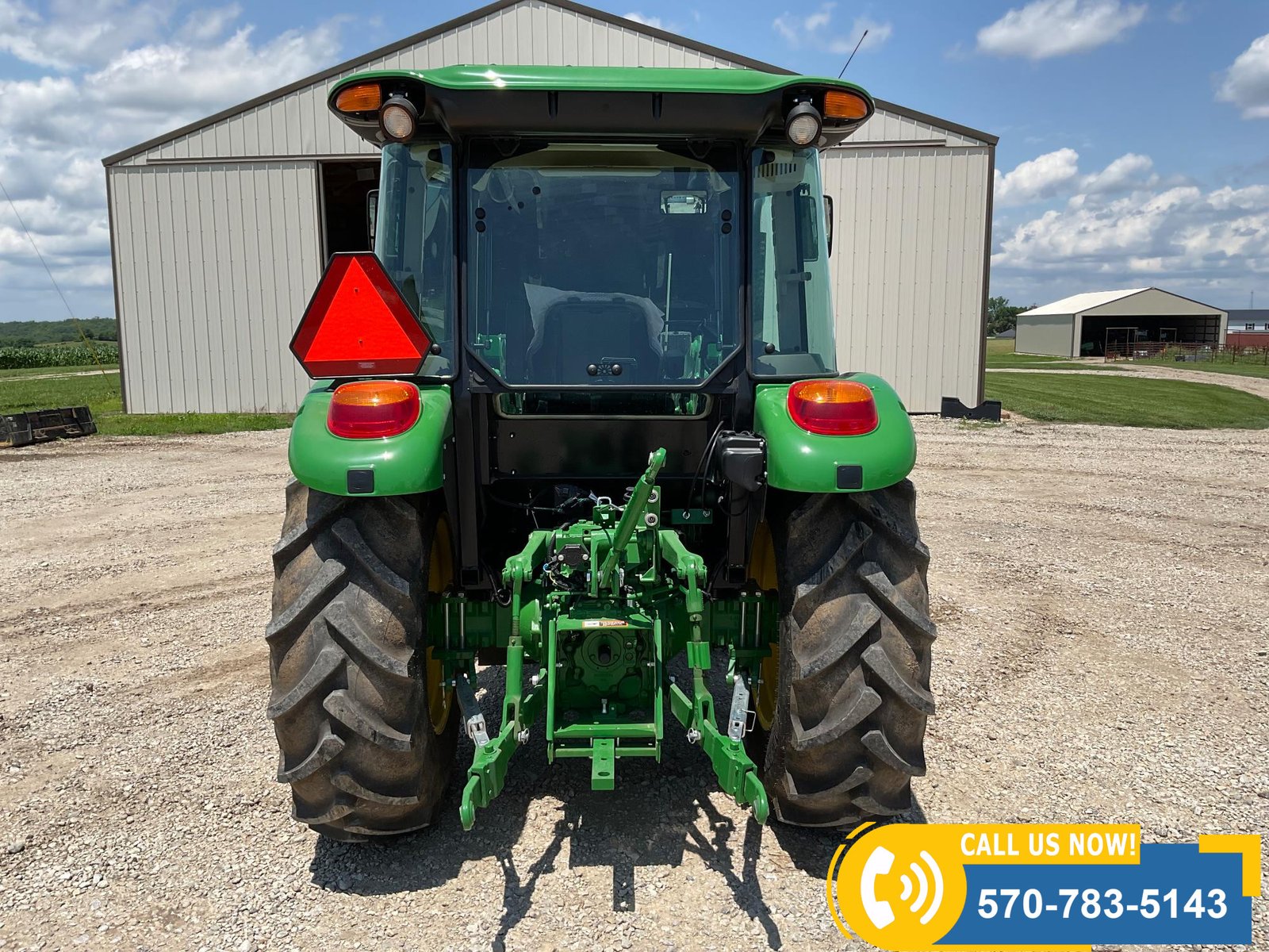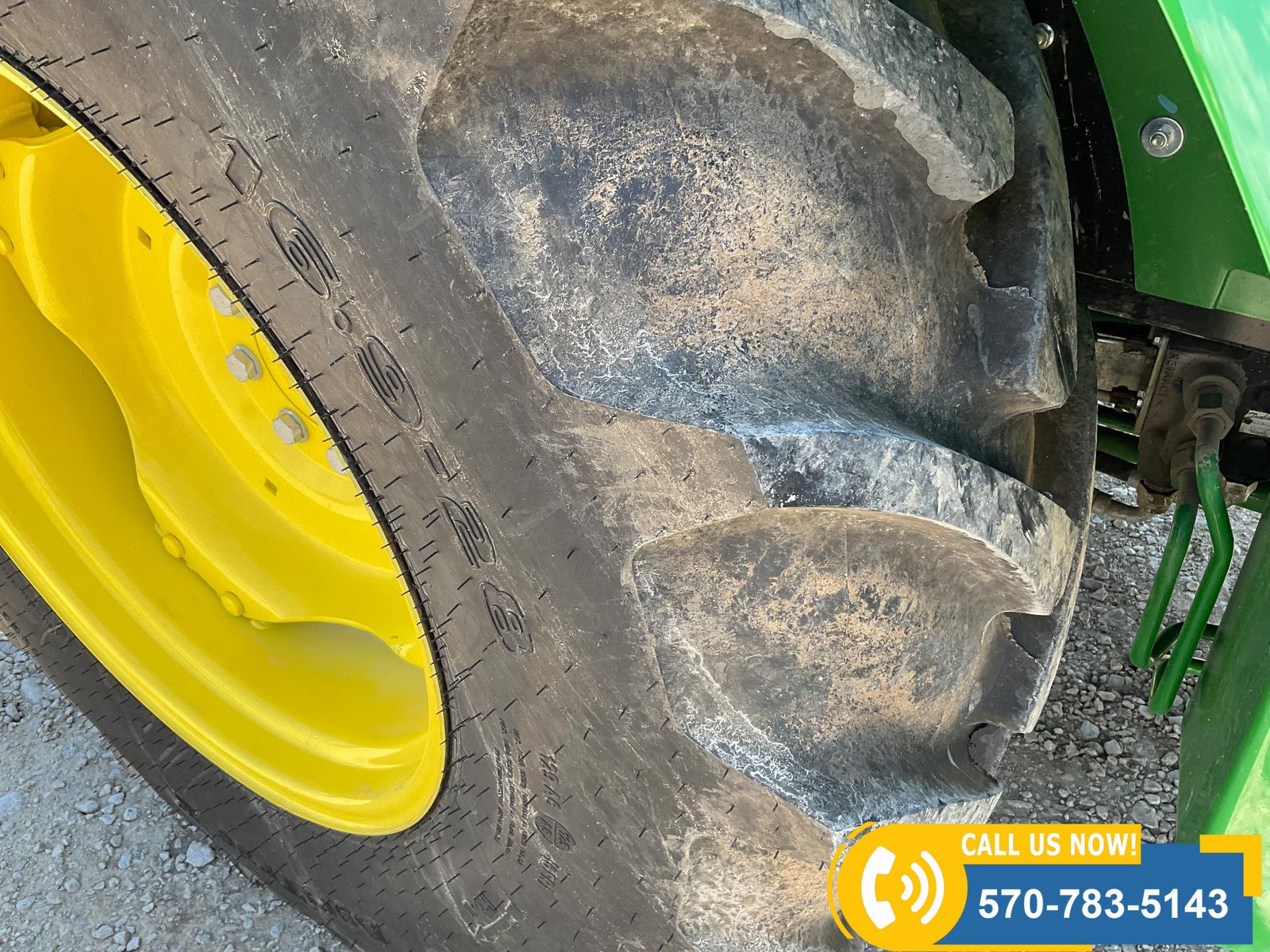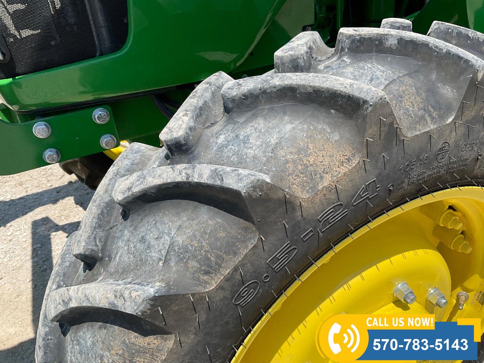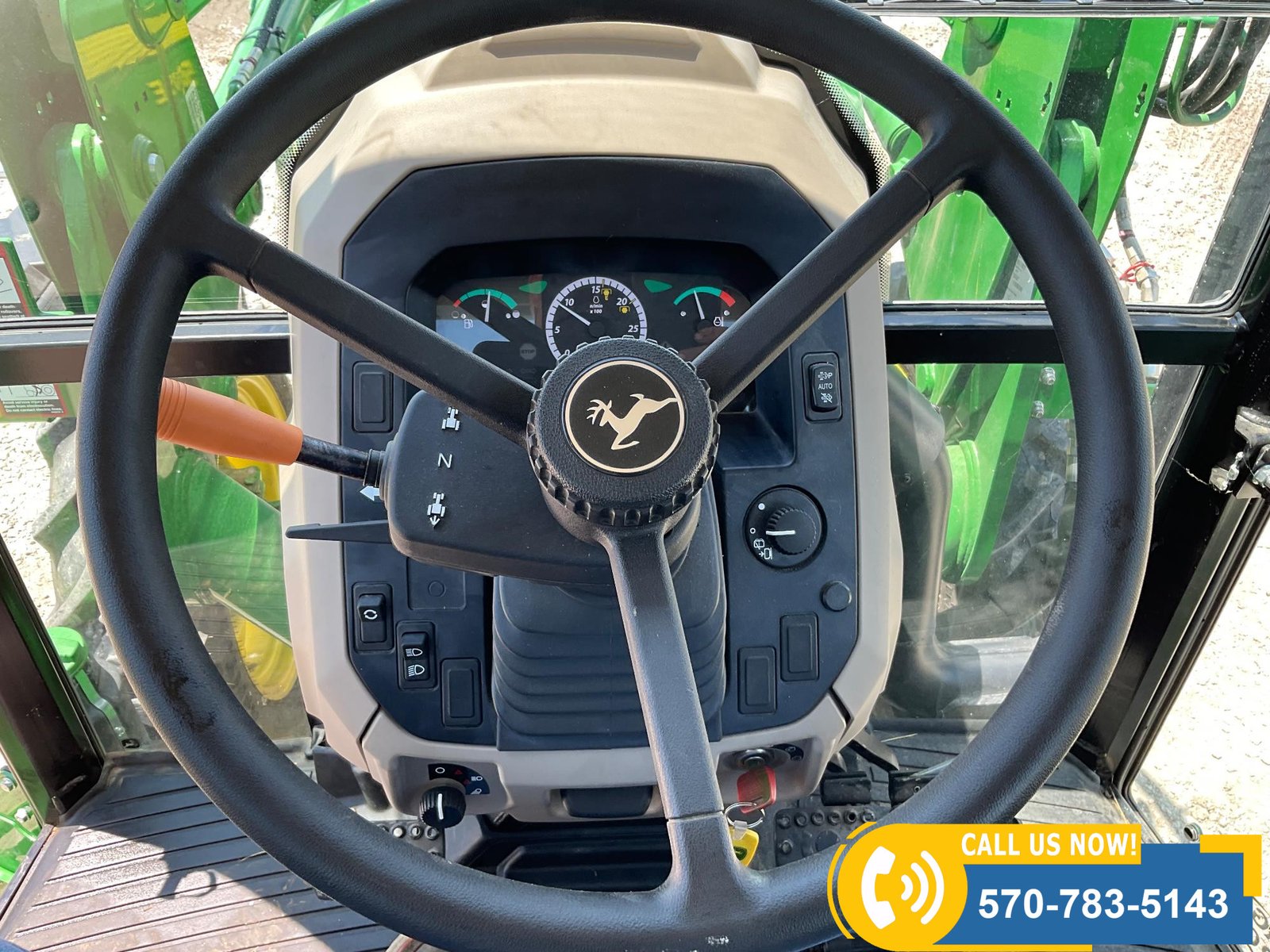 2018 John Deere 5075E MFWD Tractor w/ Loader – Only 52 hours showing, 64 PTO HP PowerTech 2.9L engine, 12F/12R transmission with LH reverser. Equipped with 540 PTO, rear PTO, 1 hydraulic outlet, and 3-point hitch. Rides on 9.5-24 front and 16.9-28 rear tires. Features John Deere 520M front loader with 72″ quick attach bucket, single-point hydraulic hook-up, and standard cloth seat.