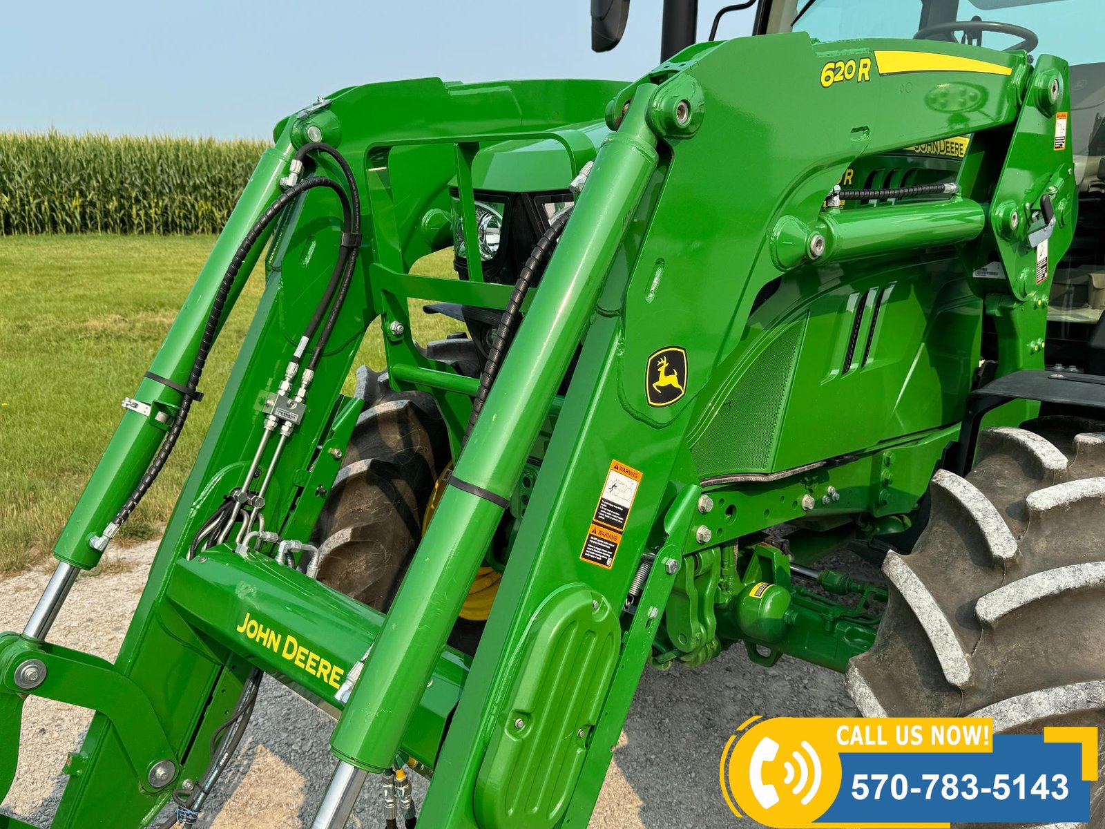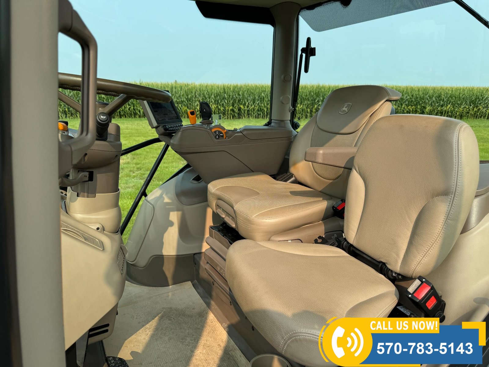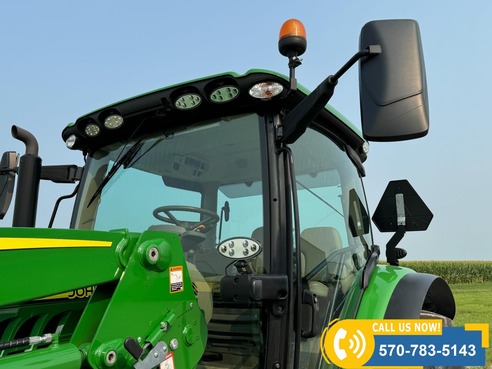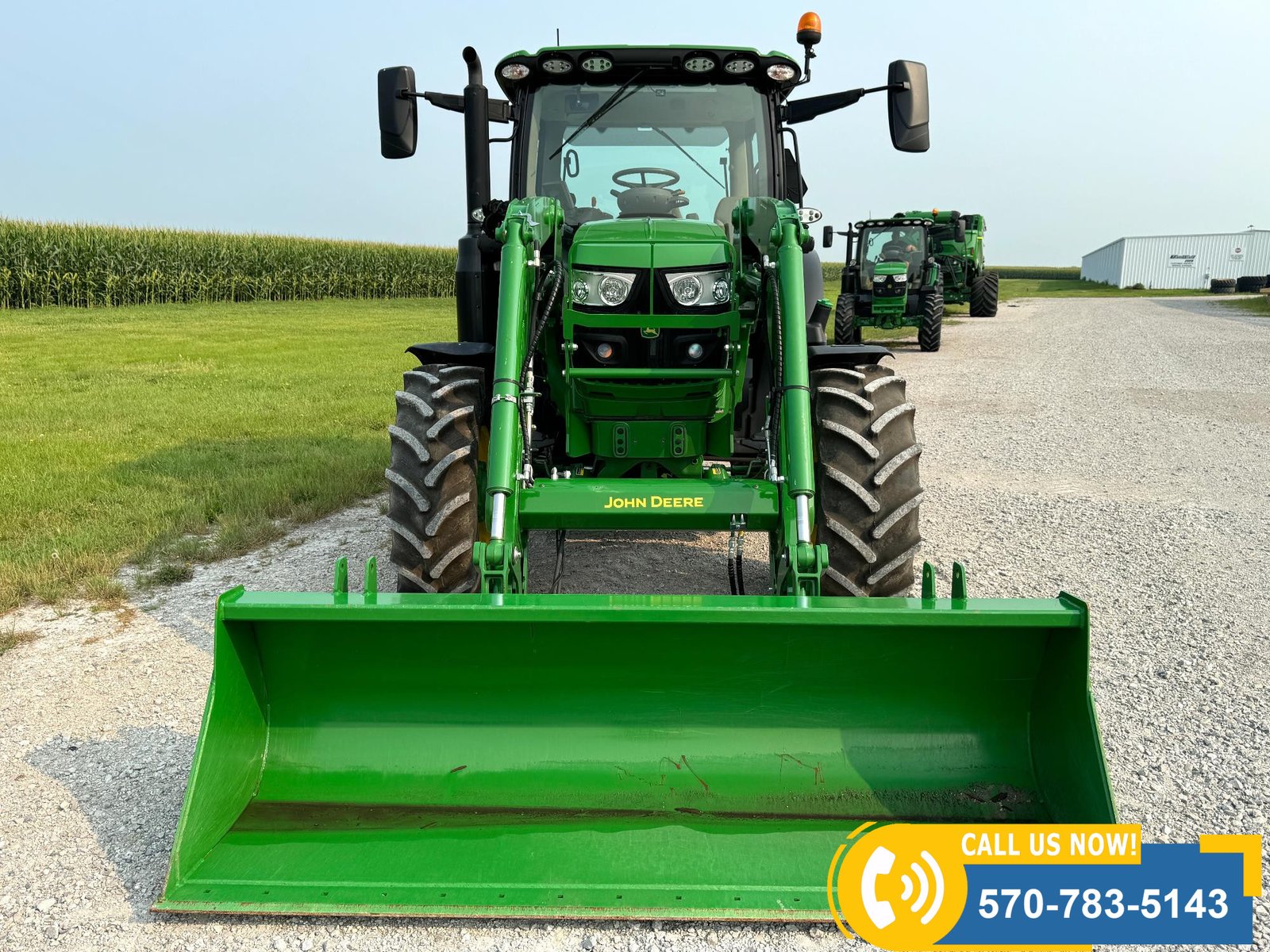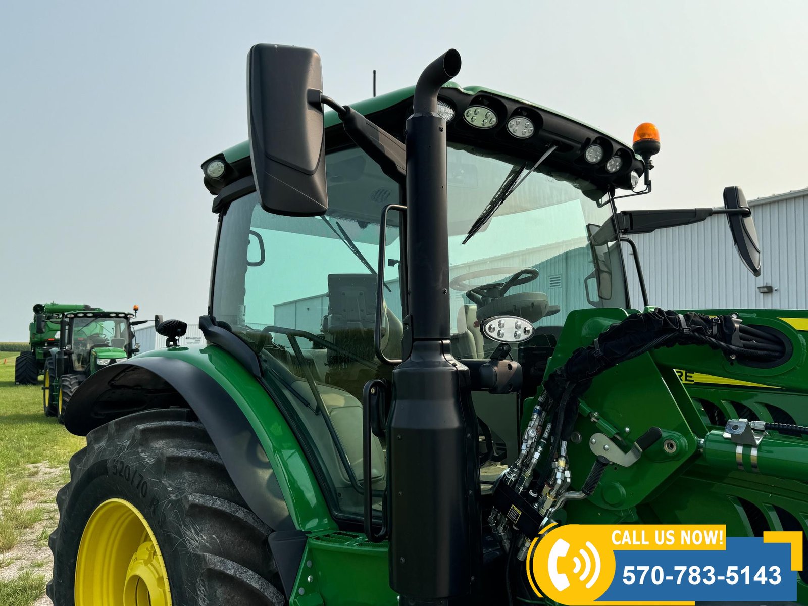 2022 John Deere 6130R MFWD Tractor w/ Loader – 407 hours showing, equipped with IVT transmission, TLS front suspension, and premium cab with leather ultimate seat. Features 3 hydraulic outlets, 540/1000 PTO, John Deere 620R loader with material bucket, global hookup, 3rd function hydraulics, and electronic joystick. Includes CommandCenter 4600 display, premium light package, front fenders, rear weights, and rides on 420/70R24 front and 520/70R34 rear tires.