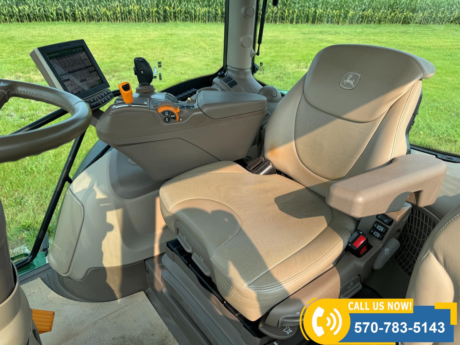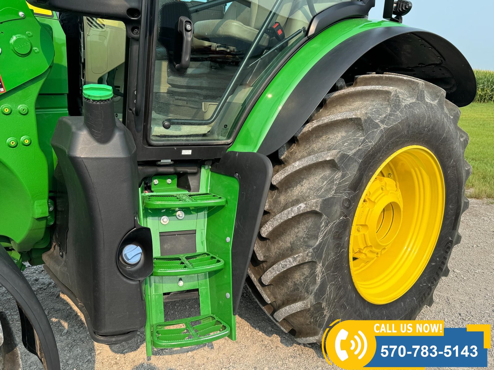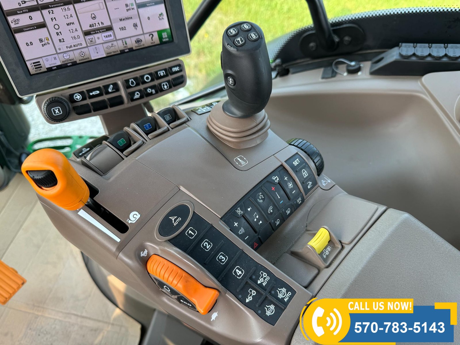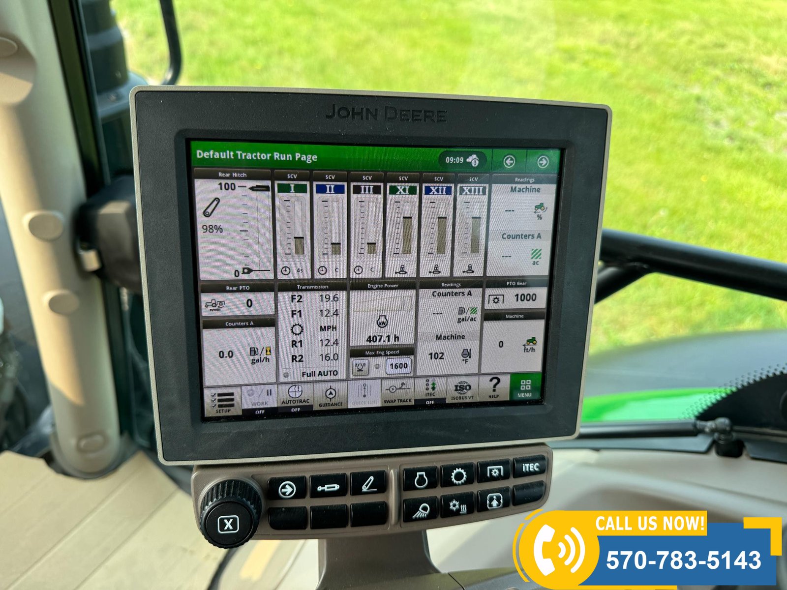 2022 John Deere 6130R MFWD Tractor w/ Loader – 407 hours showing, equipped with IVT transmission, TLS front suspension, and premium cab with leather ultimate seat. Features 3 hydraulic outlets, 540/1000 PTO, John Deere 620R loader with material bucket, global hookup, 3rd function hydraulics, and electronic joystick. Includes CommandCenter 4600 display, premium light package, front fenders, rear weights, and rides on 420/70R24 front and 520/70R34 rear tires.